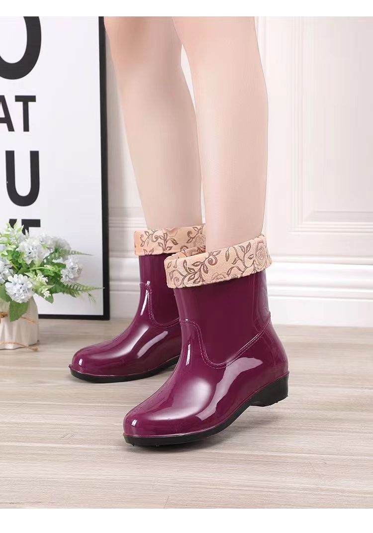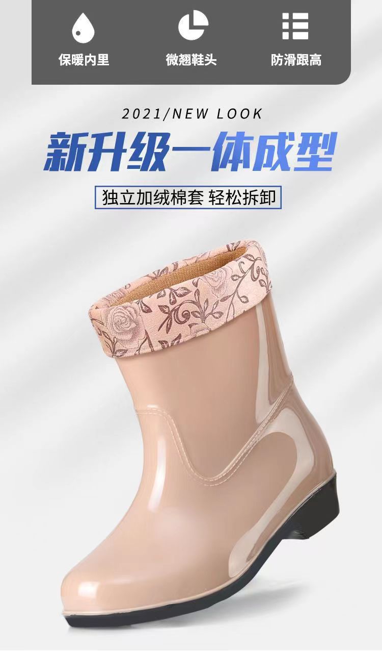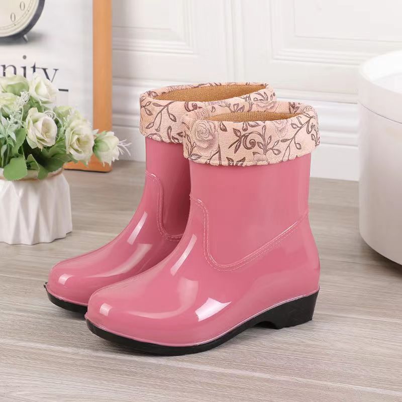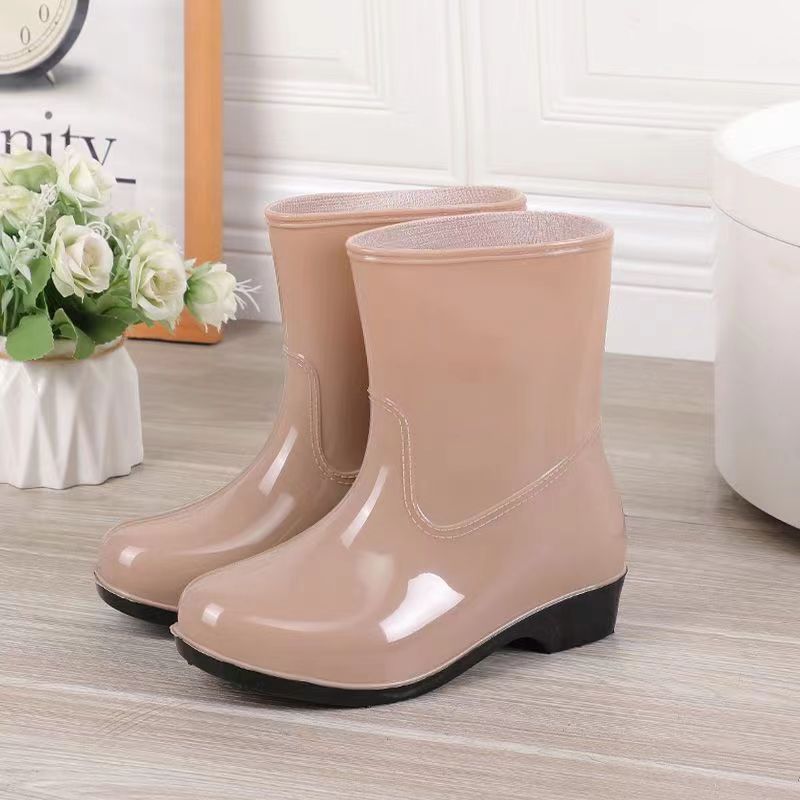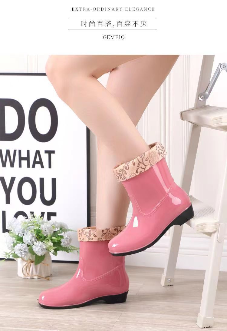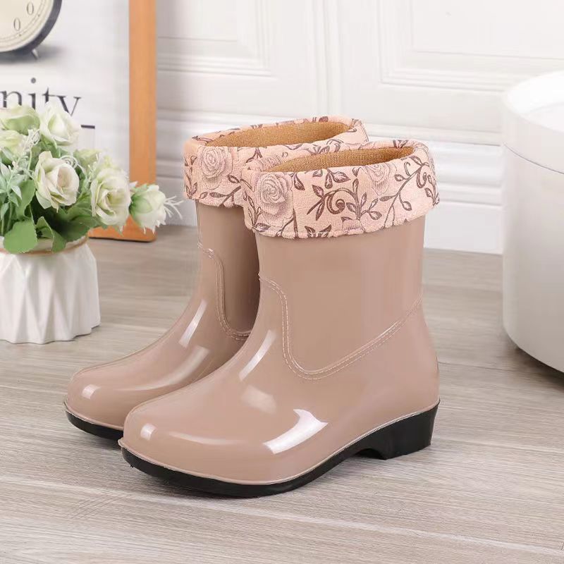 워터 슈즈 여성용 플랫 로우 성인 미드 배럴 레인 슈즈 여성용 면 짧은 배럴 패션 여름 워터 부츠 방수 신발 미끄럼 방지 장화 고무 신발