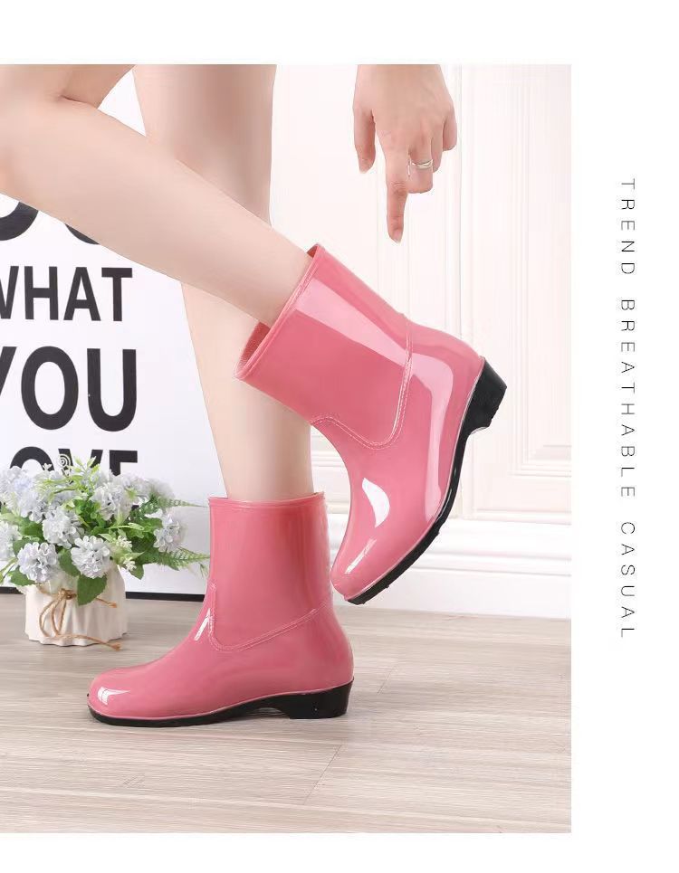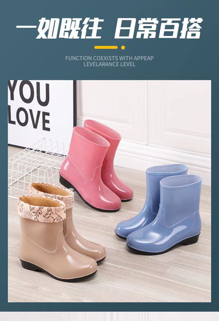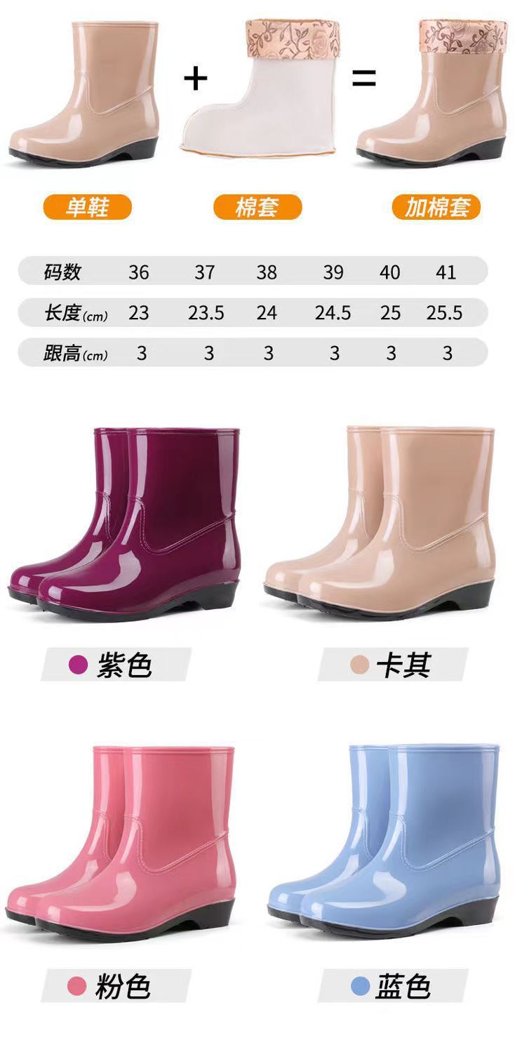 워터 슈즈 여성용 플랫 로우 성인 미드 배럴 레인 슈즈 여성용 면 짧은 배럴 패션 여름 워터 부츠 방수 신발 미끄럼 방지 장화 고무 신발스토어 가기