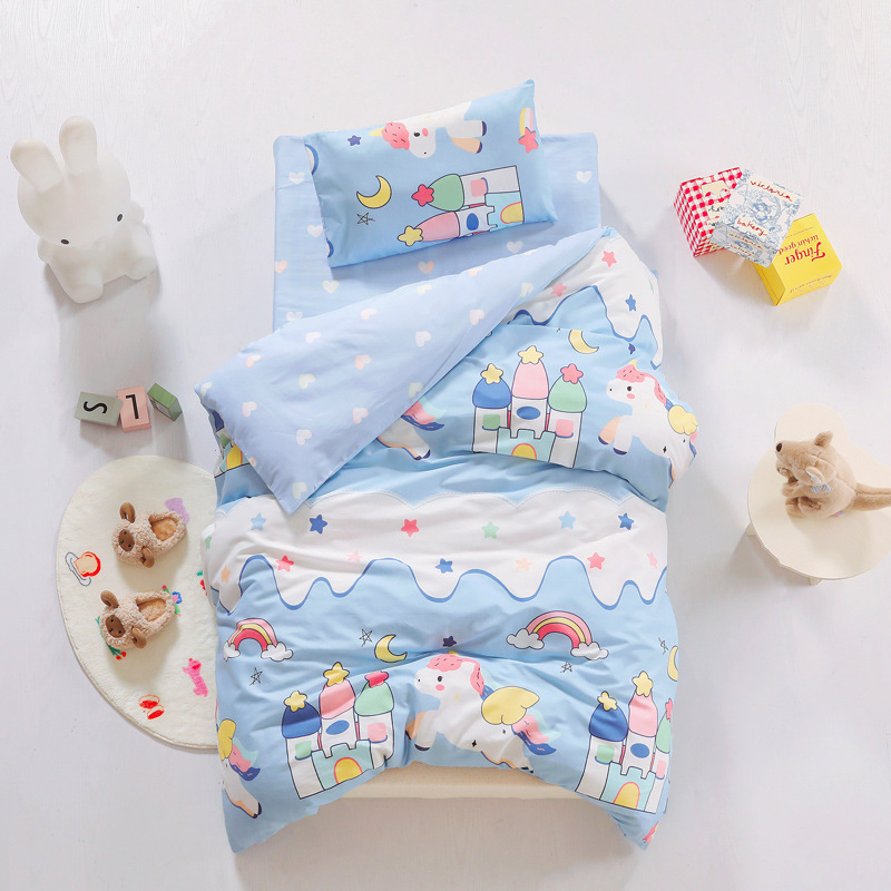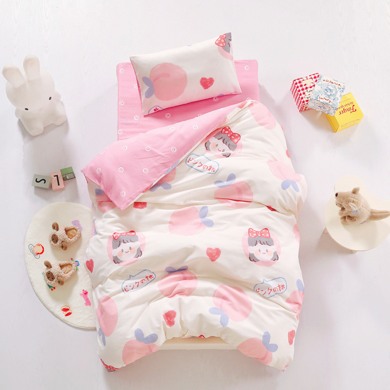 면 유치원 이불 쓰리피스 세트 어린이 낮잠 면 침구 아기 공원 6 종 세트 (코어포함) 배달 핸드백