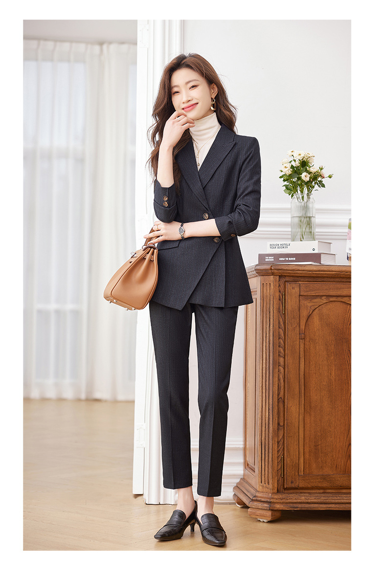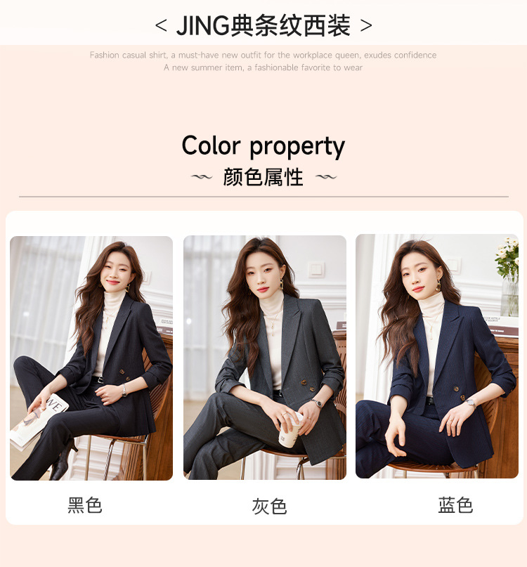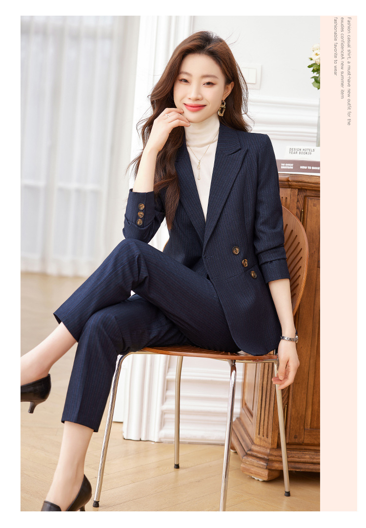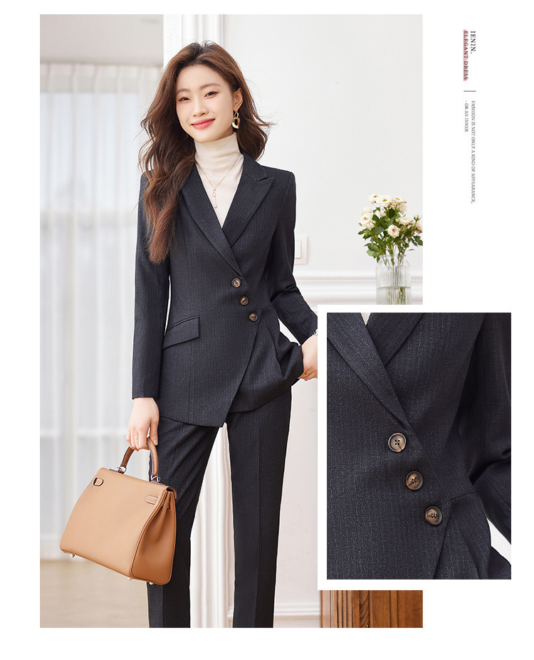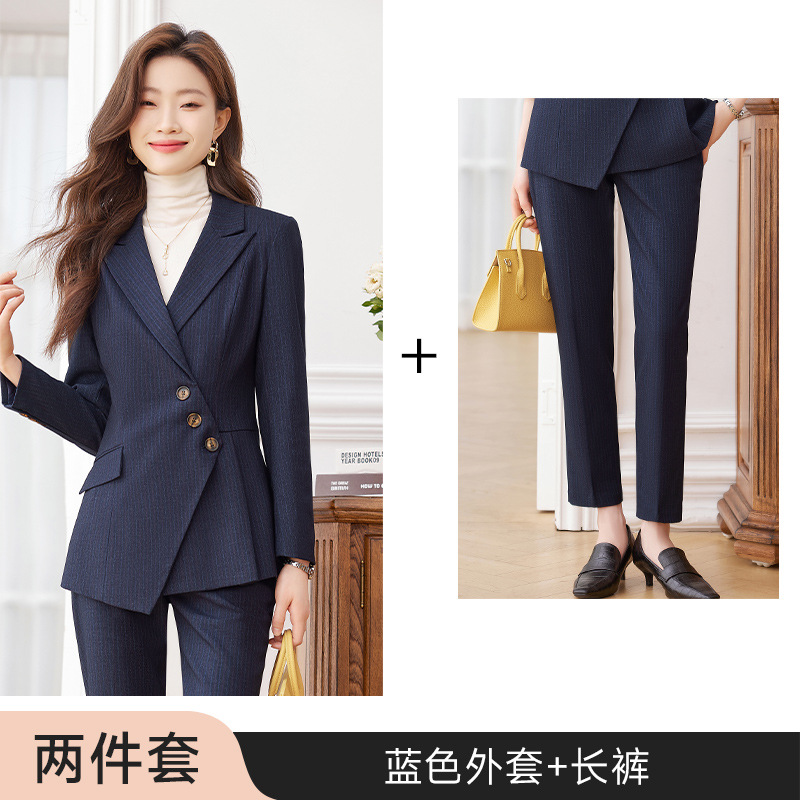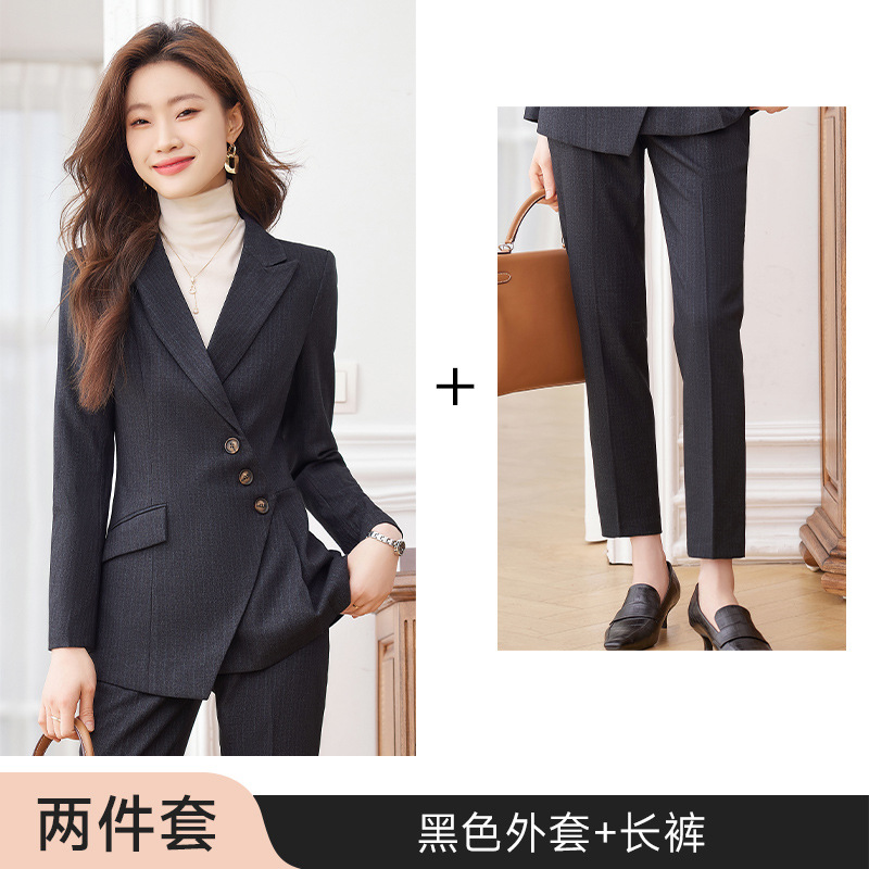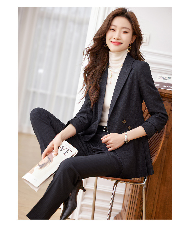 고급 스트라이프 정장 세트 여성용 긴팔 작업복 가을 겨울 2025 신상 정장 블랙 수트스토어 가기