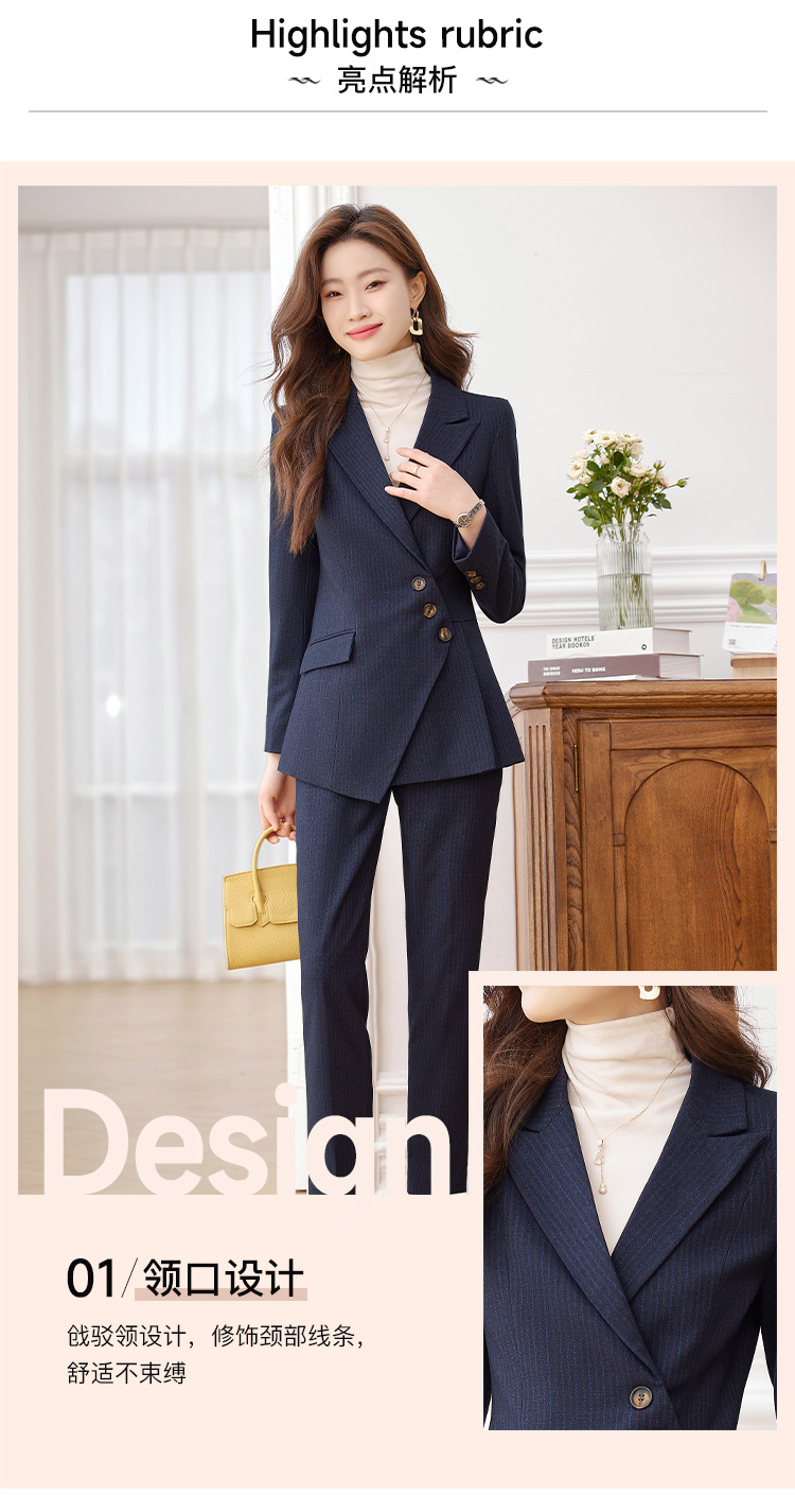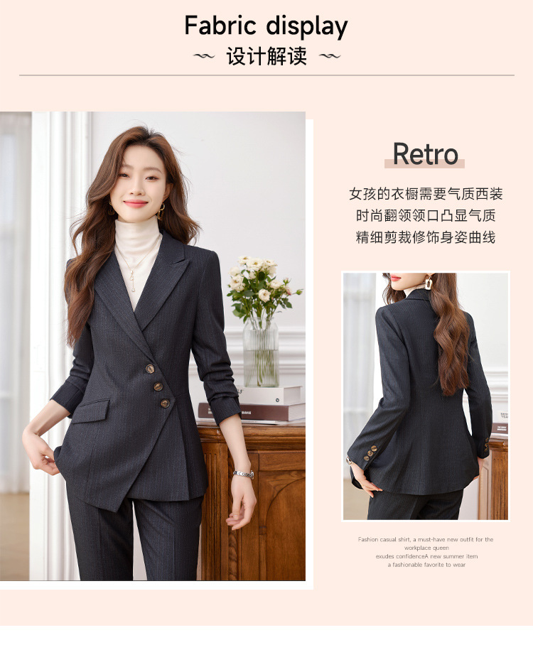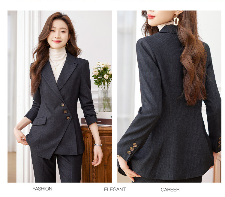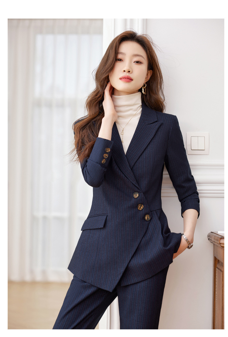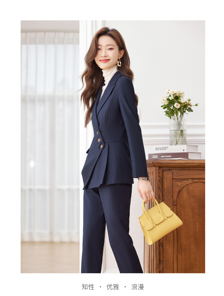 고급 스트라이프 정장 세트 여성용 긴팔 작업복 가을 겨울 2025 신상 정장 블랙 수트스토어 가기