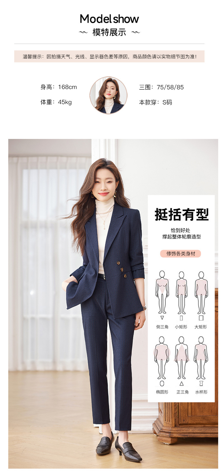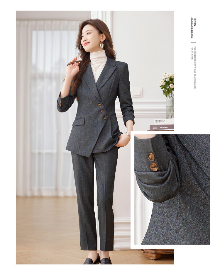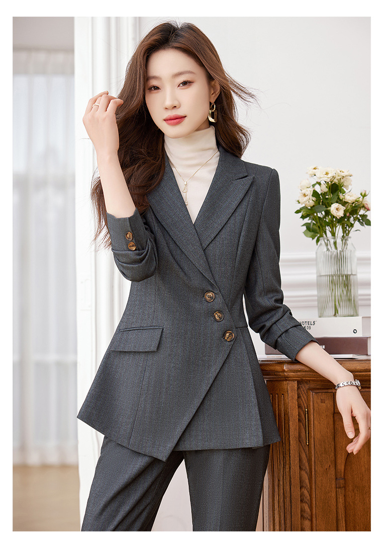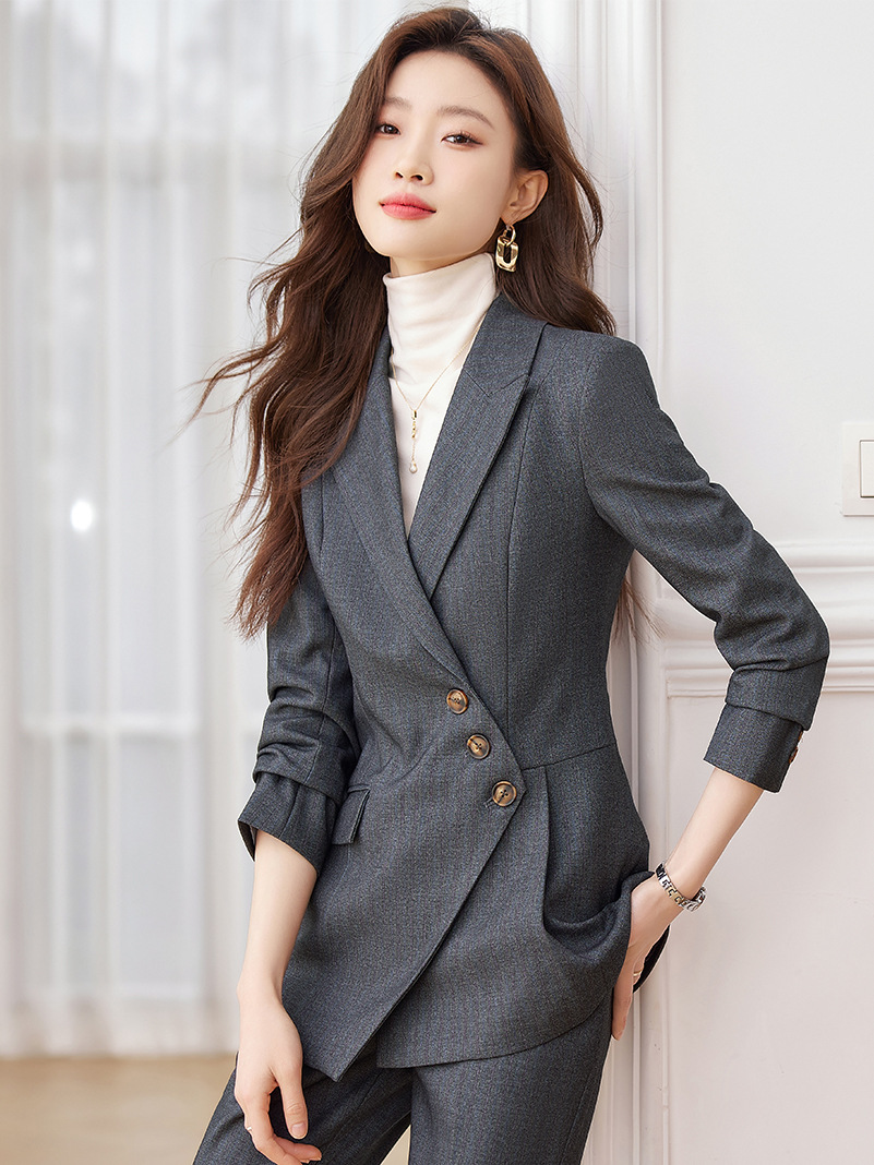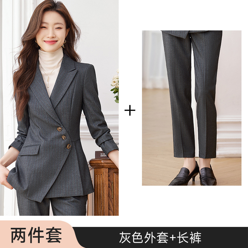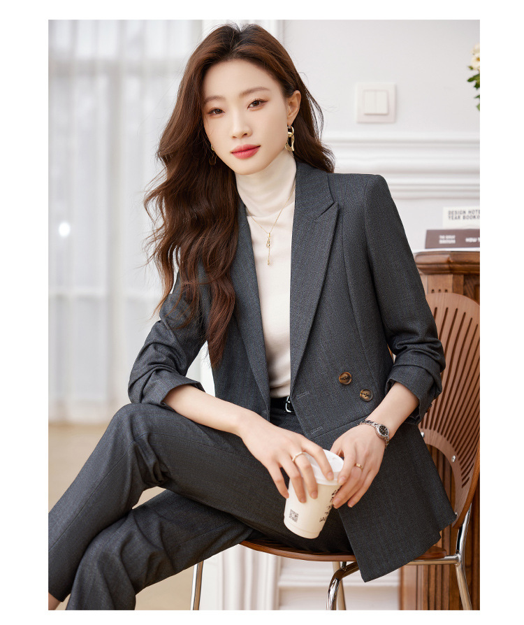 고급 스트라이프 정장 세트 여성용 긴팔 작업복 가을 겨울 2025 신상 정장 블랙 수트스토어 가기