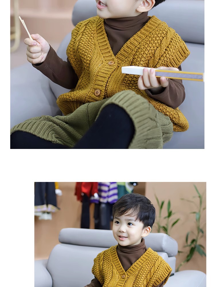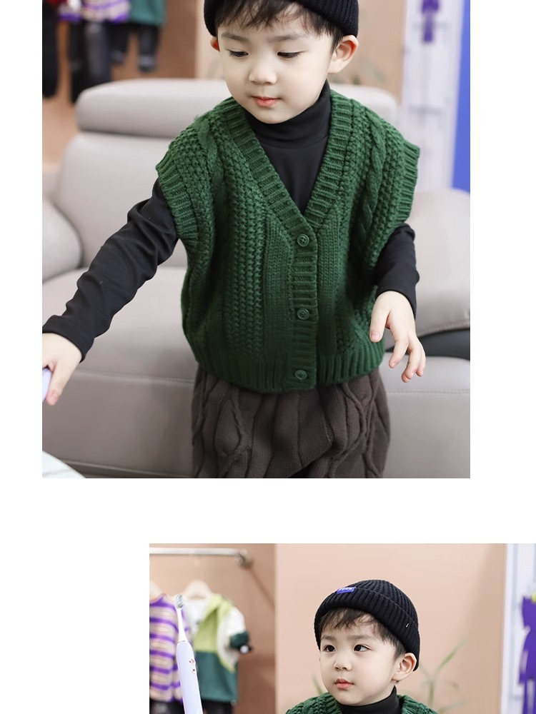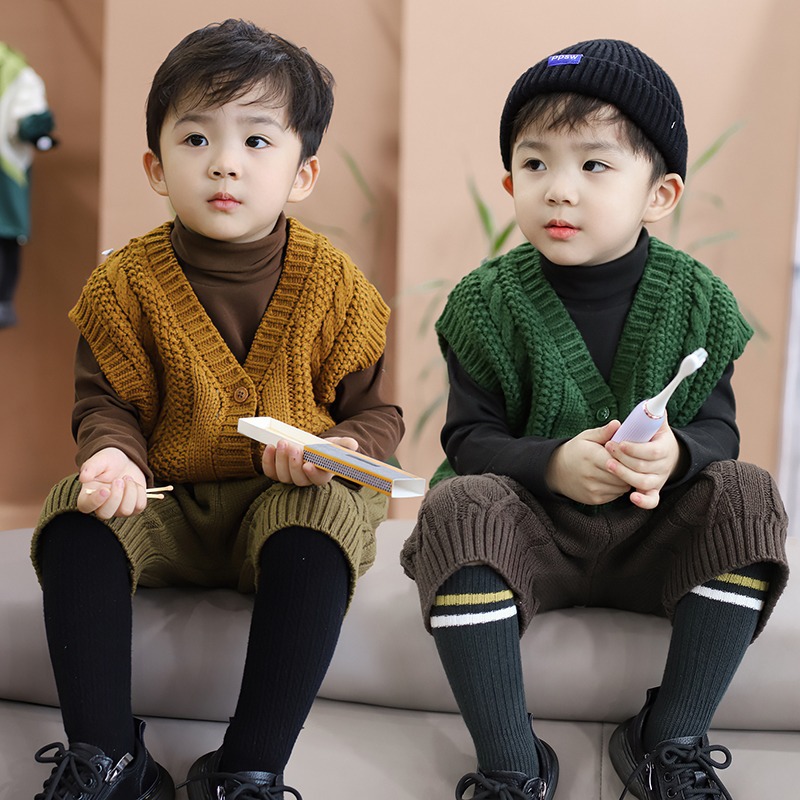2023 봄과 가을 세트 남아 니트 카디건 조끼 바지 새로운 한국 어린이 아기 조끼스토어 가기