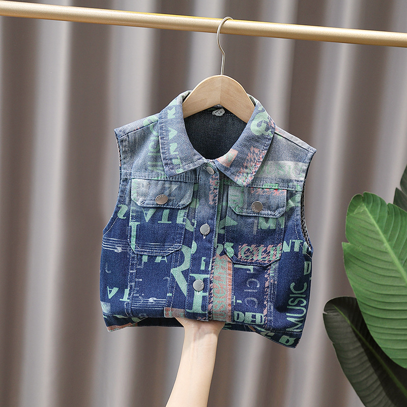 아동용 데님 조끼 봄, 가을 2025 새로운 베이비 다용도 얇은 조끼 소년의 세련된 겉옷 양복 조끼스토어 가기
