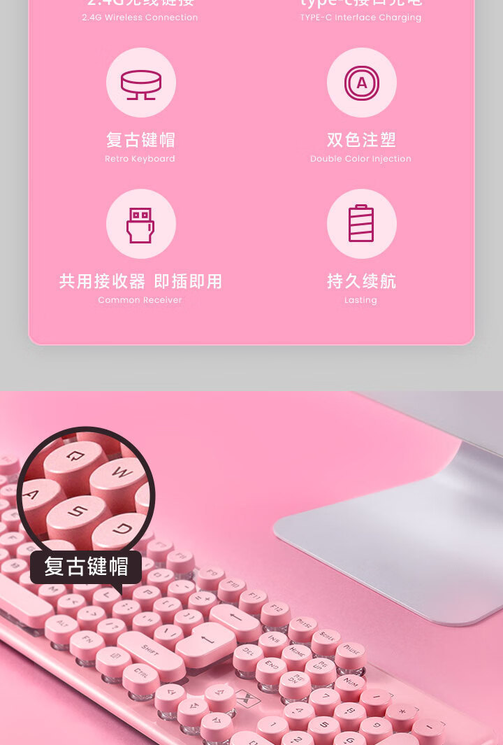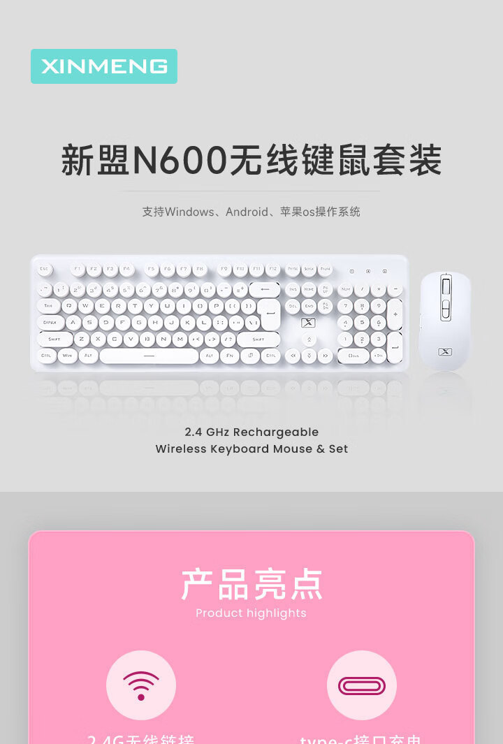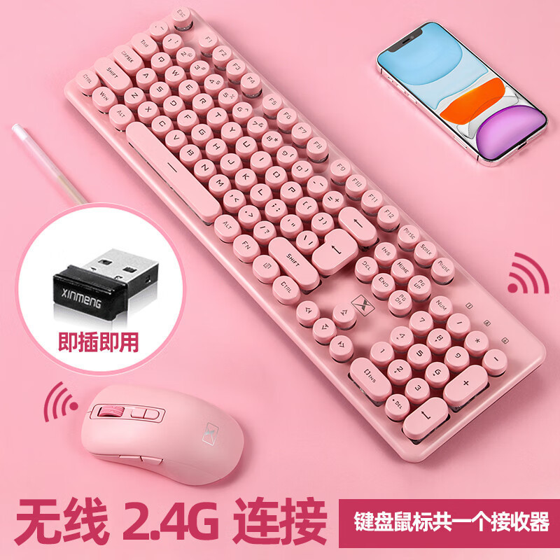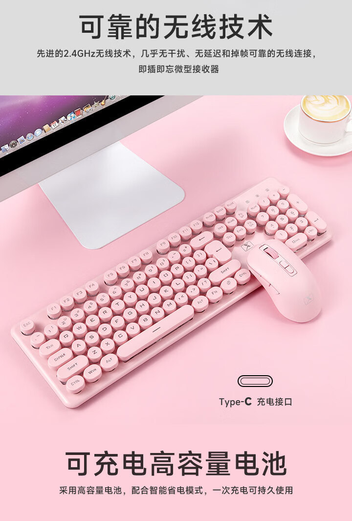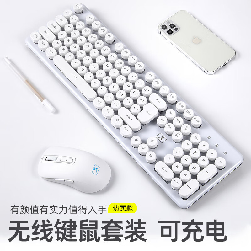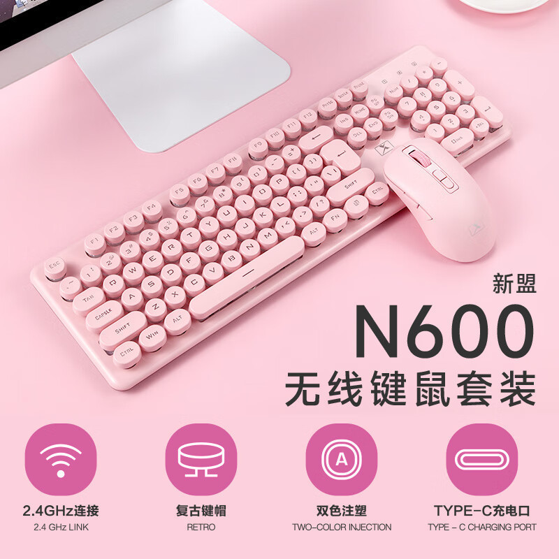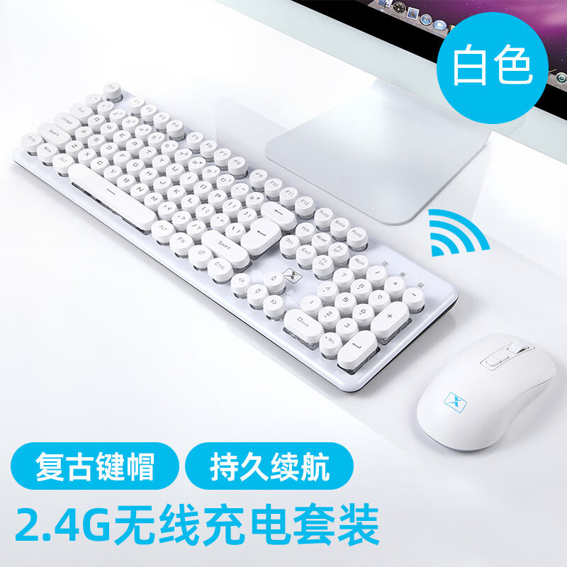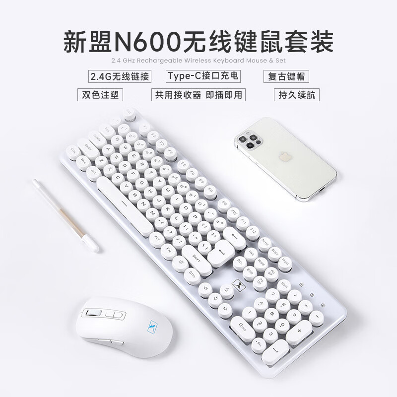 新盟无线键盘鼠标套装充电笔记本平板电脑办公复古圆键键鼠
