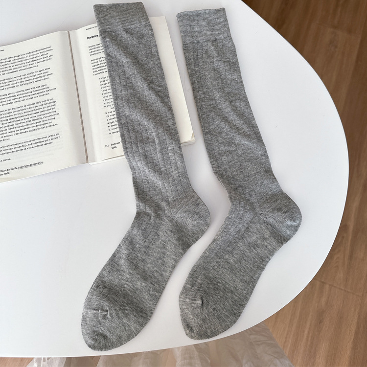 여성용 양말 가을, 봄 신상품 흑백 회색 양말 여성용 양말 스타킹 종아리 양말 종아리 양말 무릎 양말 인 트렌디 양말스토어 가기