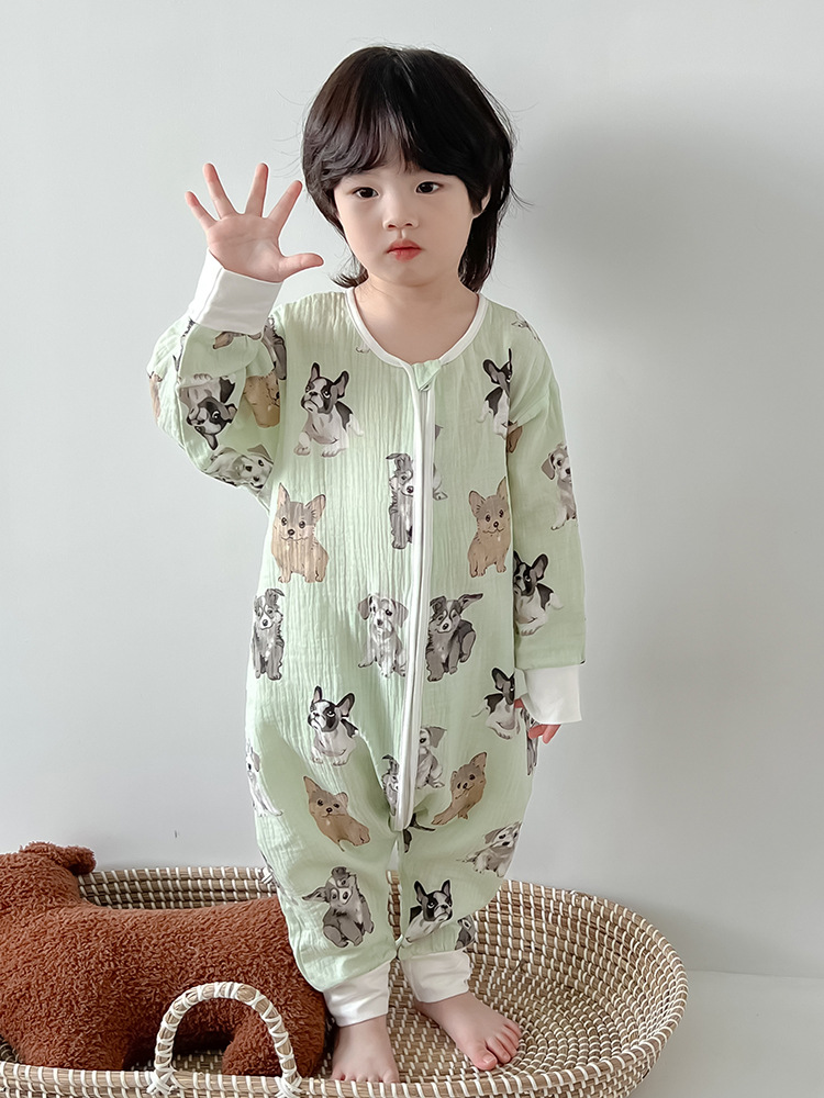 가을 아기 슬리핑 백 긴팔 더블 레이어 코튼 거즈 슬리핑 백 아기 잠옷 어린이 다리 킥오프 퀼트