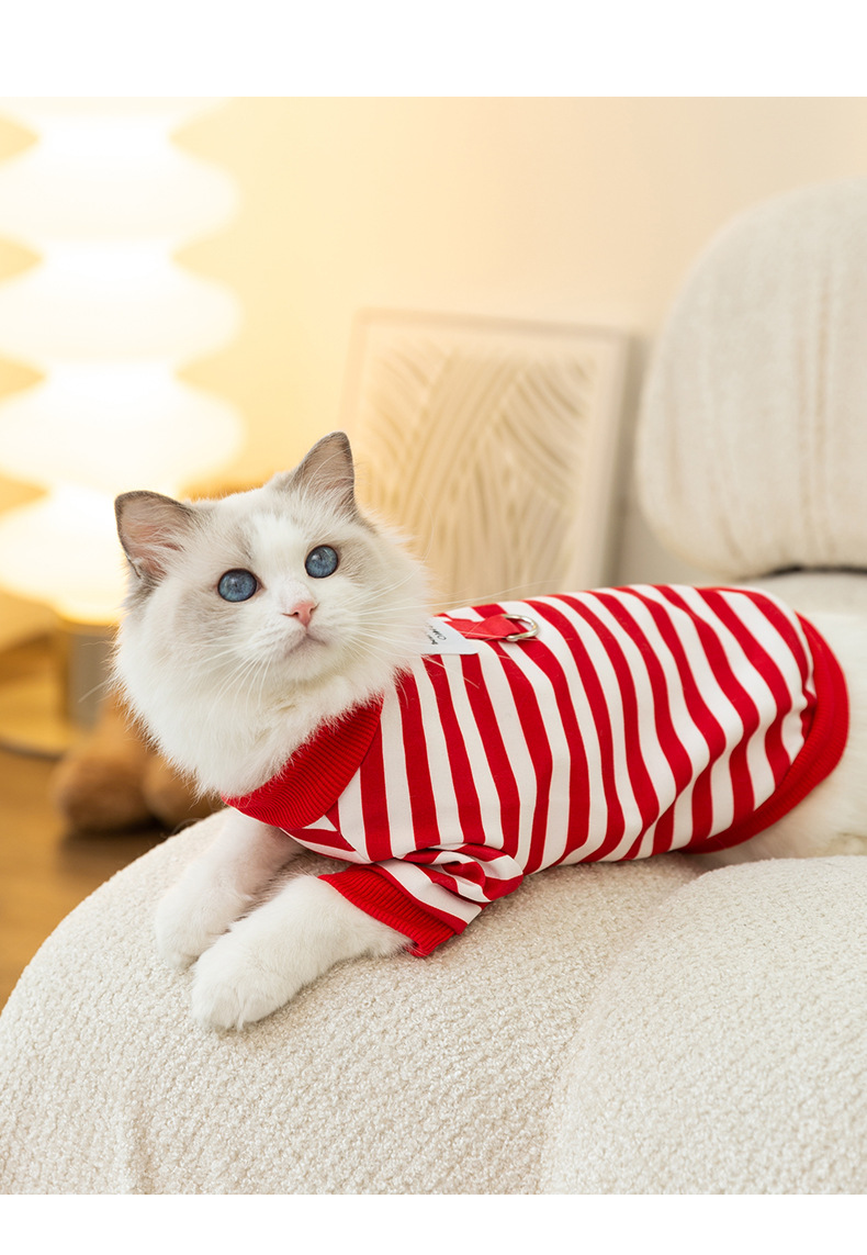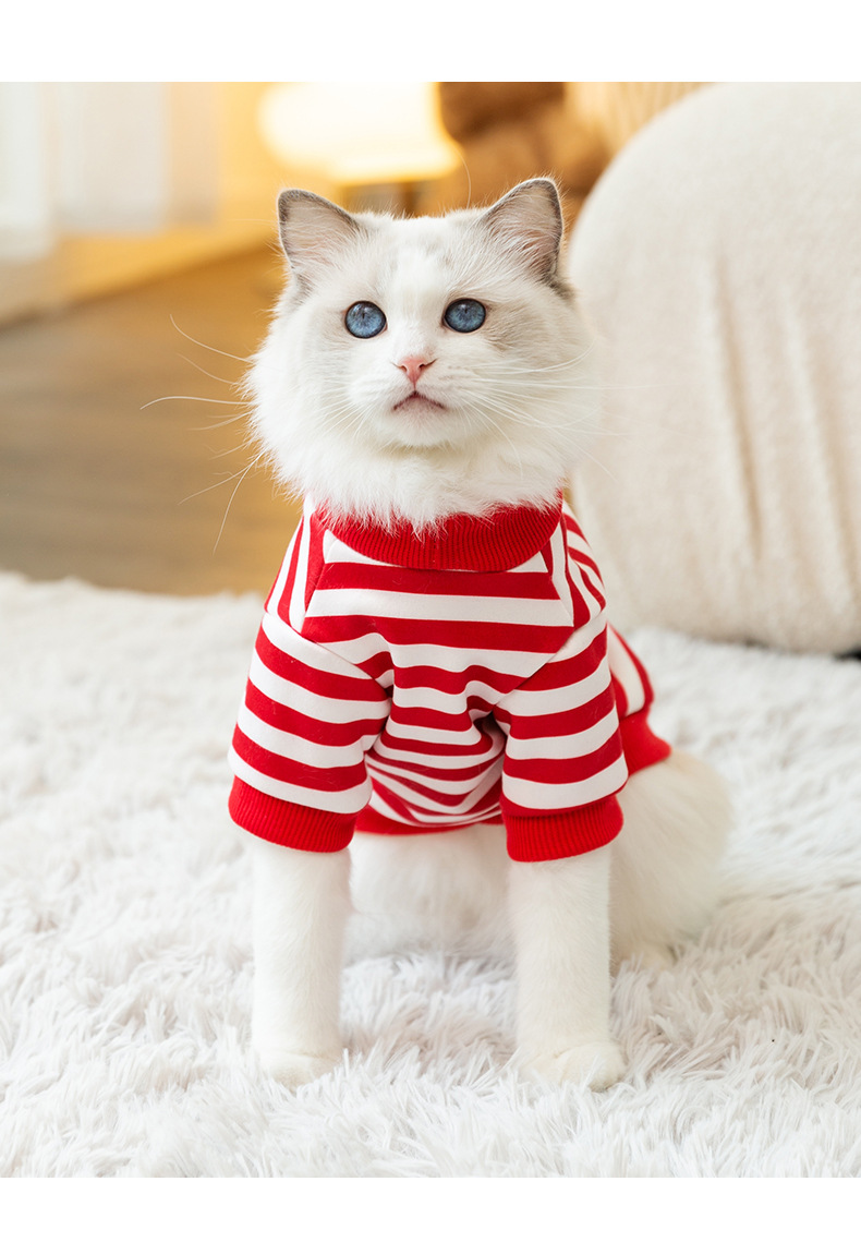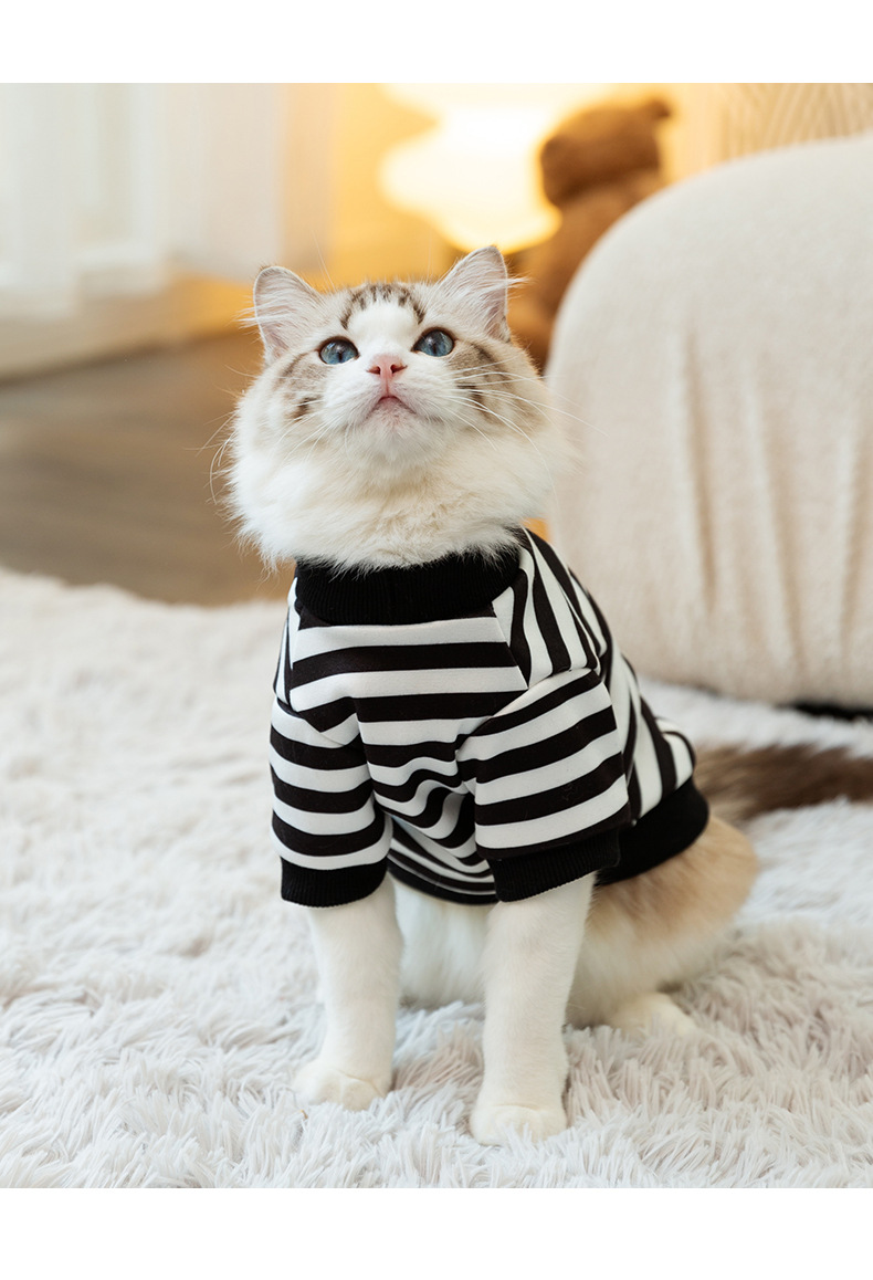 봄과 가을 간단한 줄무늬 고양이 두 다리 견인 운동복 개 캐주얼 중형 및 소형 개 애완 동물 테디 옷