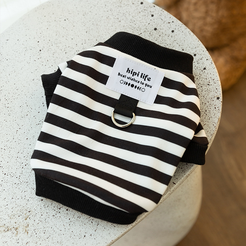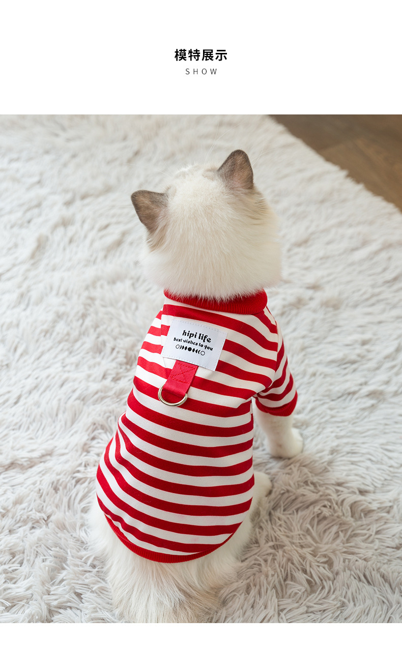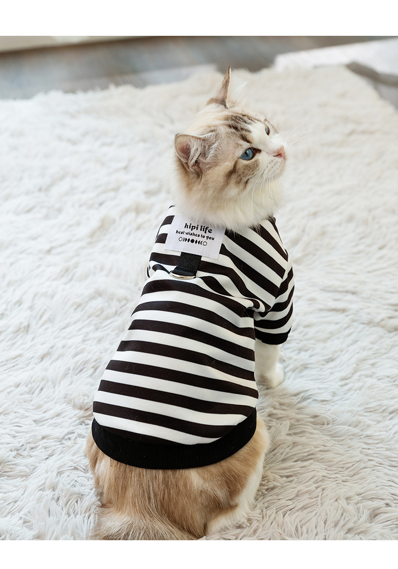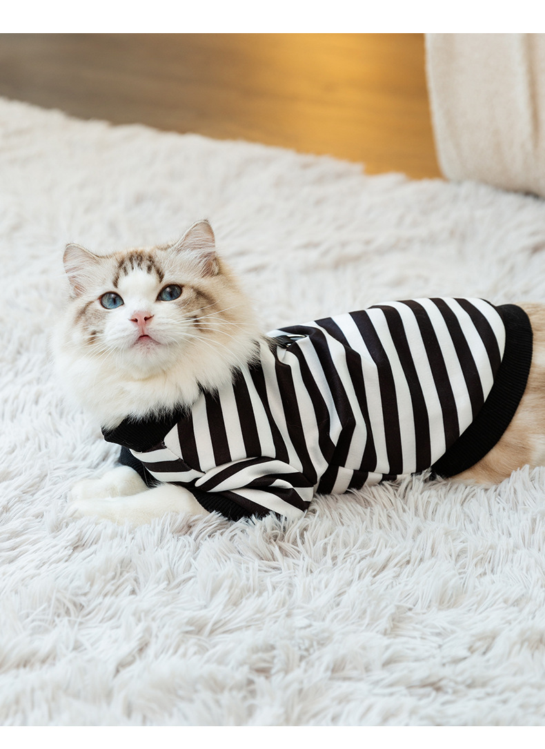 봄과 가을 간단한 줄무늬 고양이 두 다리 견인 운동복 개 캐주얼 중형 및 소형 개 애완 동물 테디 옷스토어 가기