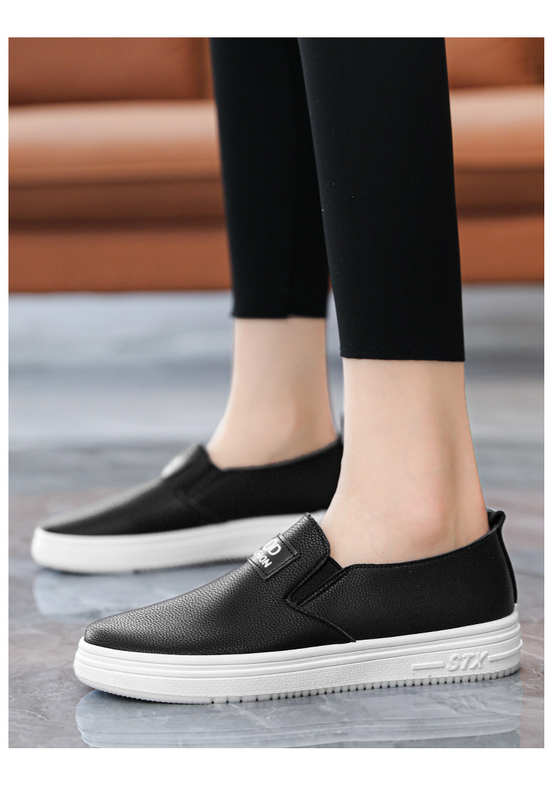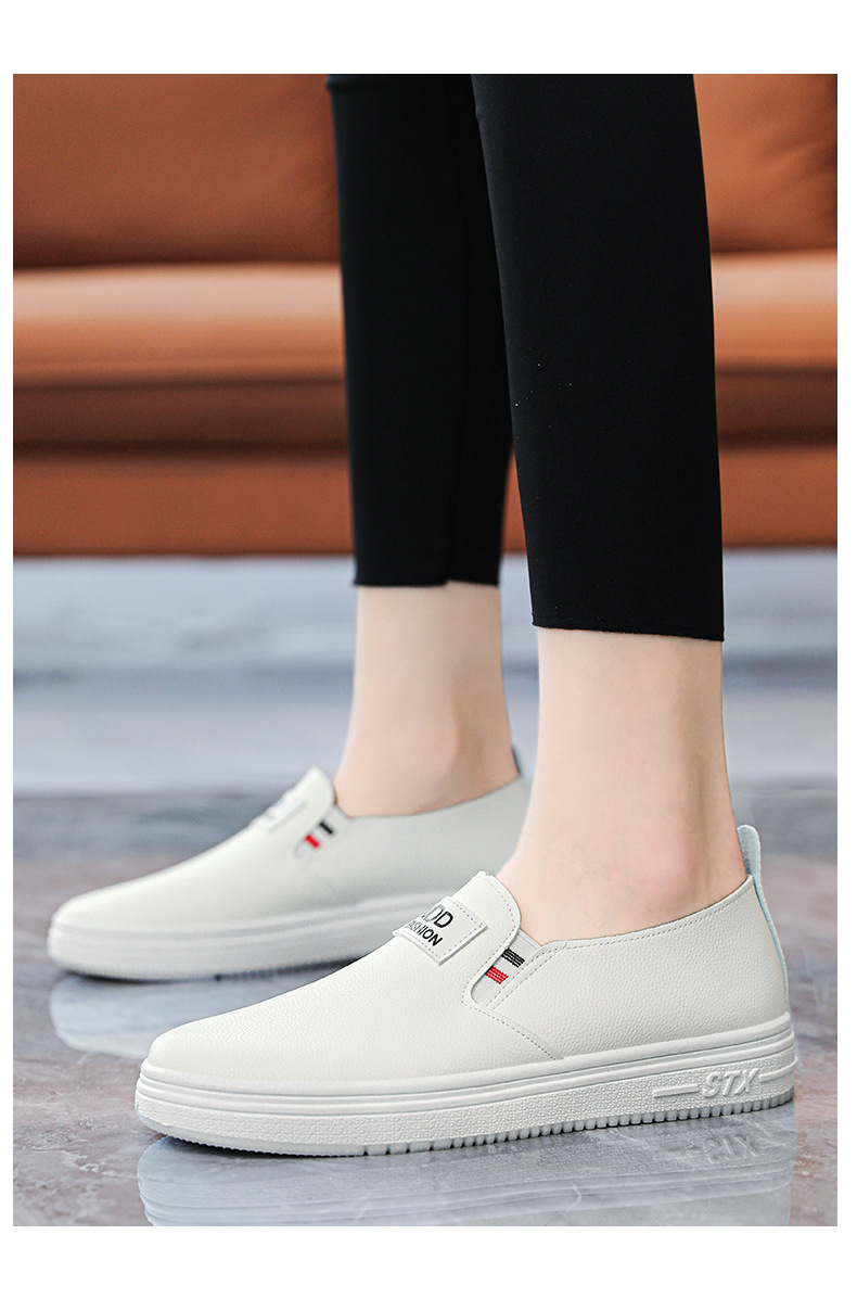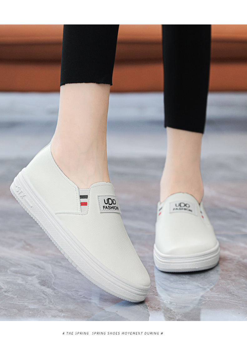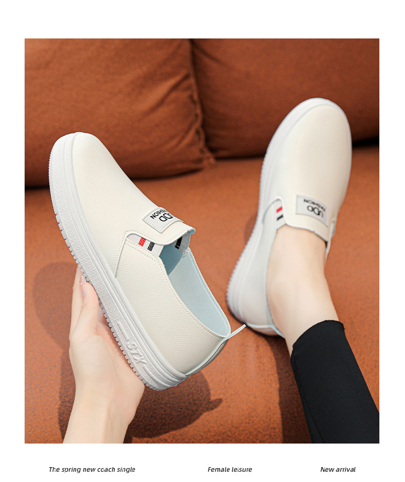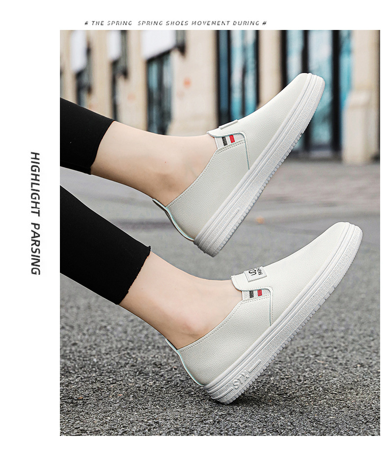 흰색 신발 여성용 봄과 가을 새 여성 신발 스케이트 신발 캐주얼 모든 매치 부드러운 바닥 미끄럼 방지 신발 여성용 가죽 테이프