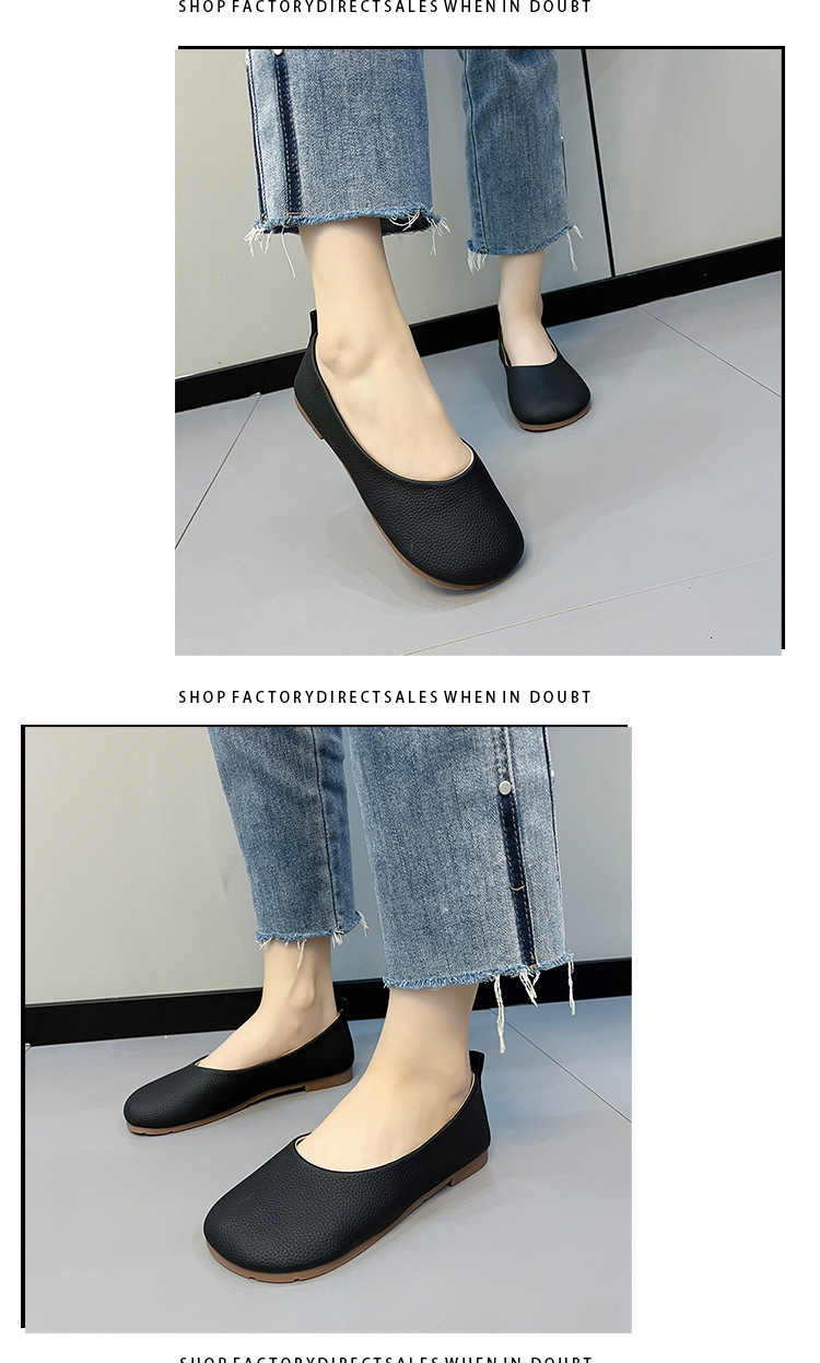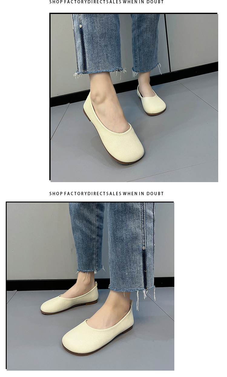 플랫 라운드 토 콩 신발 여성용 2023 새로운 스타일 슬립온 편안한 부드러운 밑창 우유 신발 얕은 입 캐주얼 신발스토어 가기