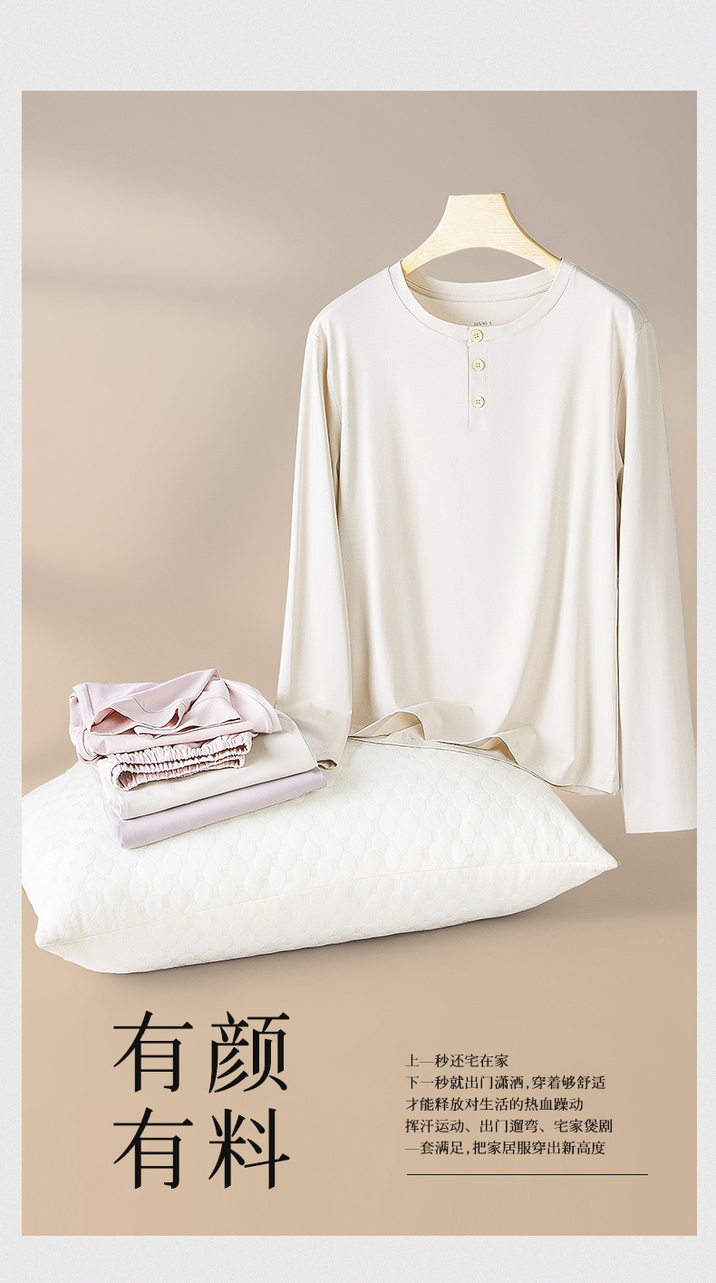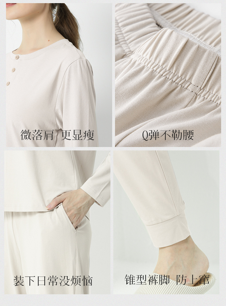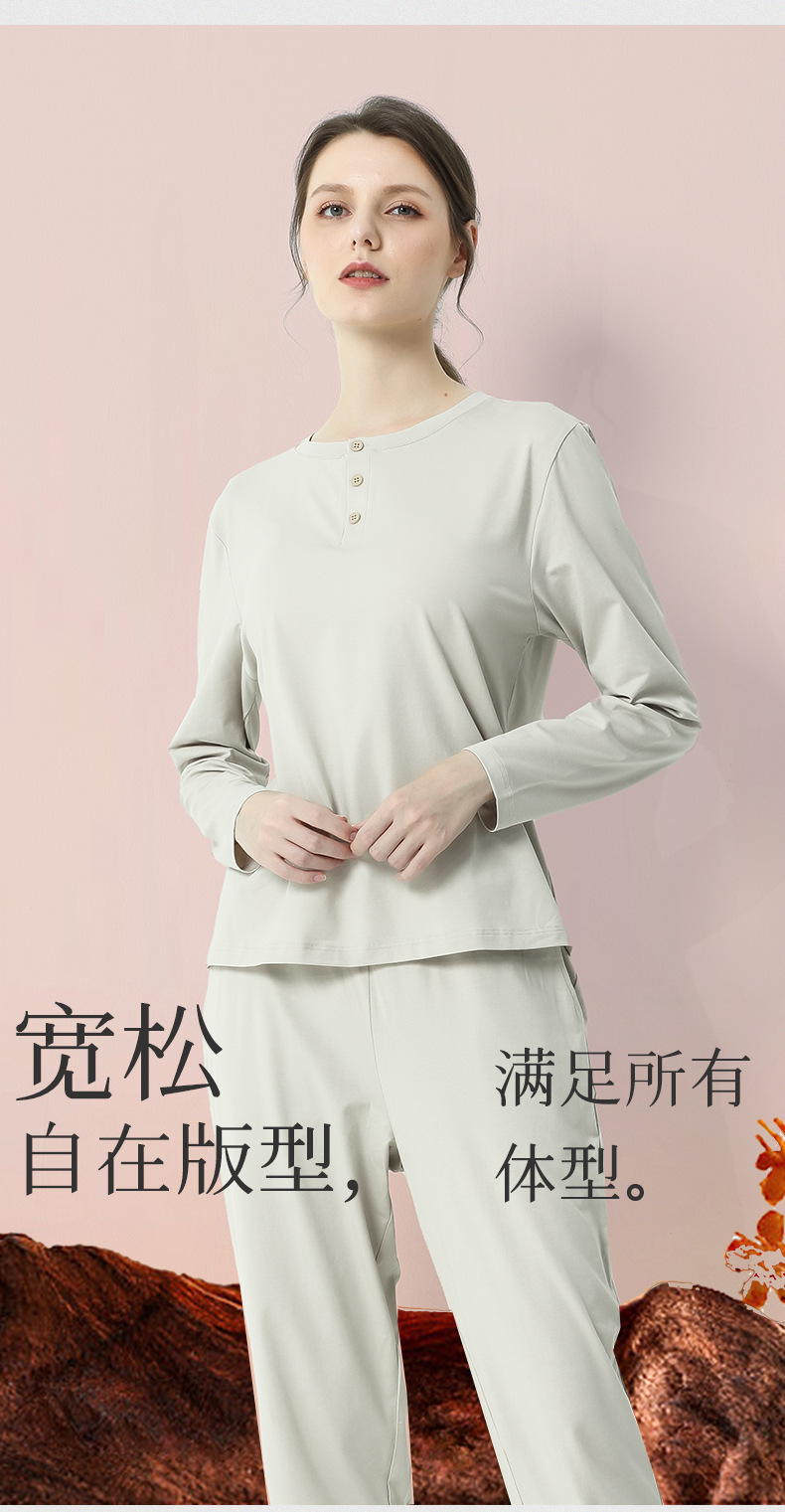 모달면 여름 가을과 겨울 여성 잠옷 긴 소매 얇은 캐주얼 단색 얇은 외출 홈 의류 세트스토어 가기