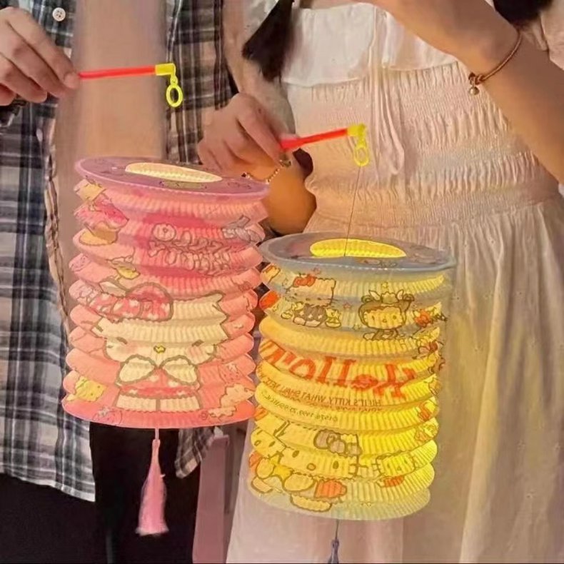 새해 봄 축제 랜턴 헬로 키티 휴대용 만화 귀여운 아기 휴대용 접이식 오르간 라이트 환영스토어 가기