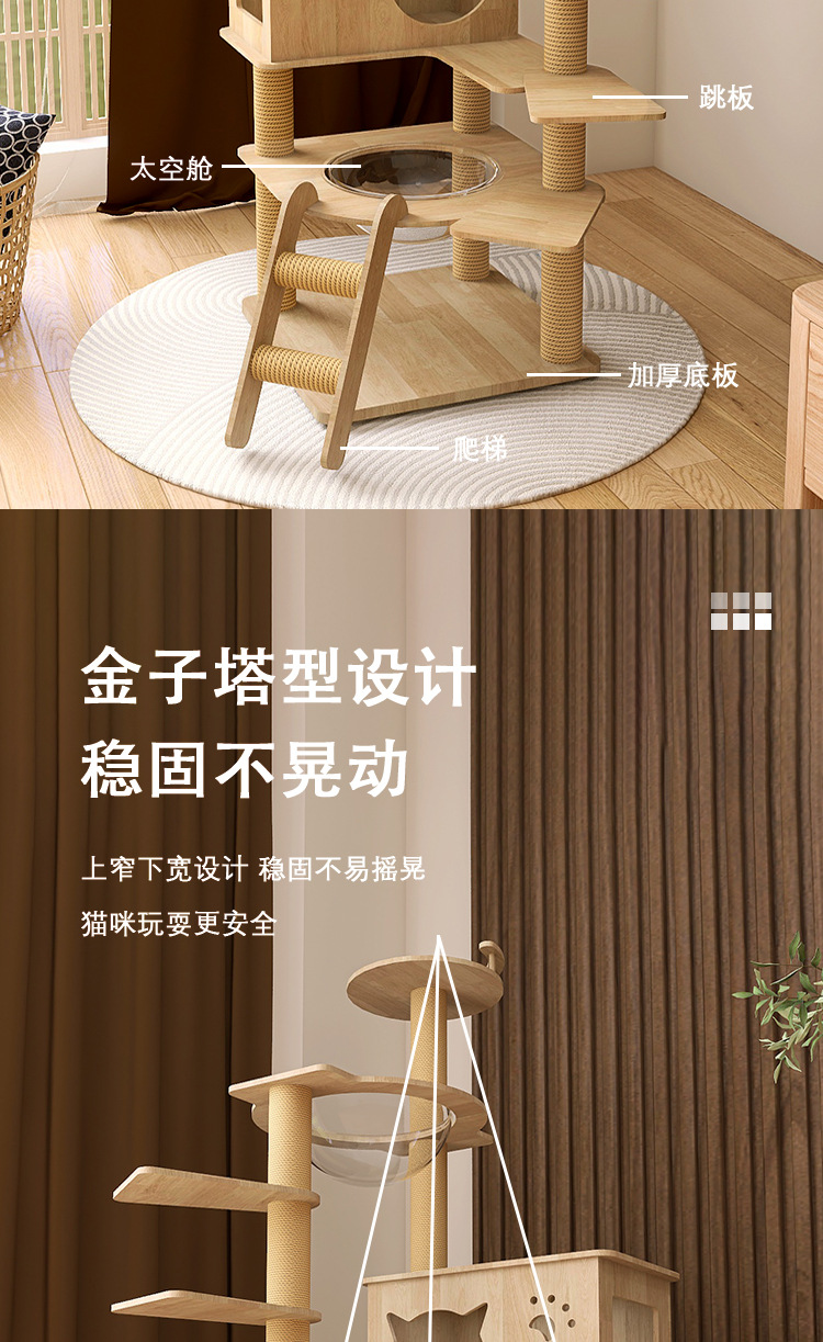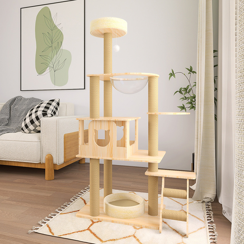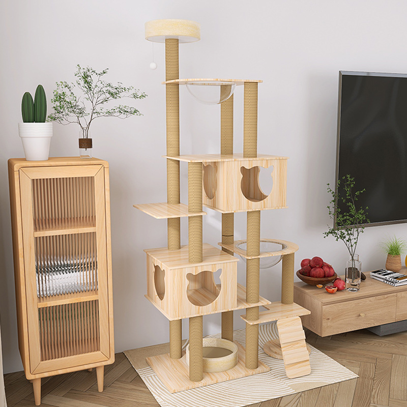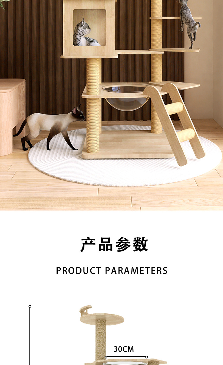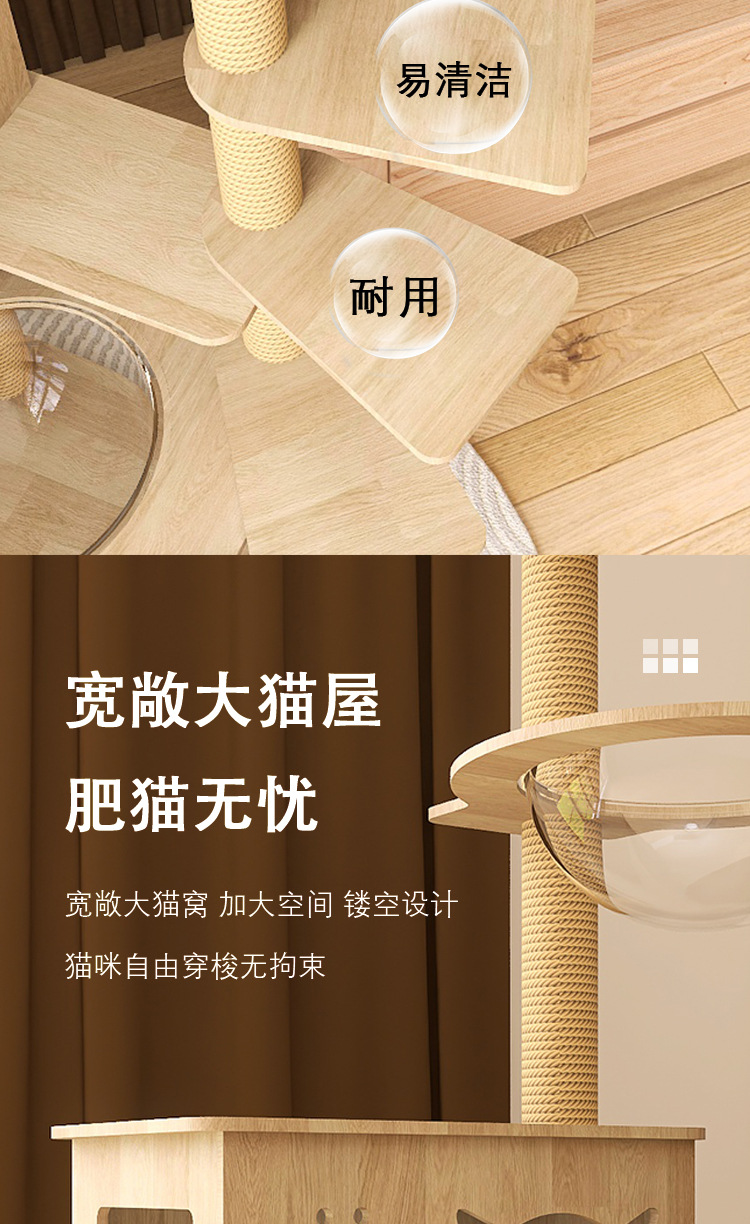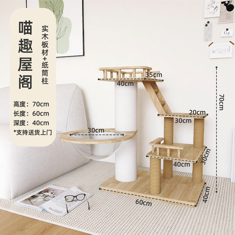 단단한 나무 대형 다기능 고양이 등반 랙 다층 통합 폐쇄 고양이 둥지 높은 점프 플랫폼 내마모성 사이 잘 이동식