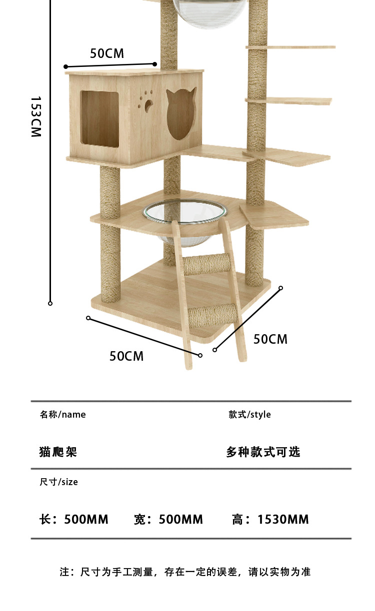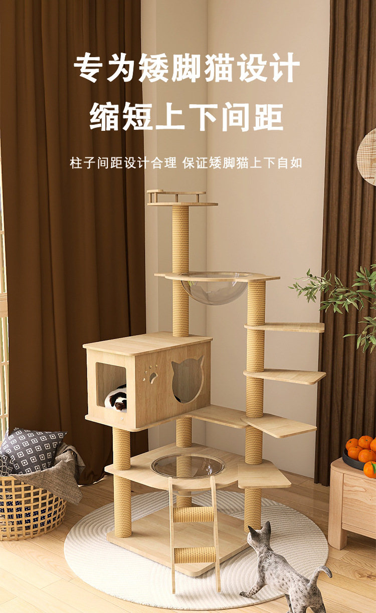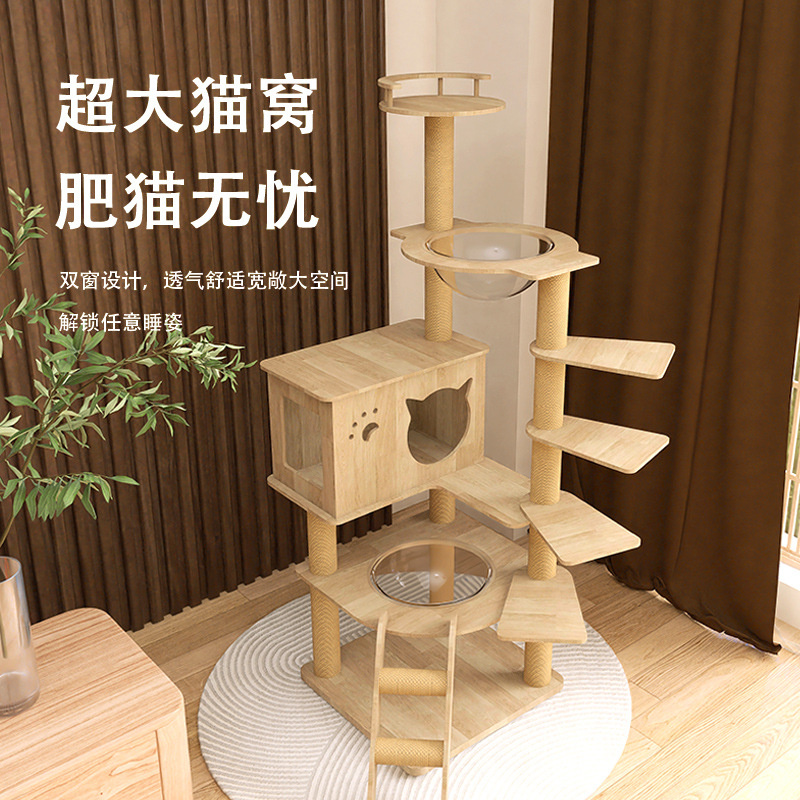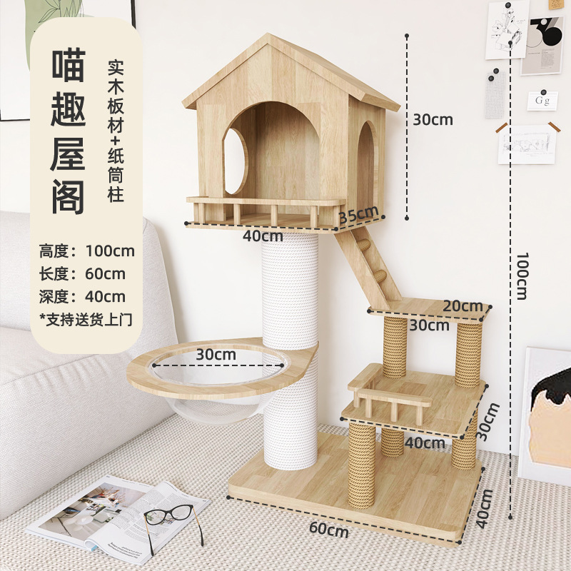 단단한 나무 대형 다기능 고양이 등반 랙 다층 통합 폐쇄 고양이 둥지 높은 점프 플랫폼 내마모성 사이 잘 이동식스토어 가기