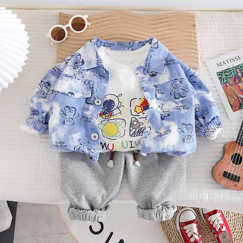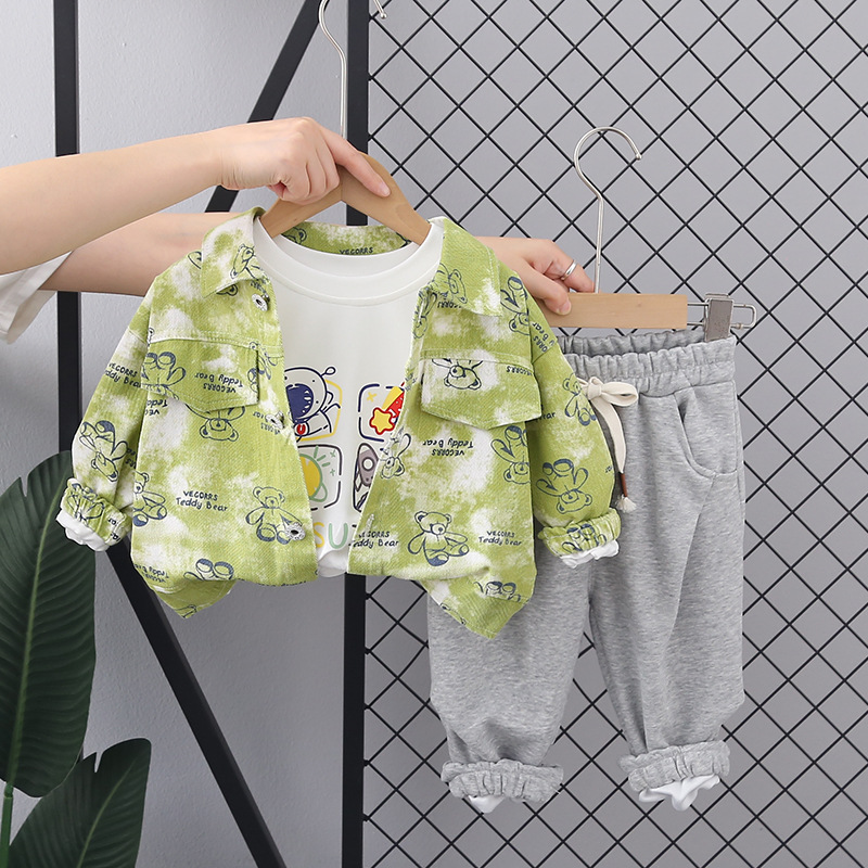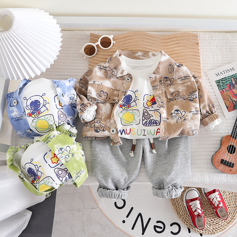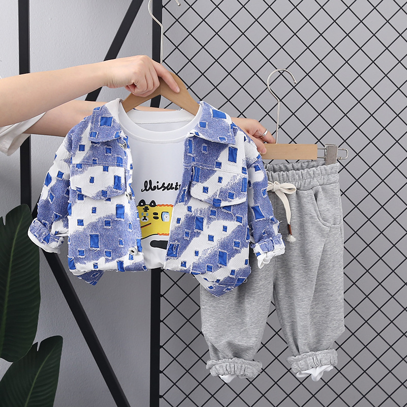 소년 소녀 가을 세트 2023 새로운 아동 의류 아동 봄 셔츠 3 피스 아기 봄과 가을 서양식 코트스토어 가기