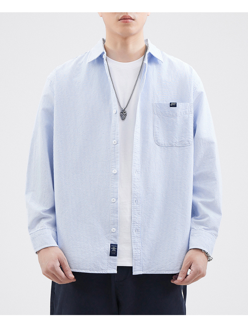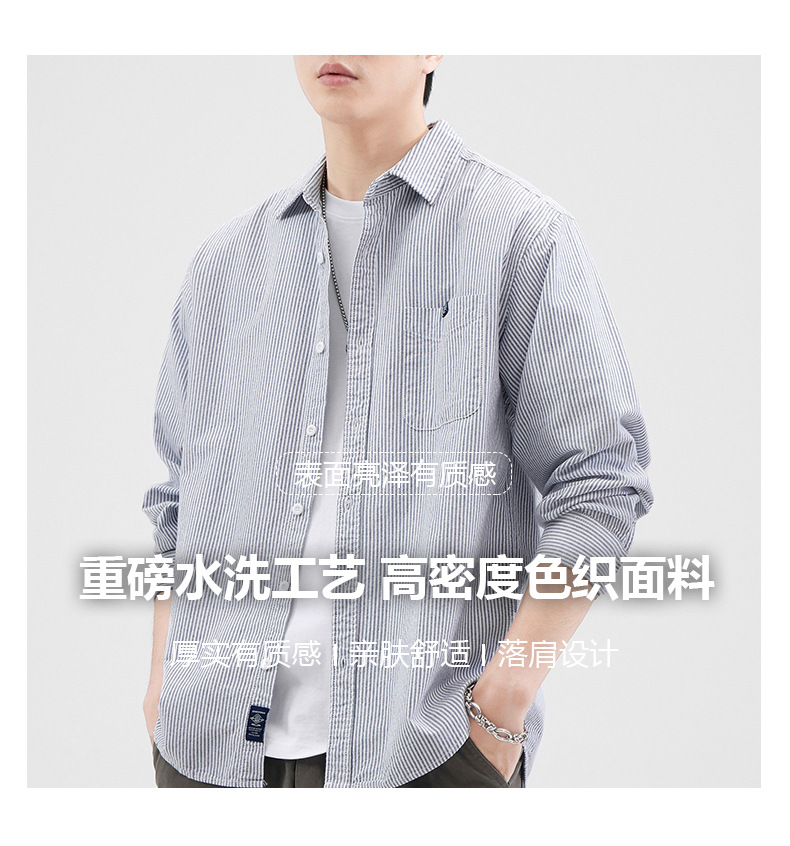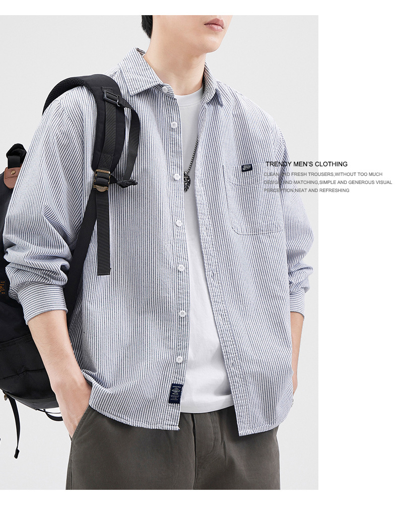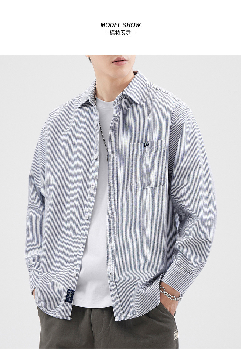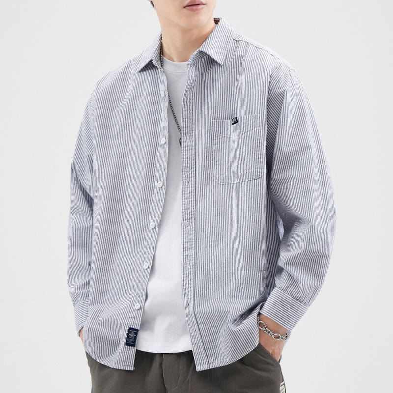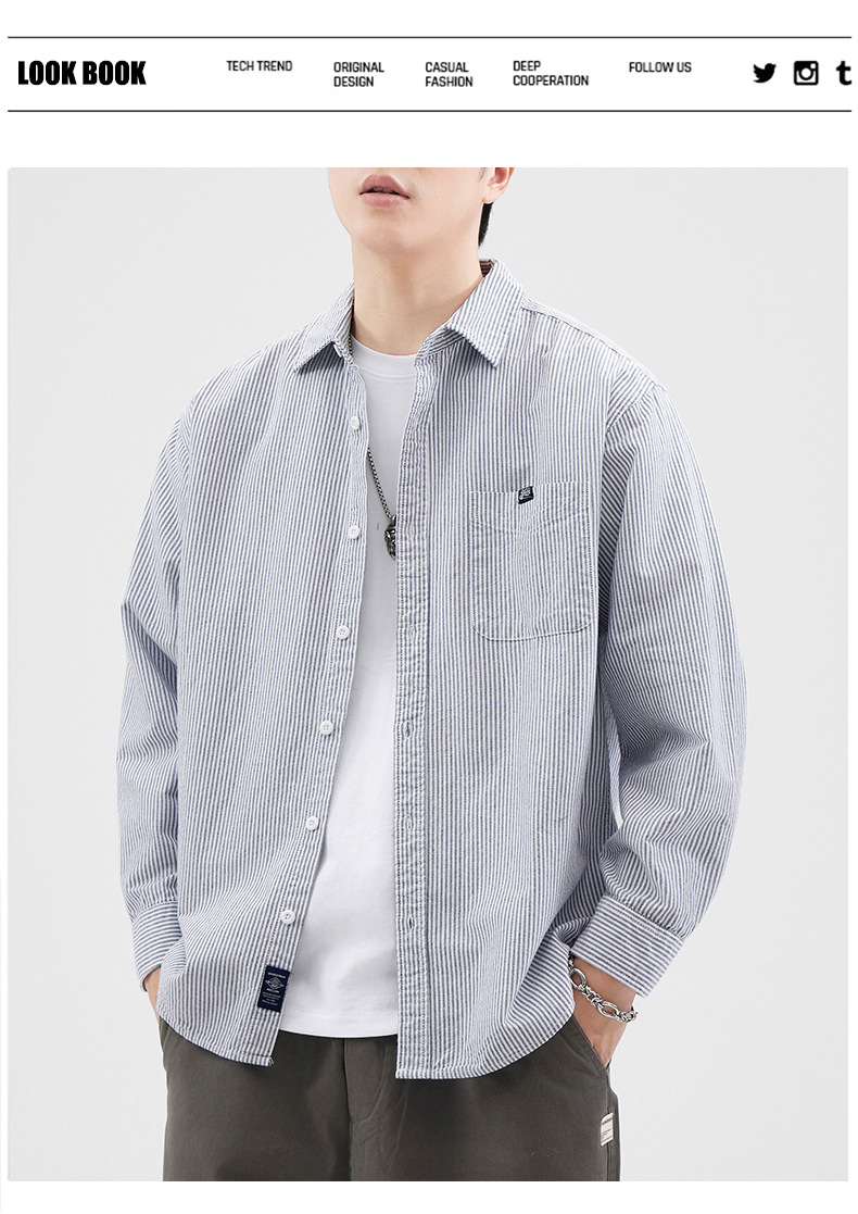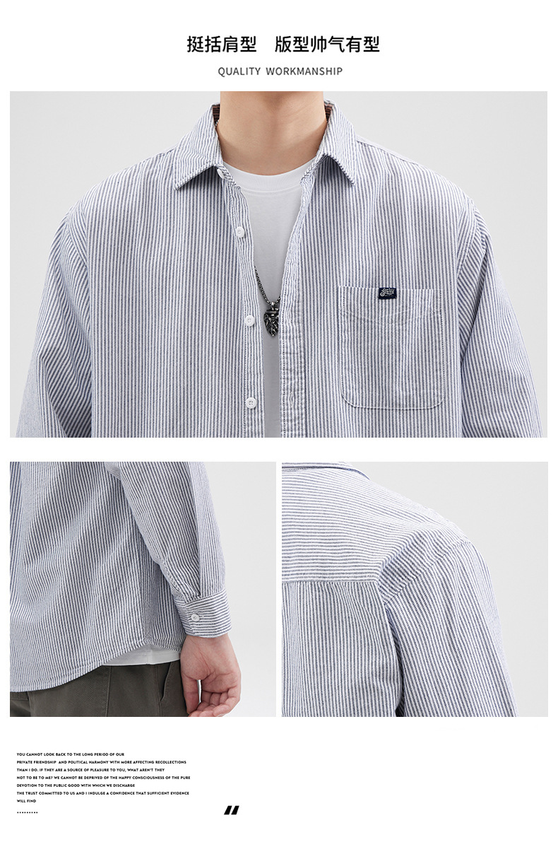 Muqiu 남성복 | 가을 신작 남자 친구 스타일 스트라이프 셔츠 남성 루즈한 복고풍 통근 아메리칸 캐주얼 셔츠스토어 가기