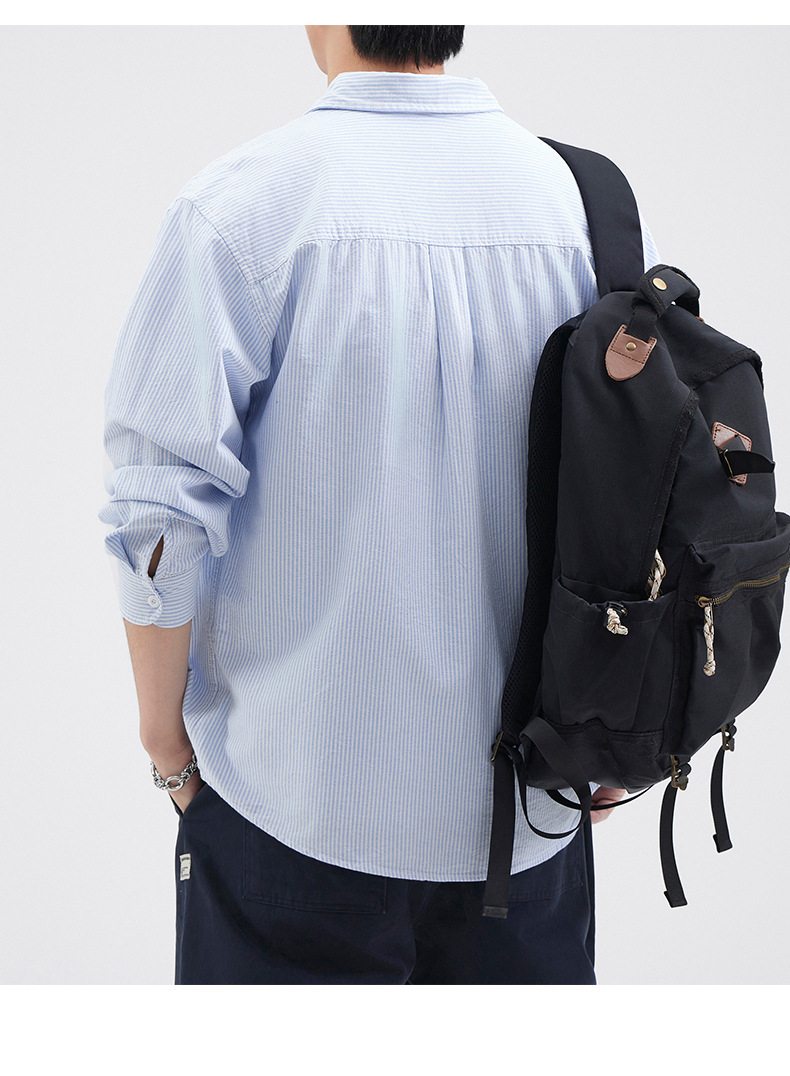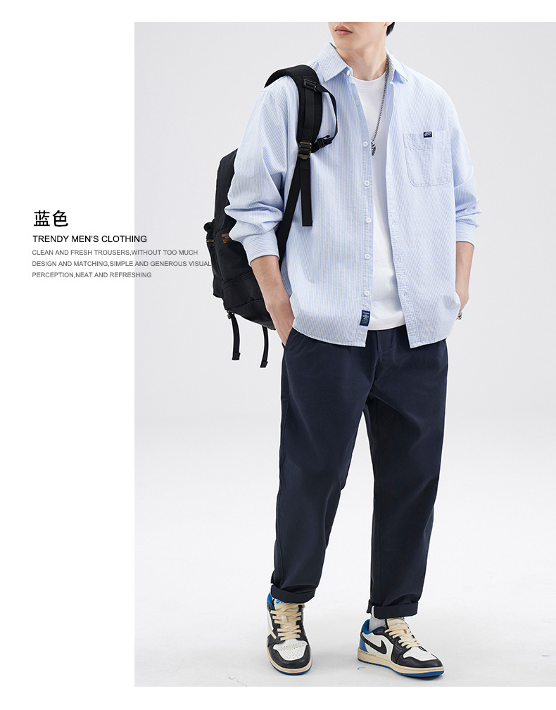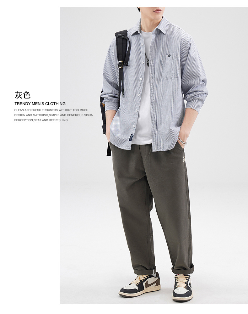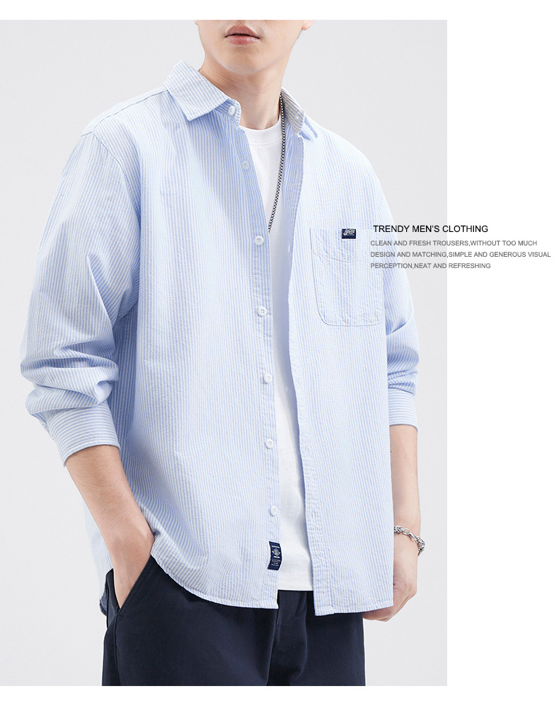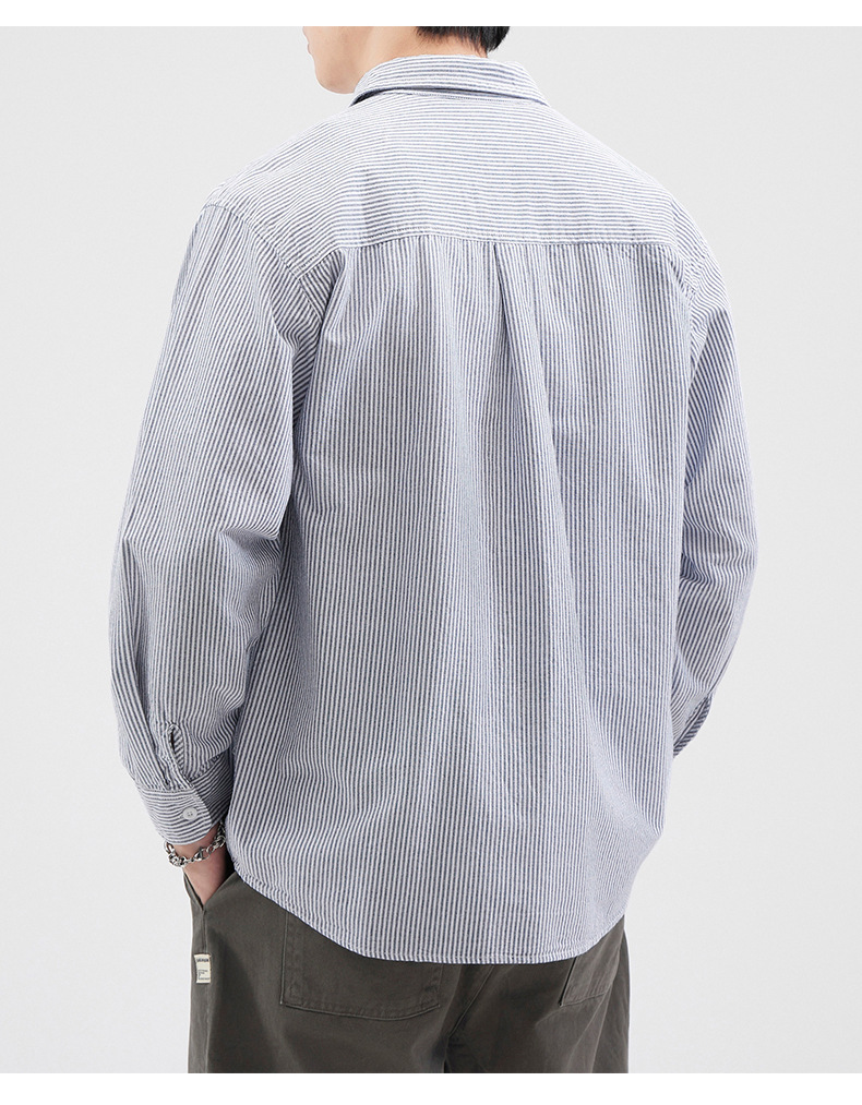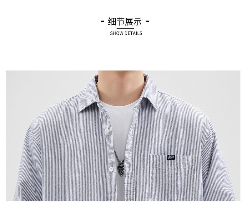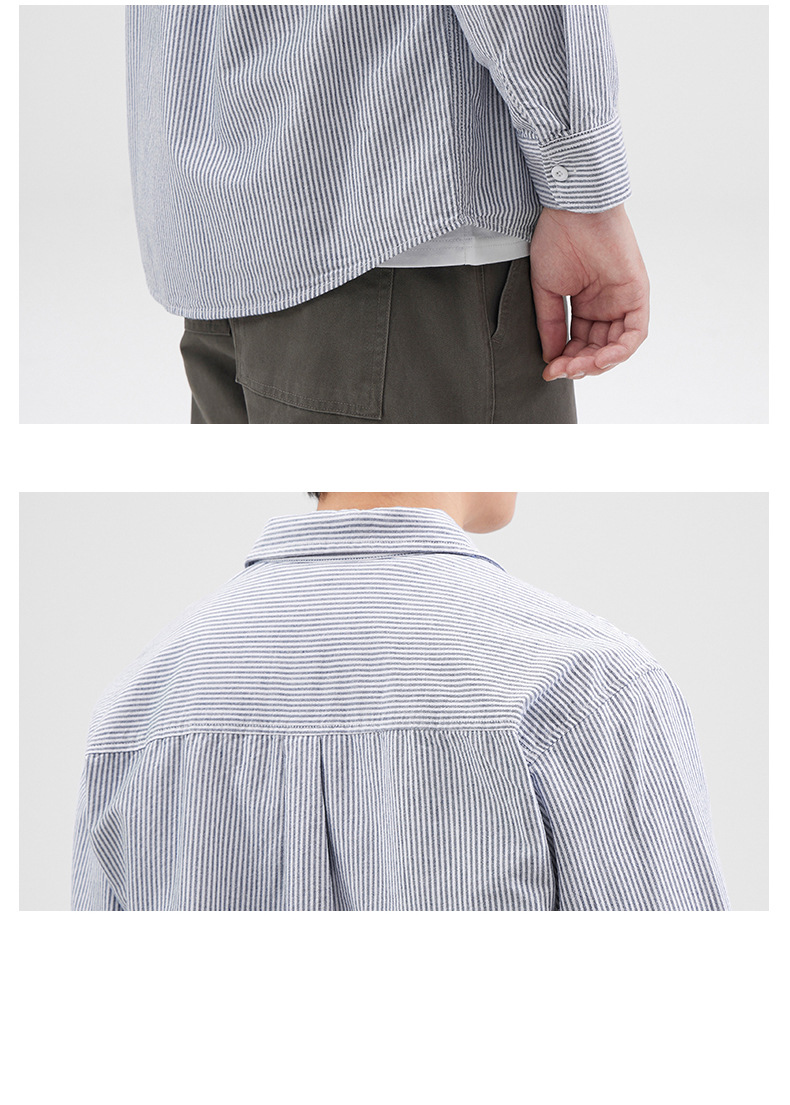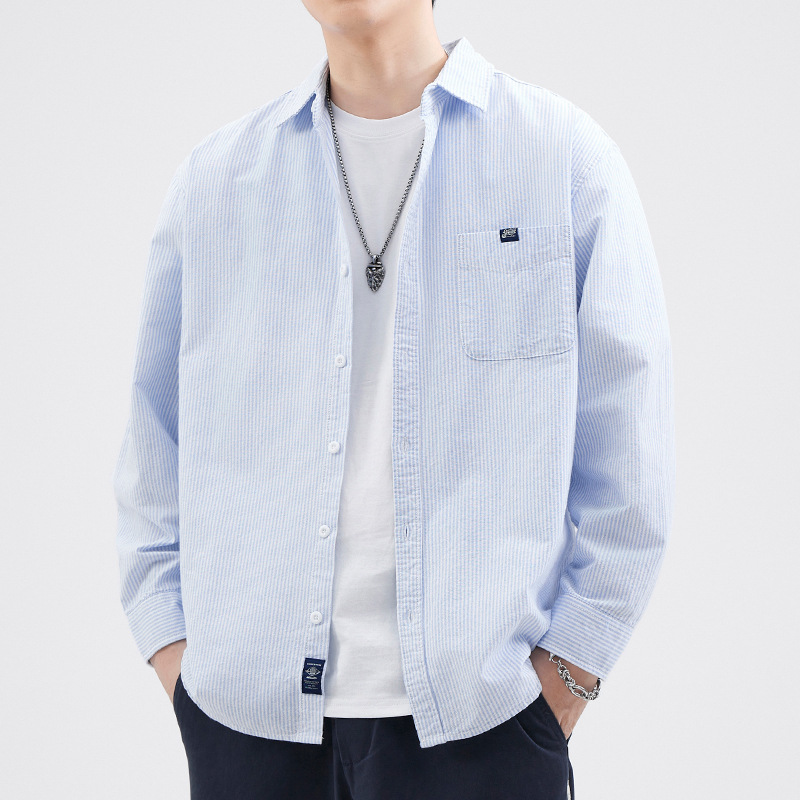 Muqiu 남성복 | 가을 신작 남자 친구 스타일 스트라이프 셔츠 남성 루즈한 복고풍 통근 아메리칸 캐주얼 셔츠스토어 가기