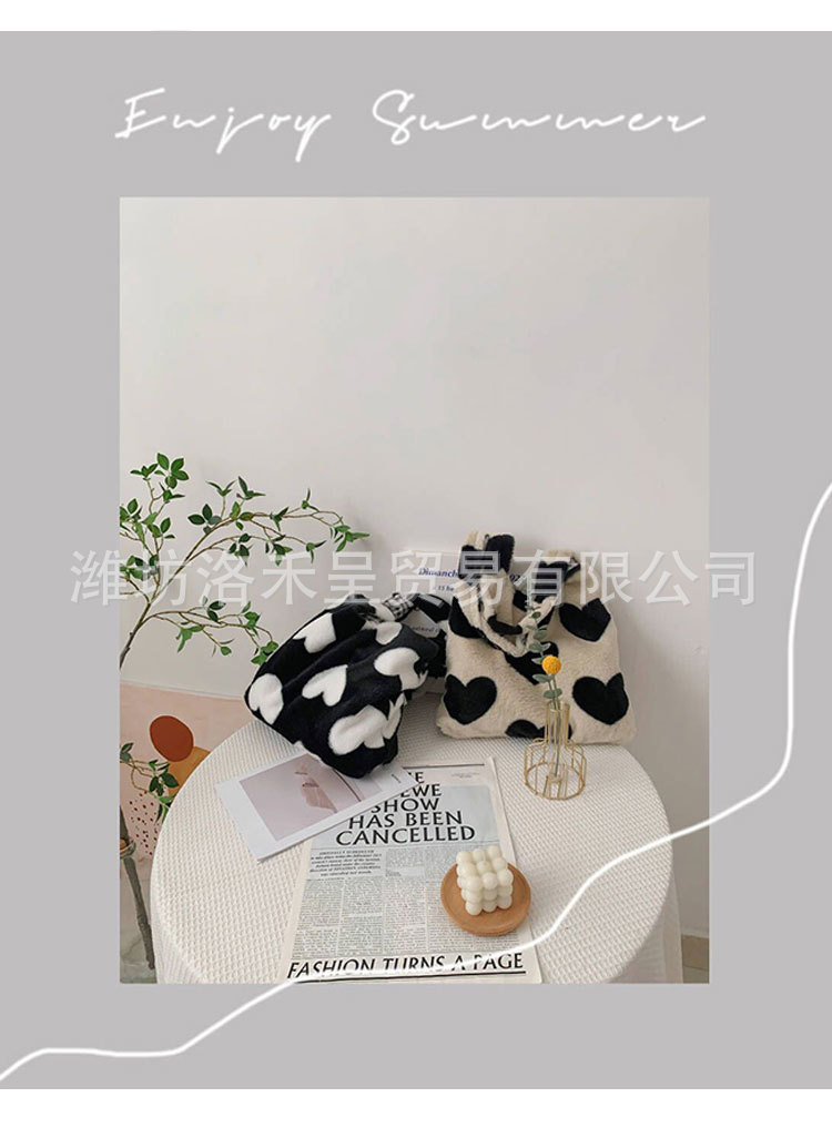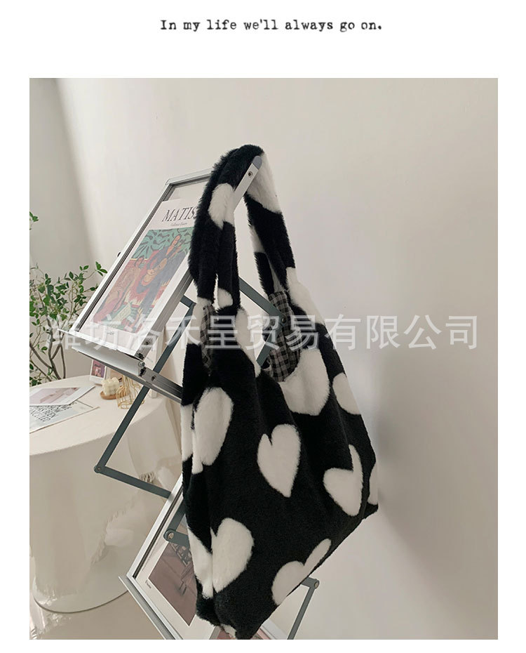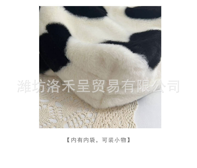 부판 굿/아마존 크로스 보더 공급 블랙 러브 래빗 퍼 백 대용량 플러시 숄더 토트 백