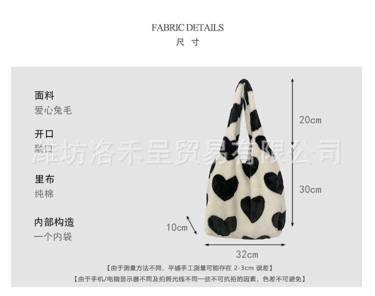 부판 굿/아마존 크로스 보더 공급 블랙 러브 래빗 퍼 백 대용량 플러시 숄더 토트 백스토어 가기