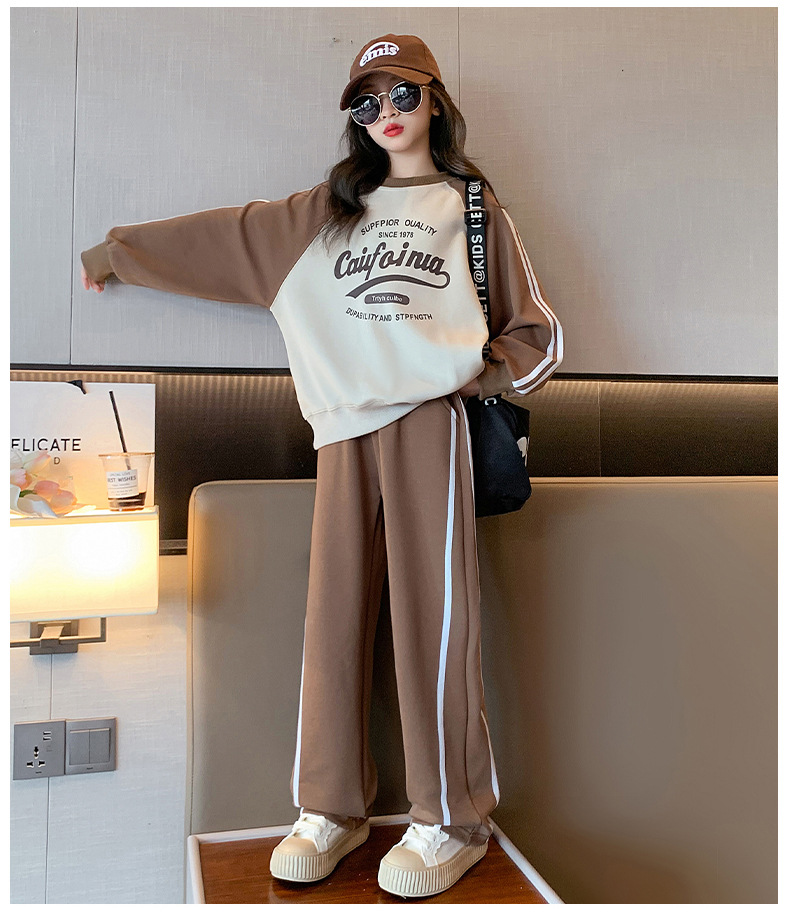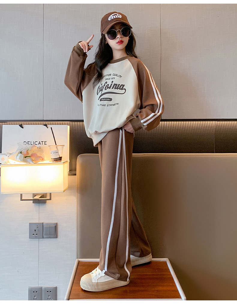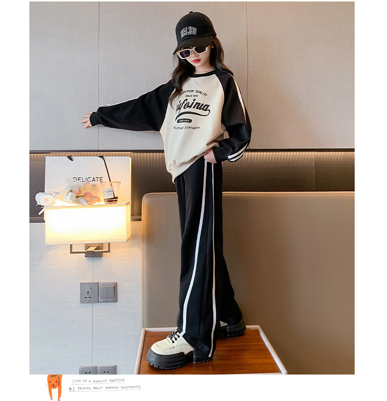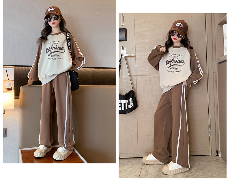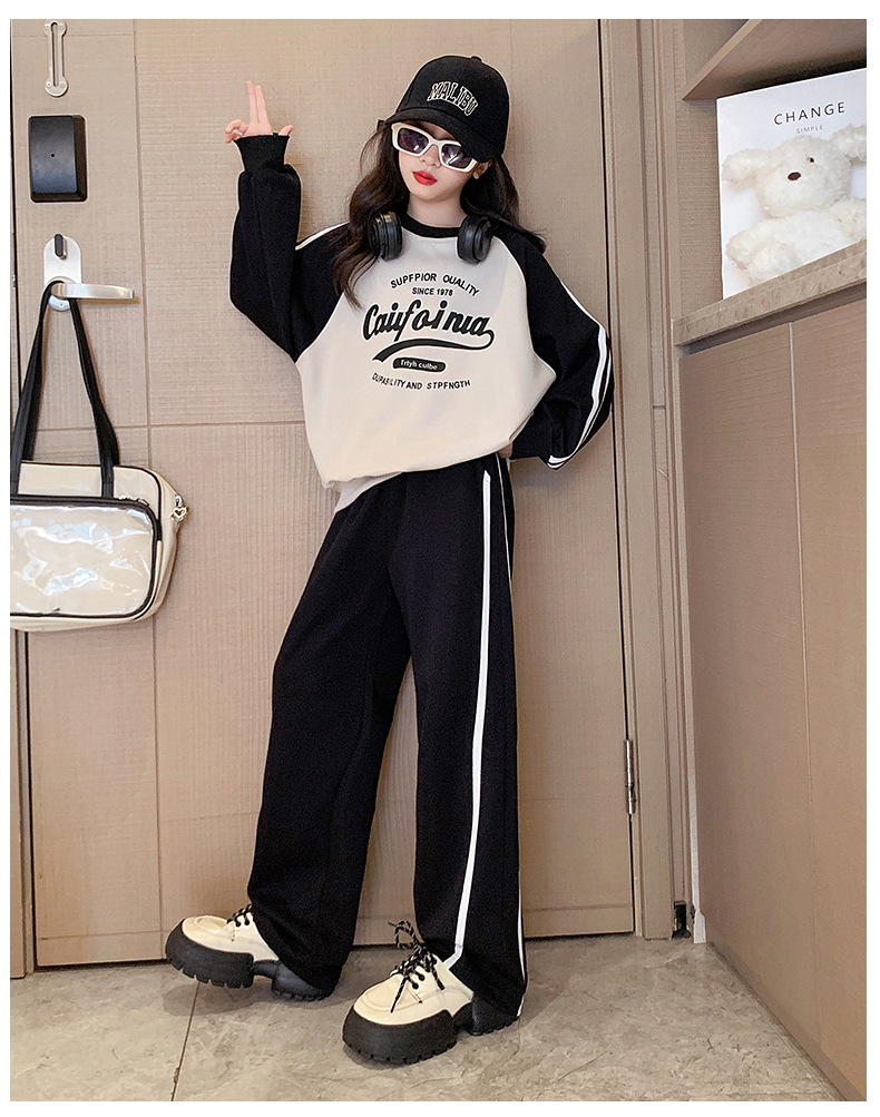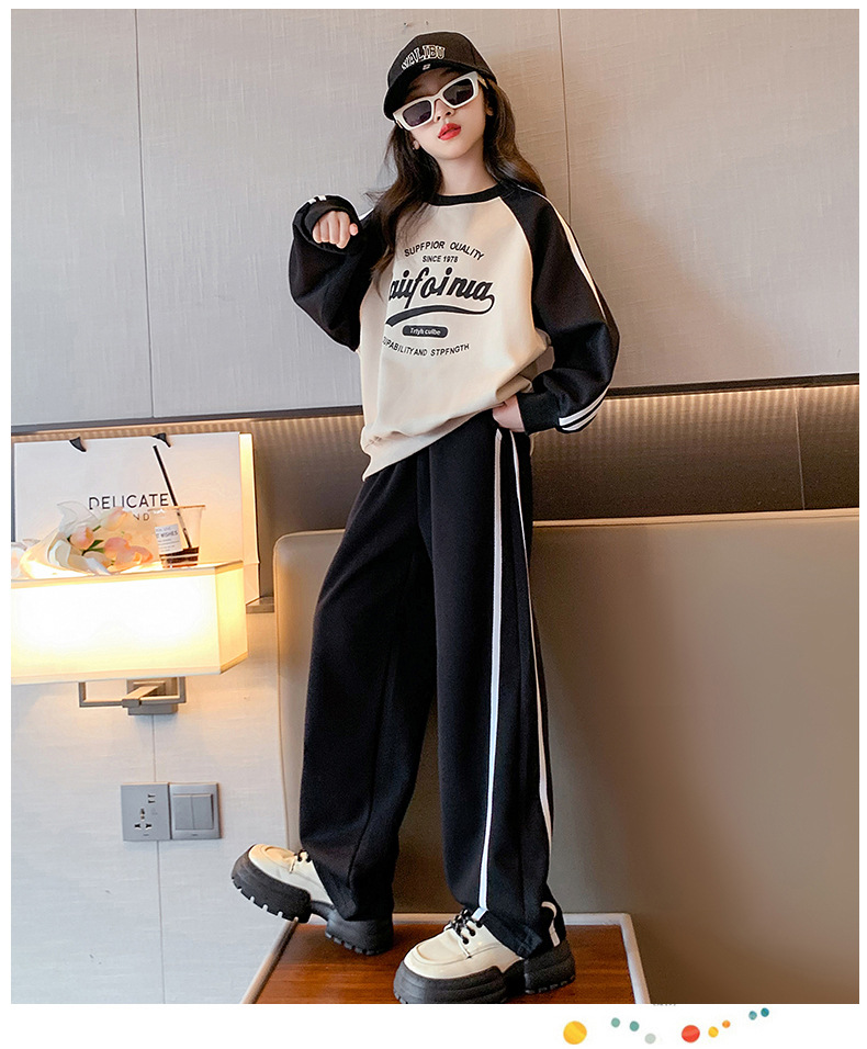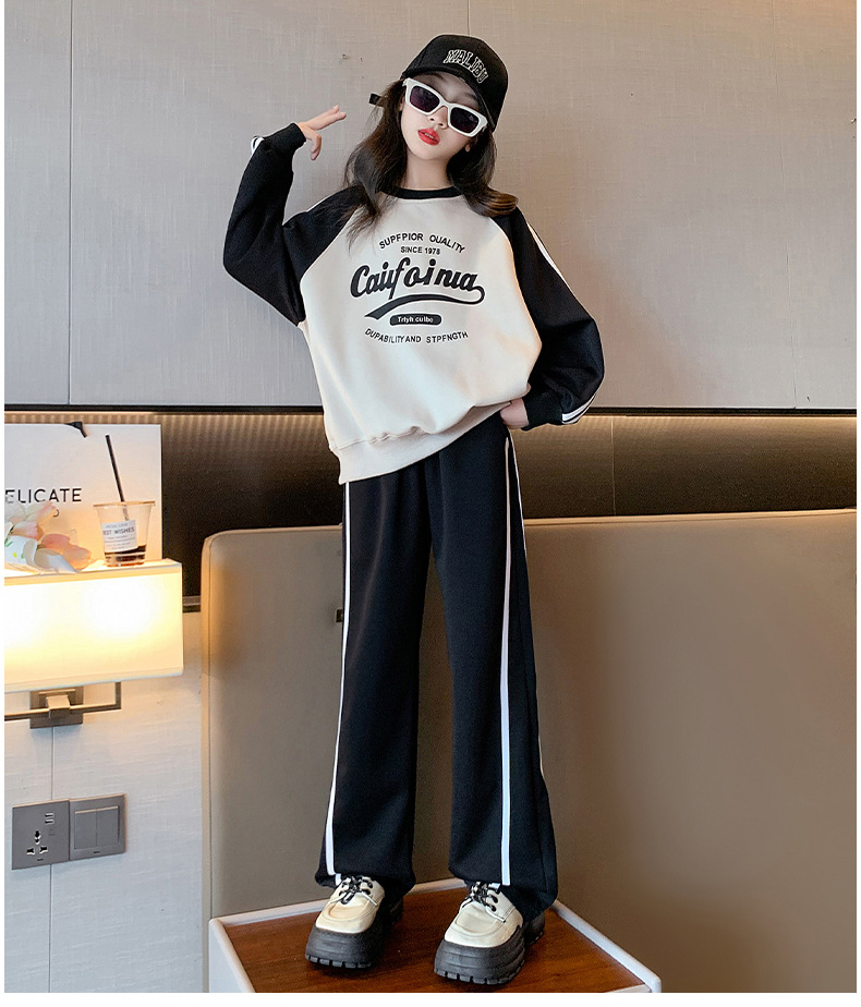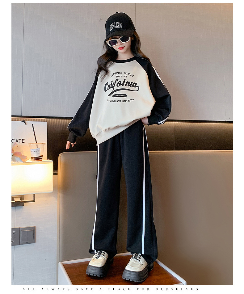 여아 스포츠 슈트 2025 신상 트렌디하고 세련된 중대형 아동용 봄 가을 캐주얼 아동용 봄 스웨트셔츠 투피스 세트스토어 가기