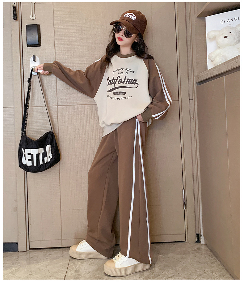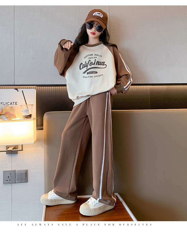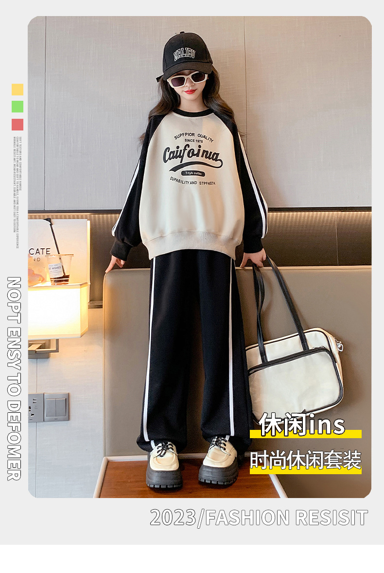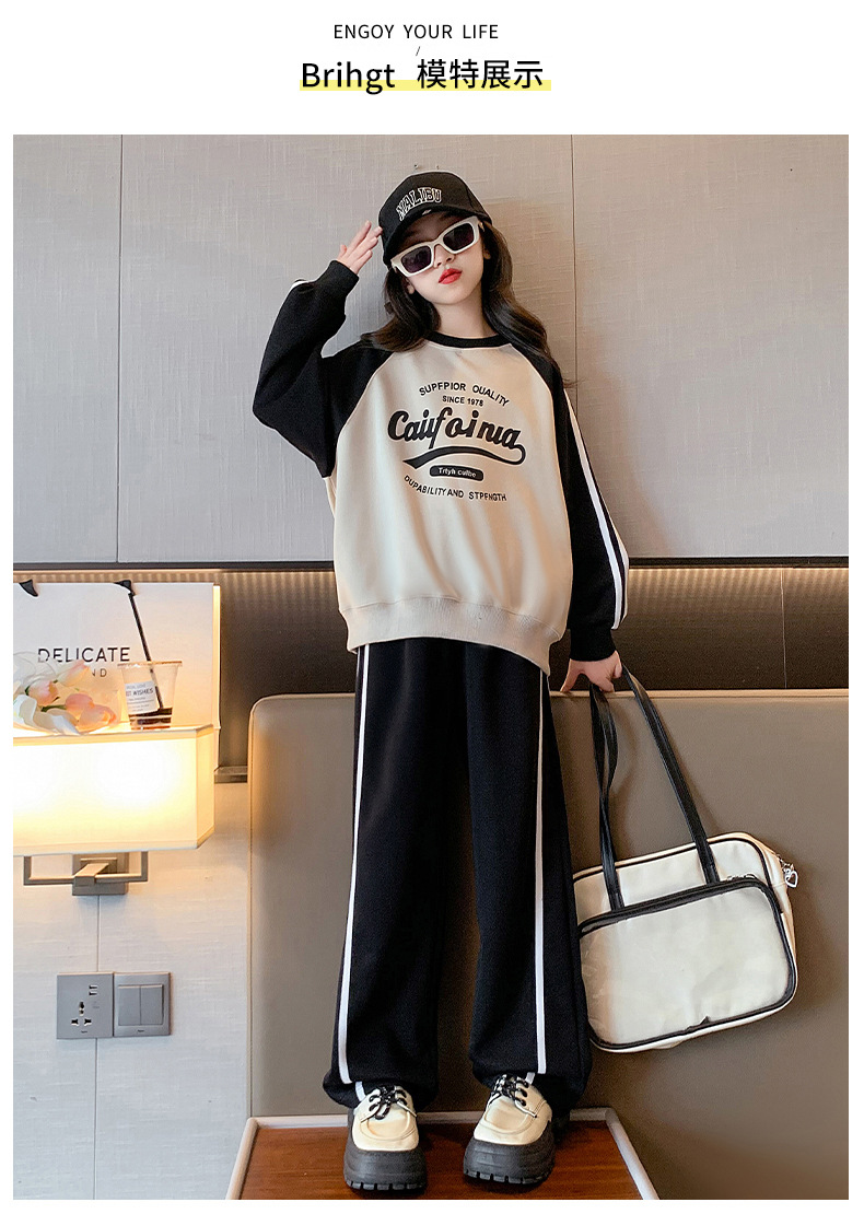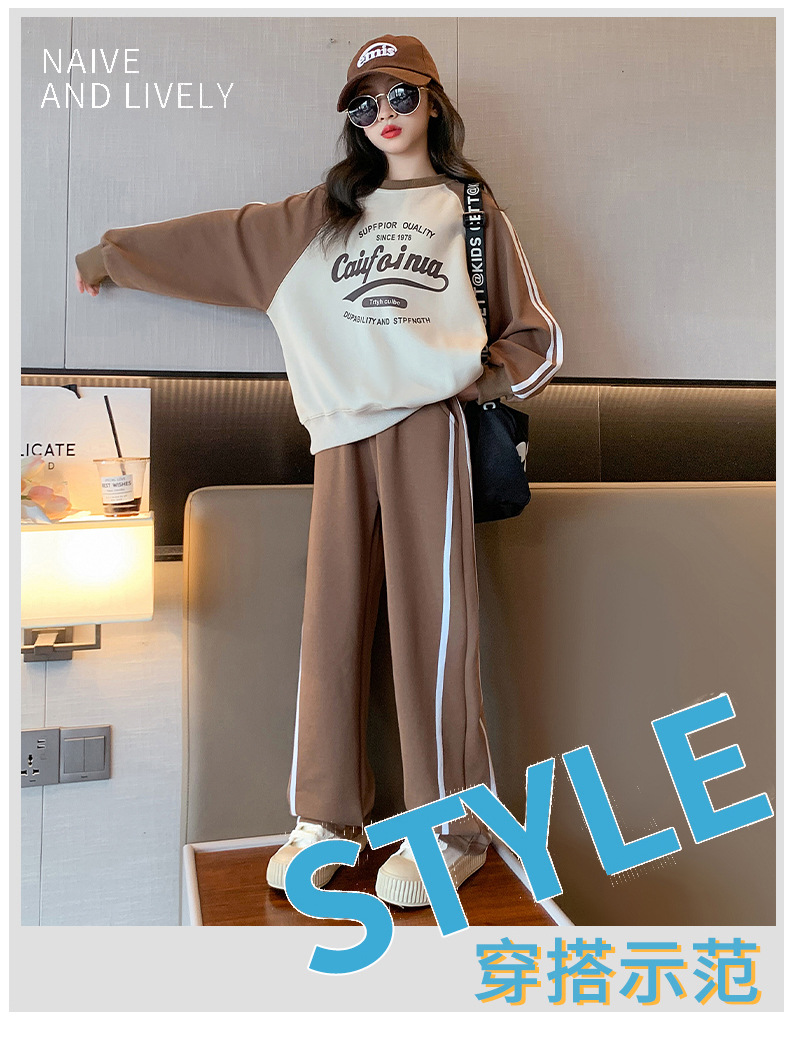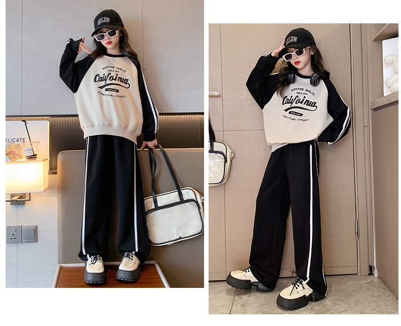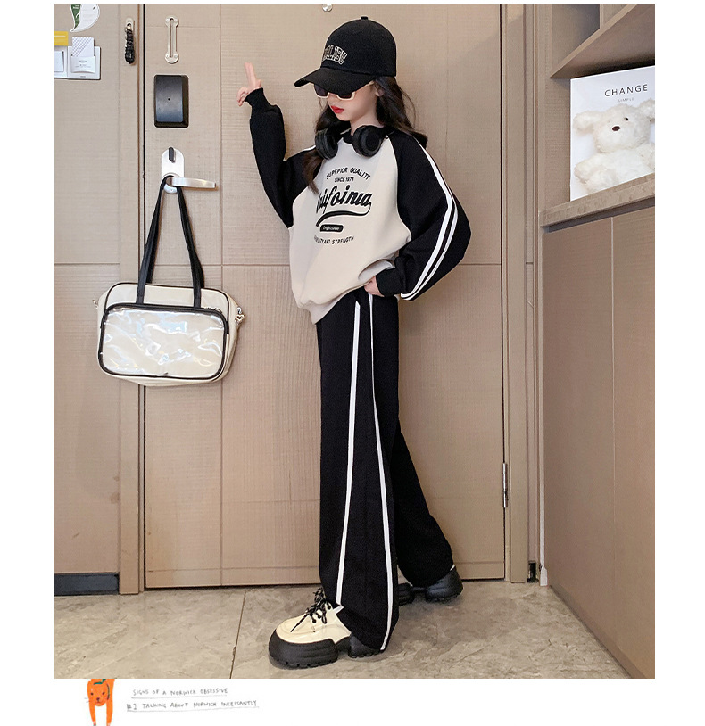 여아 스포츠 슈트 2025 신상 트렌디하고 세련된 중대형 아동용 봄 가을 캐주얼 아동용 봄 스웨트셔츠 투피스 세트스토어 가기