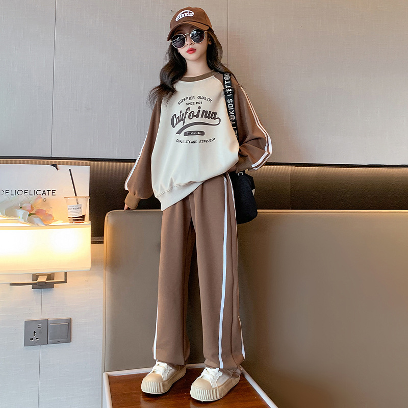 여아 스포츠 슈트 2025 신상 트렌디하고 세련된 중대형 아동용 봄 가을 캐주얼 아동용 봄 스웨트셔츠 투피스 세트