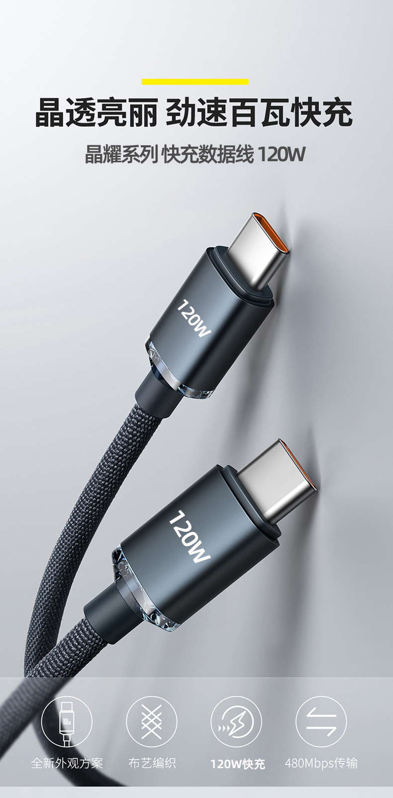 Jingyao 6A 더블 타입-C 데이터 라인 120W 고속 충전 PD 라인 화웨이 샤오미 컴퓨터 플래시 충전 라인 크로스 보더 적용 가능스토어 가기