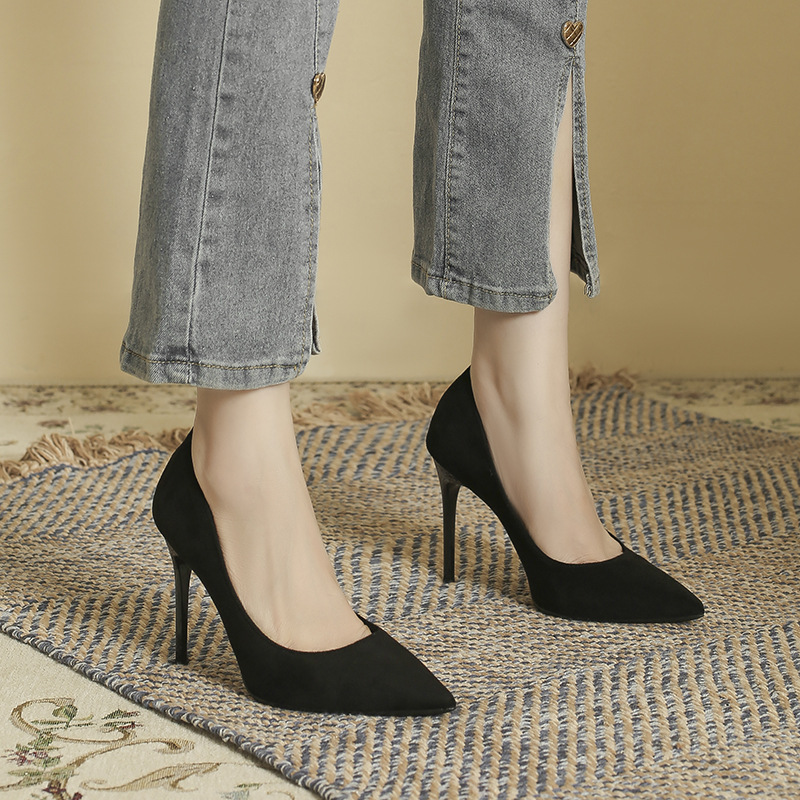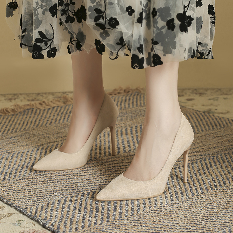 스몰 사이즈 313233 얕은 입 뾰족한 젖빛 하이힐 여성용 스틸레토 힐 2023 새로운 모든 매치 플러스 사이즈 414243 싱글 레이어 신발스토어 가기