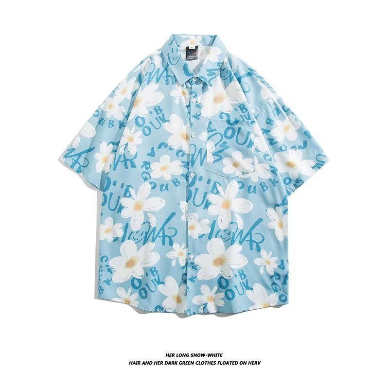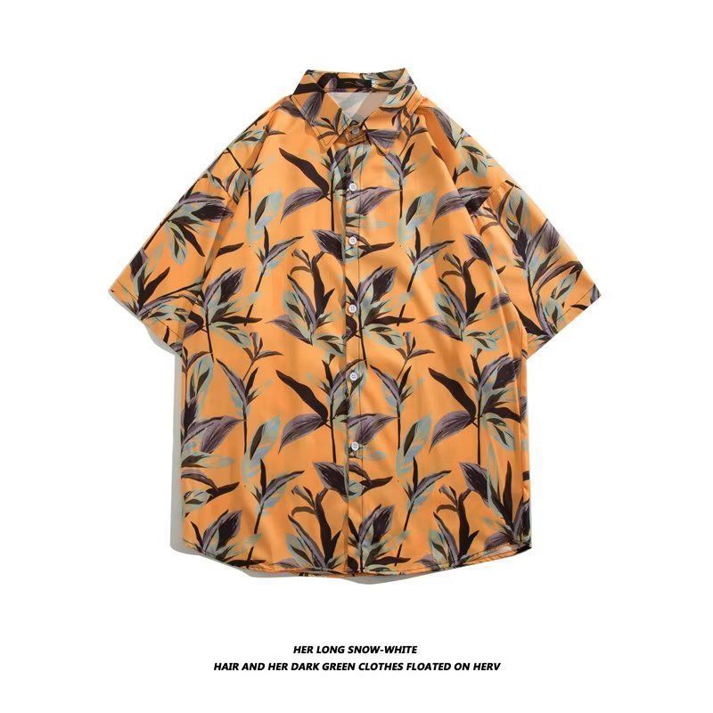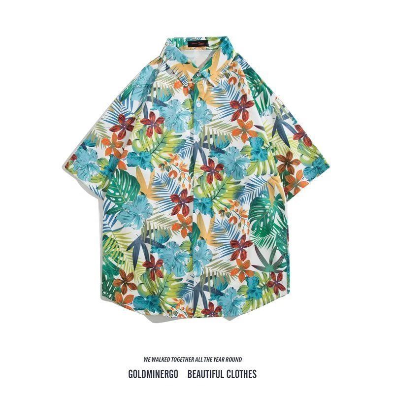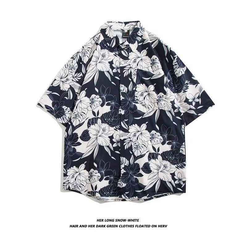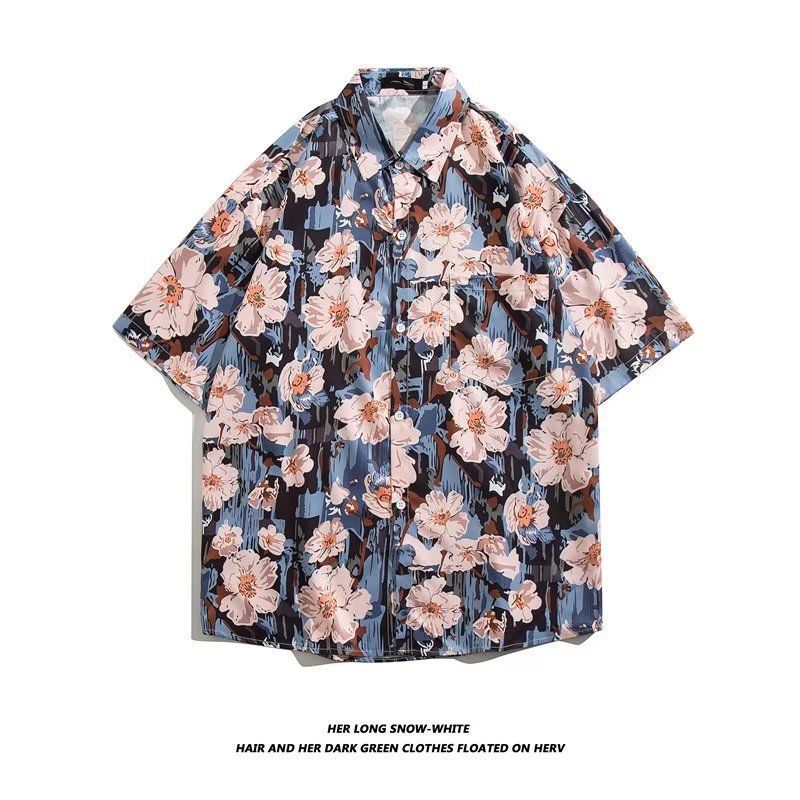 Vintage12 여름 셔츠 비치 플라워 만화 트렌디 한 반팔 셔츠 하이 엔드 홍콩 스타일 복고풍 꽃 남자 셔츠