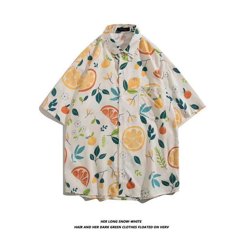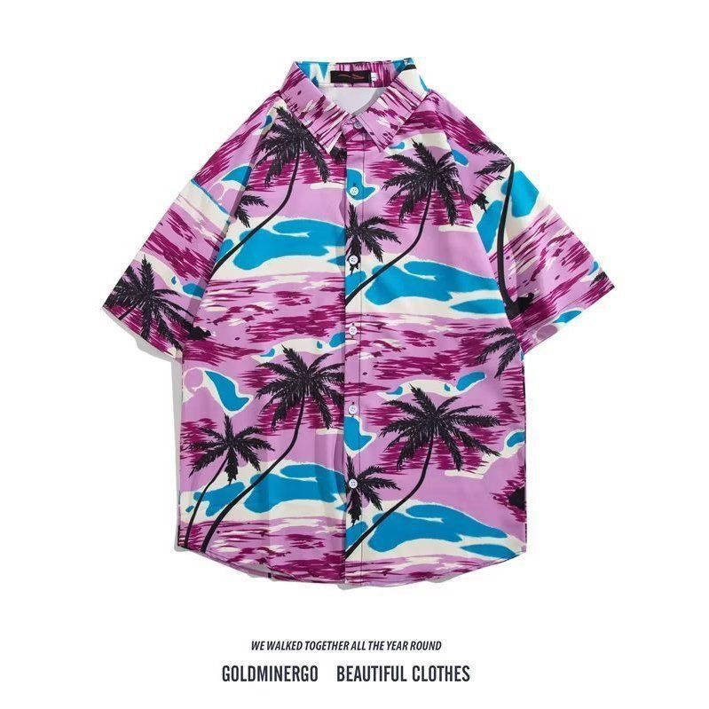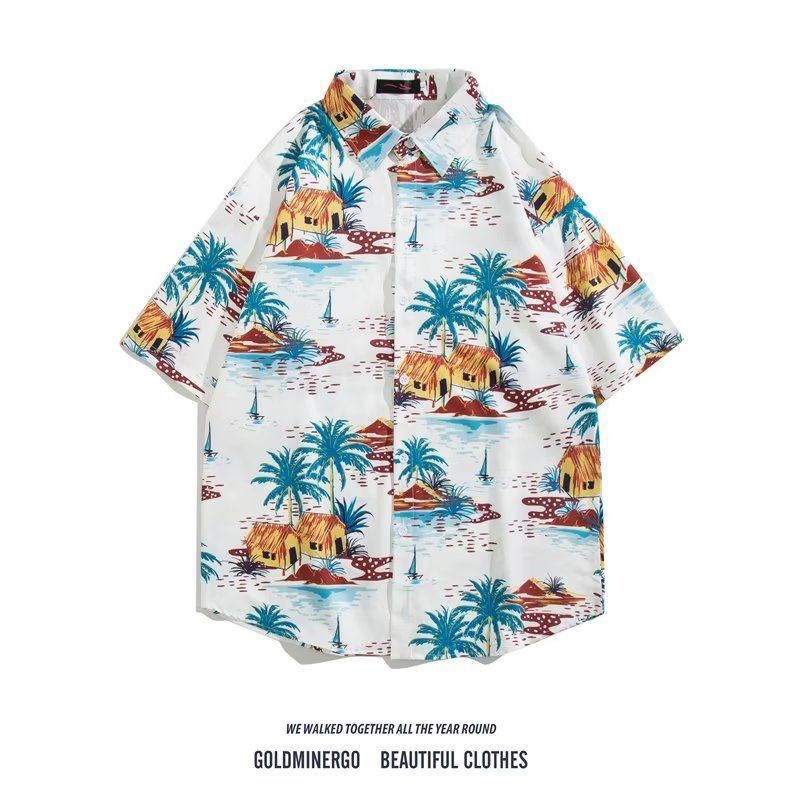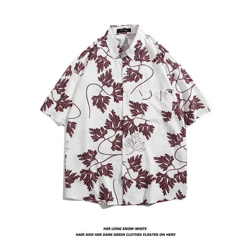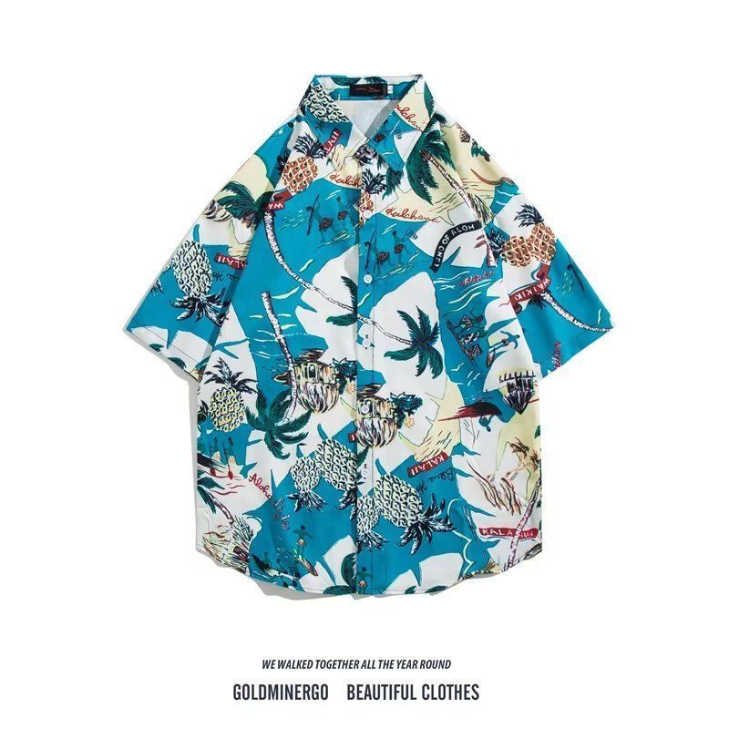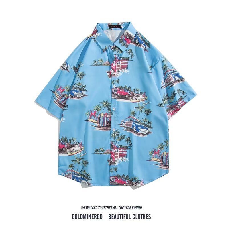 Vintage12 여름 셔츠 비치 플라워 만화 트렌디 한 반팔 셔츠 하이 엔드 홍콩 스타일 복고풍 꽃 남자 셔츠