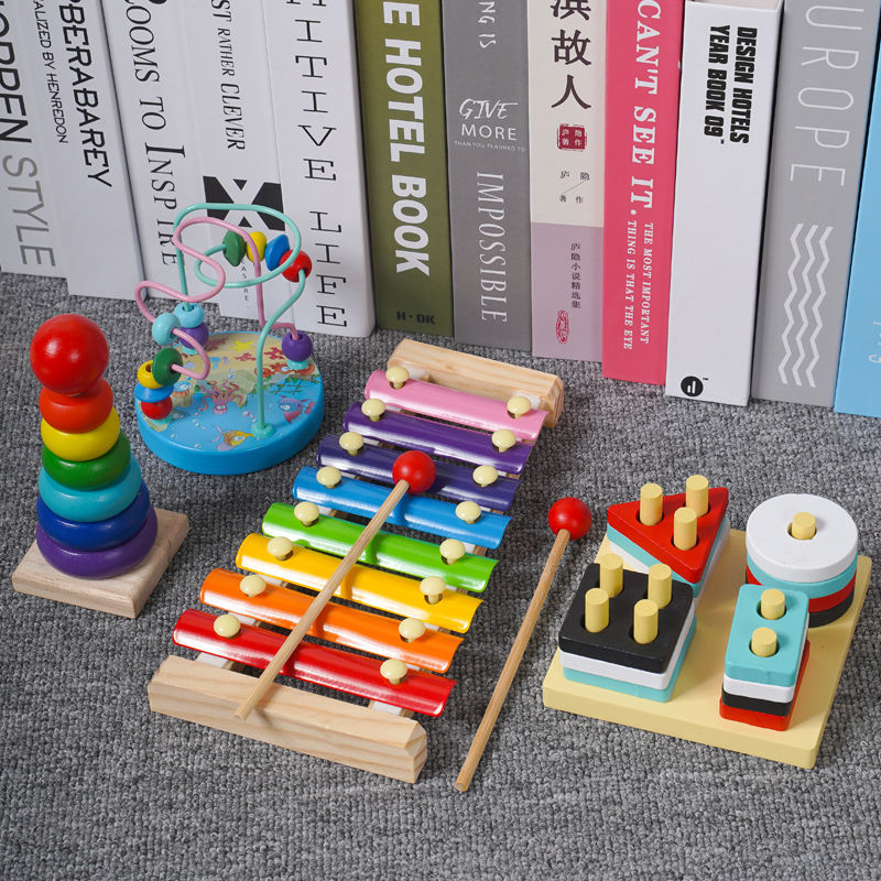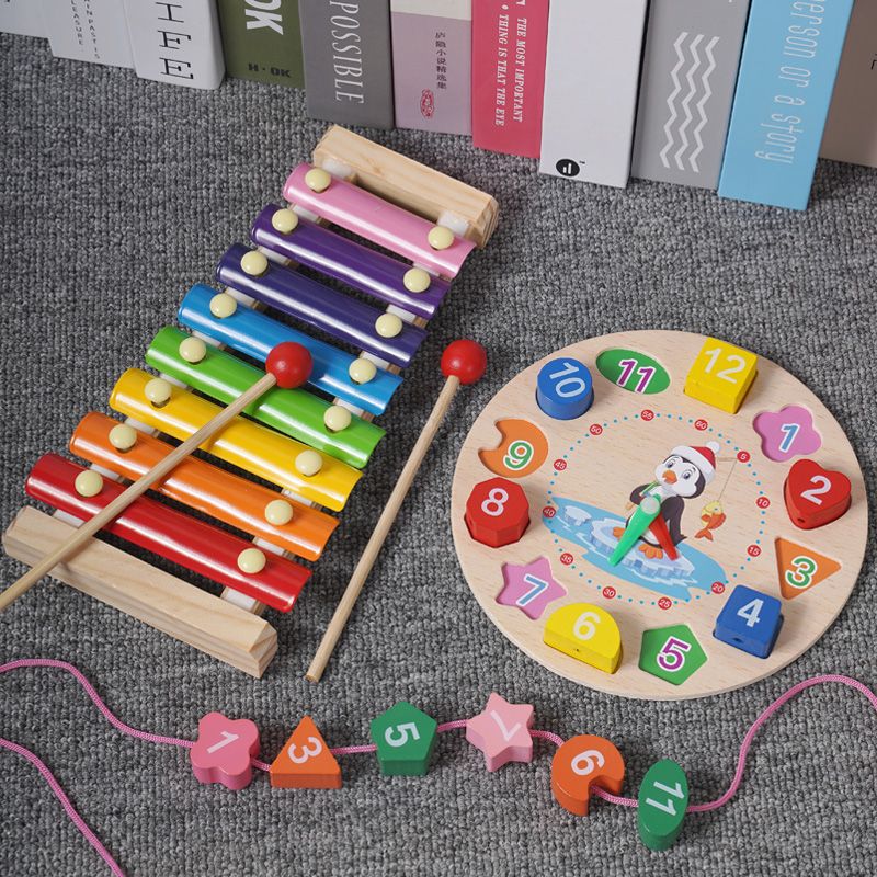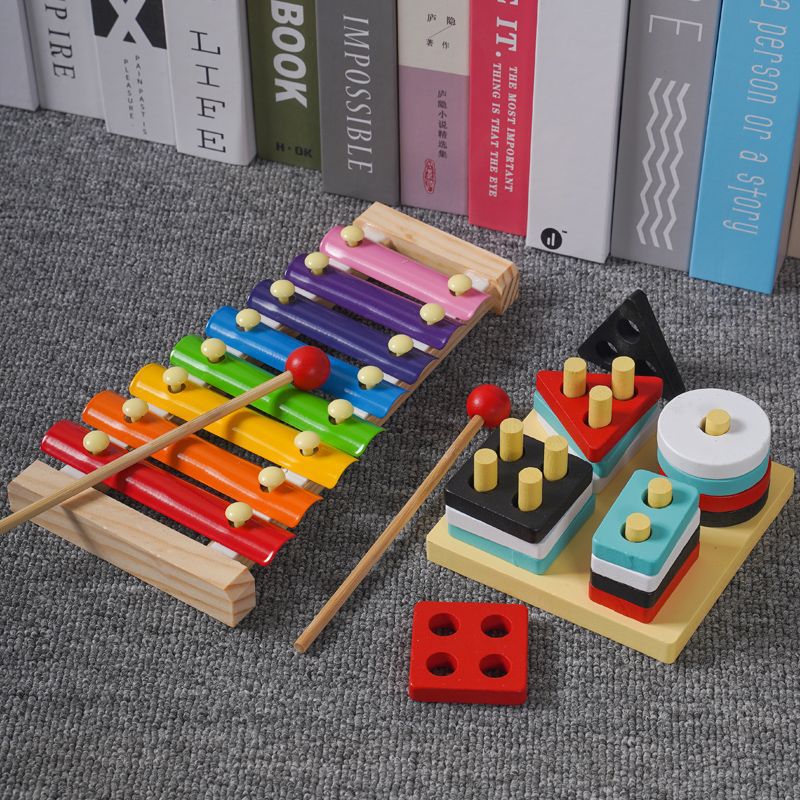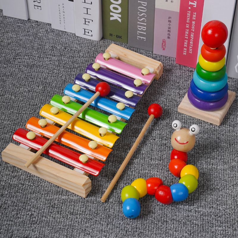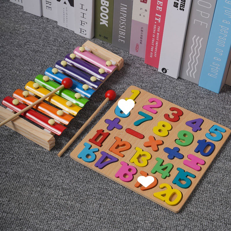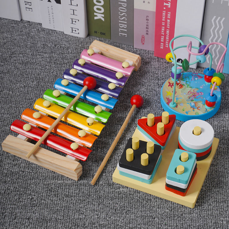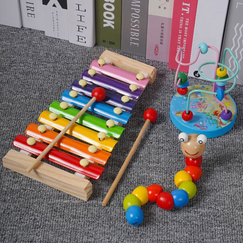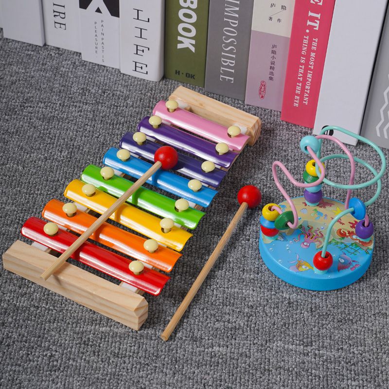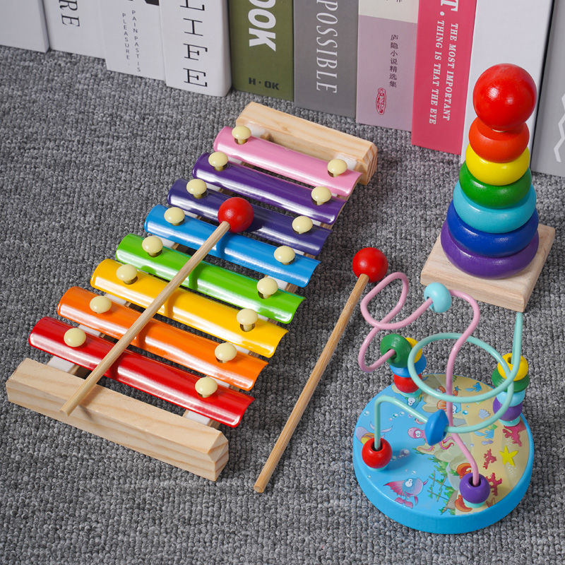 몬테소리 조기 교육 장난감 어린이 유아 8 톤 피아노 핸드 노크 아기 퍼즐 빌딩 블록 1-2-3 세 포장 구슬 세트 열