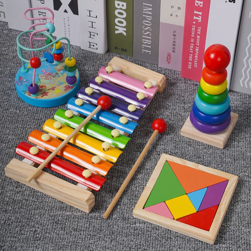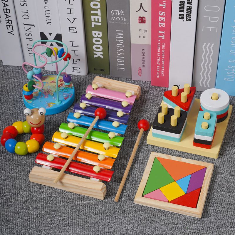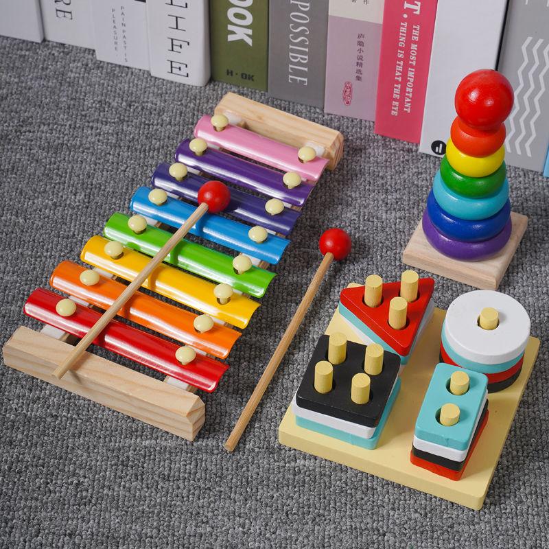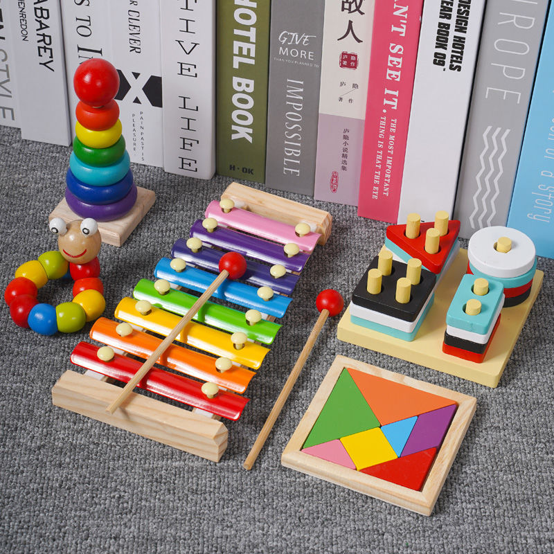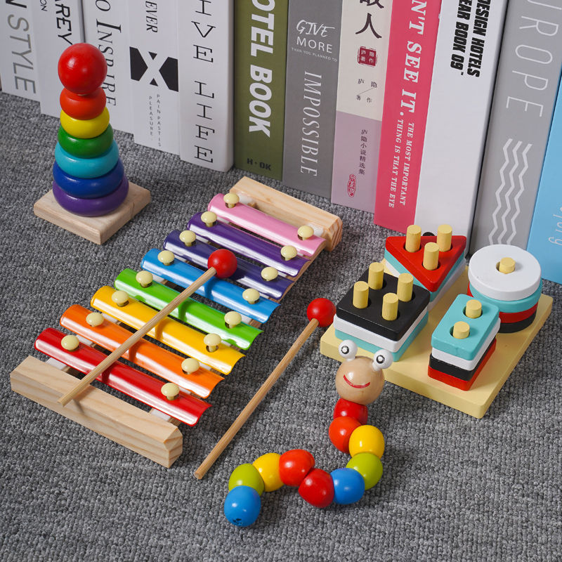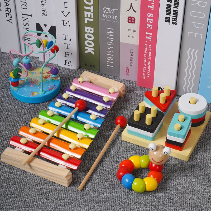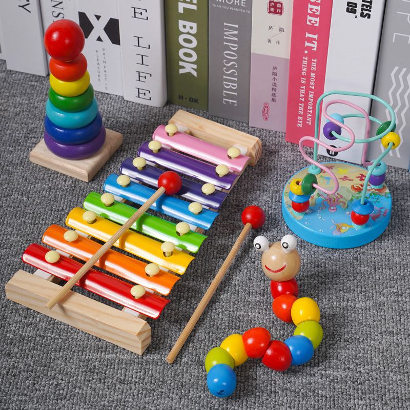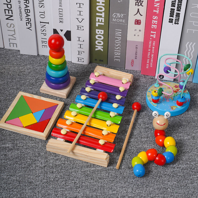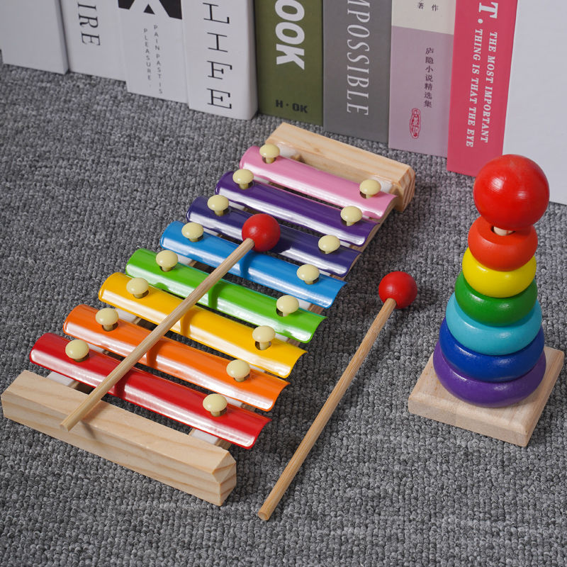 몬테소리 조기 교육 장난감 어린이 유아 8 톤 피아노 핸드 노크 아기 퍼즐 빌딩 블록 1-2-3 세 포장 구슬 세트 열