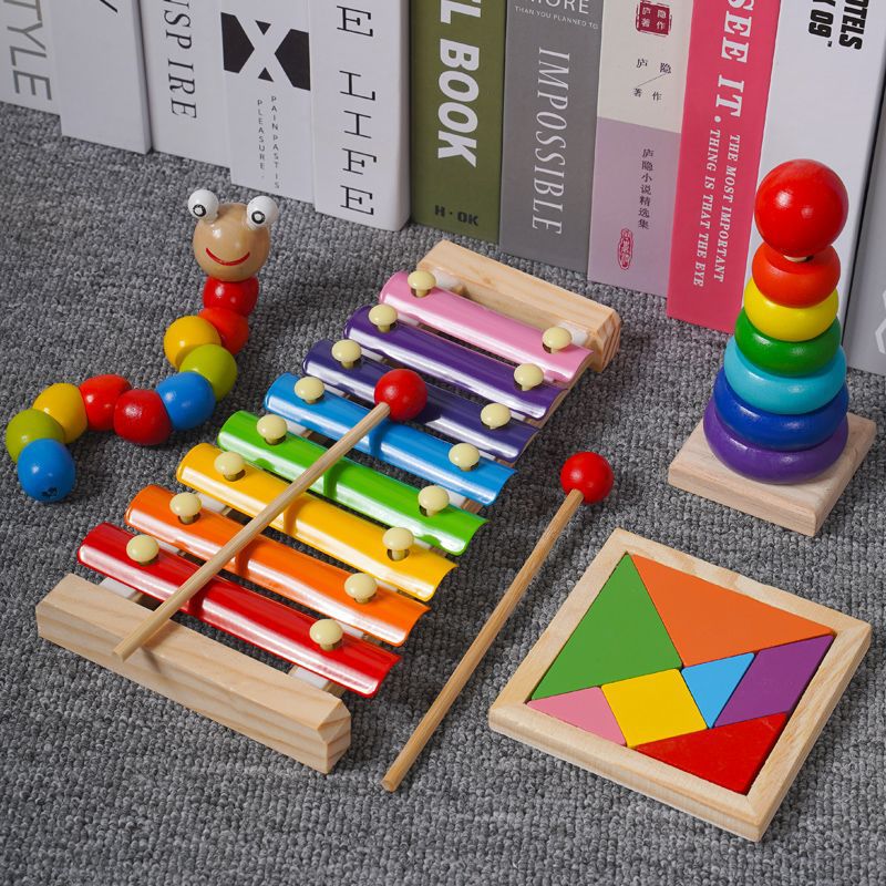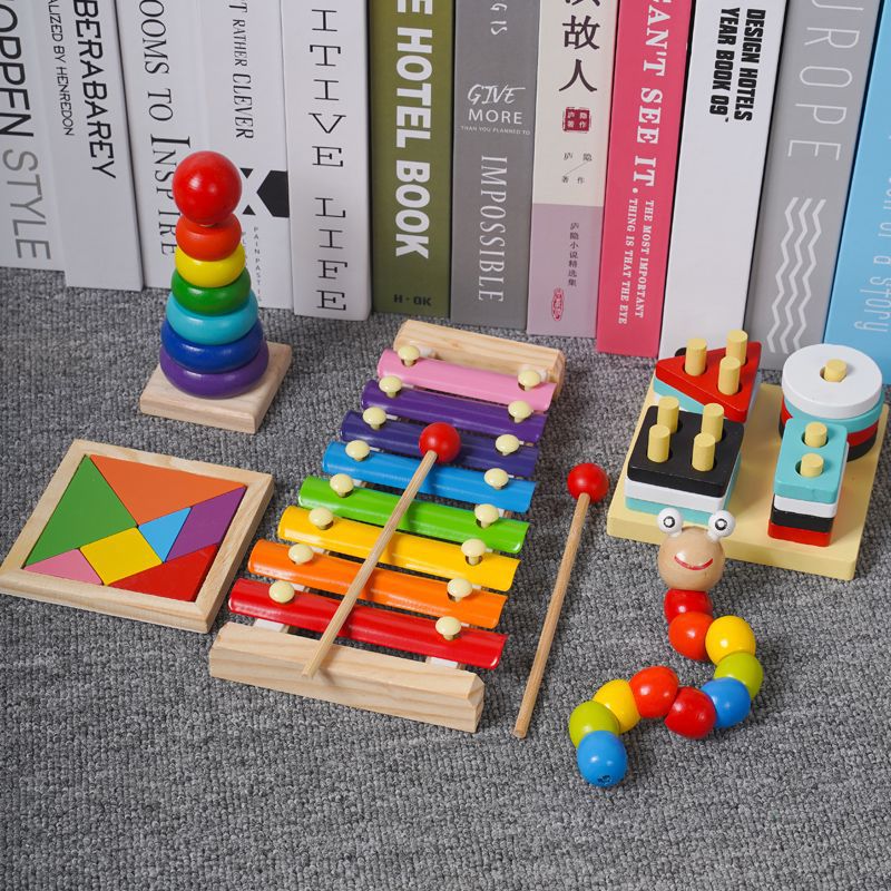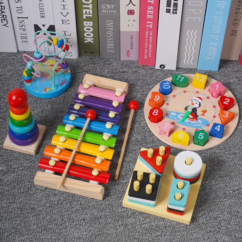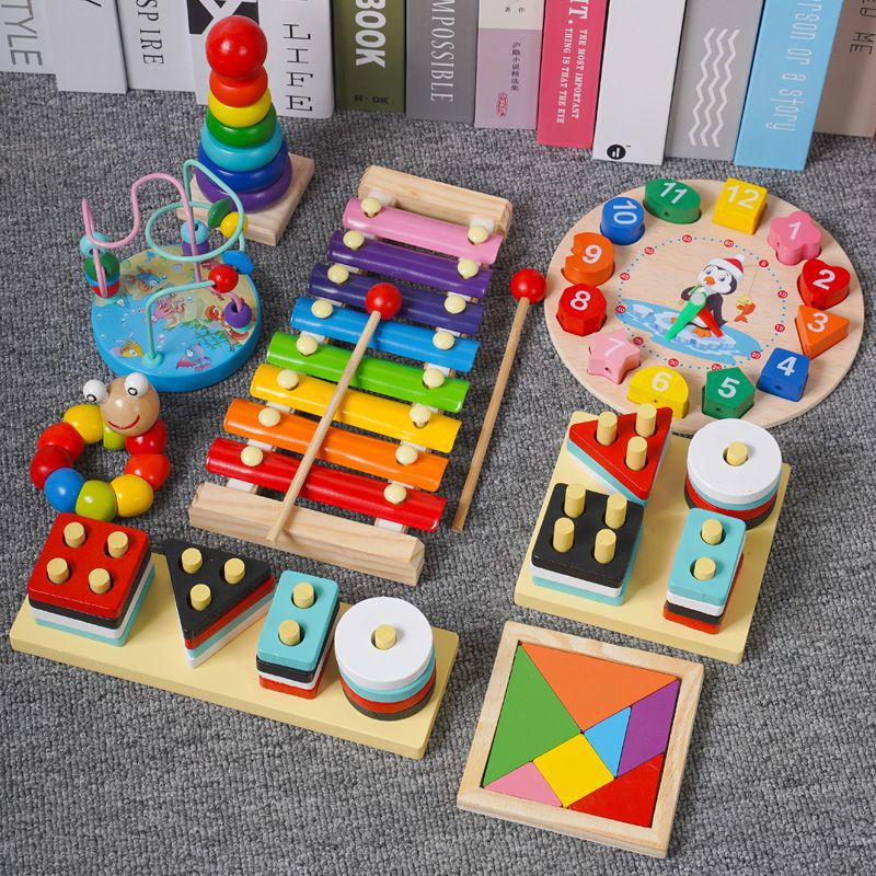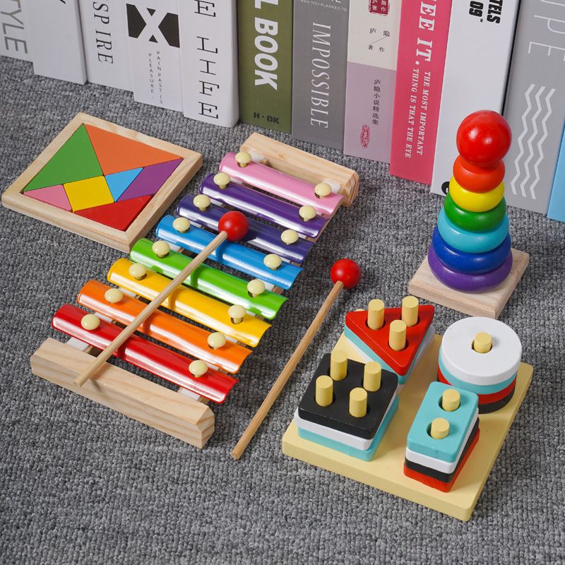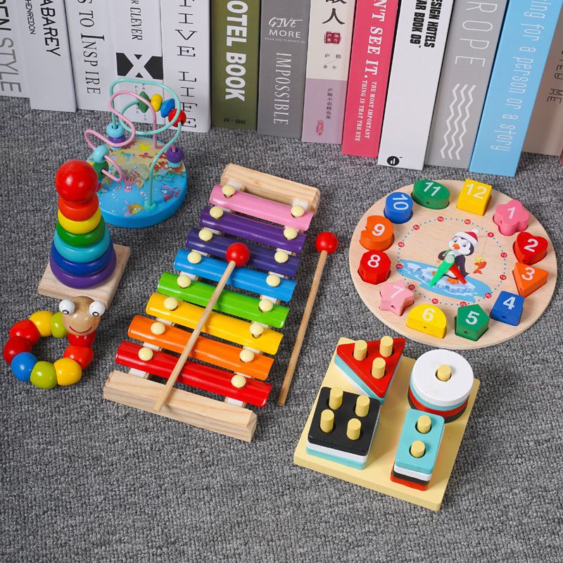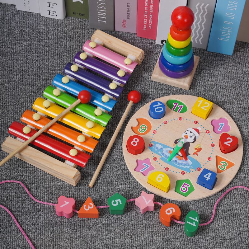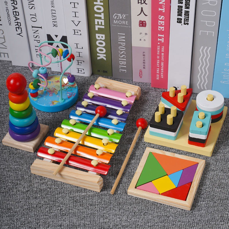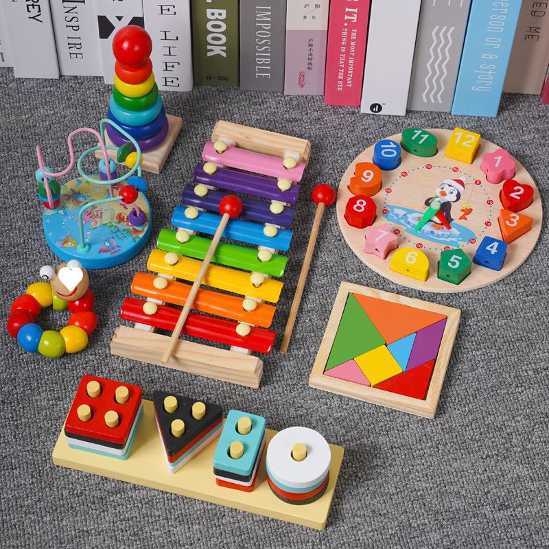 몬테소리 조기 교육 장난감 어린이 유아 8 톤 피아노 핸드 노크 아기 퍼즐 빌딩 블록 1-2-3 세 포장 구슬 세트 열