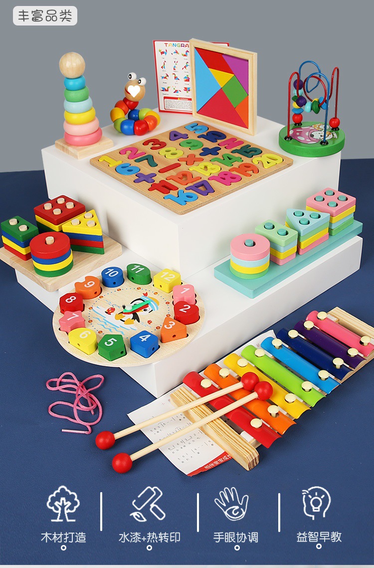 몬테소리 조기 교육 장난감 어린이 유아 8 톤 피아노 핸드 노크 아기 퍼즐 빌딩 블록 1-2-3 세 포장 구슬 세트 열스토어 가기