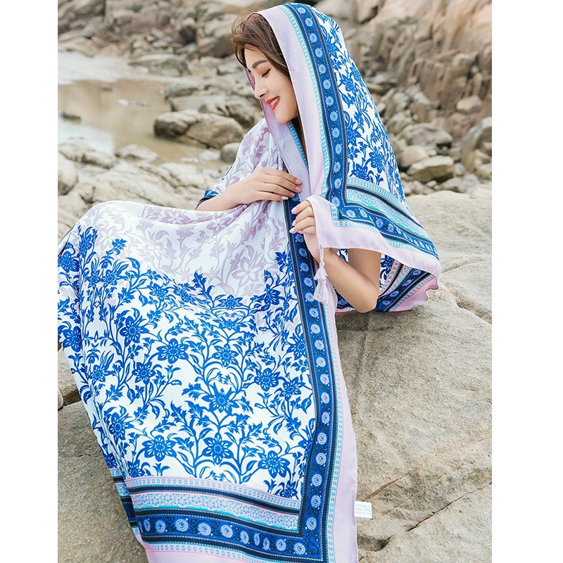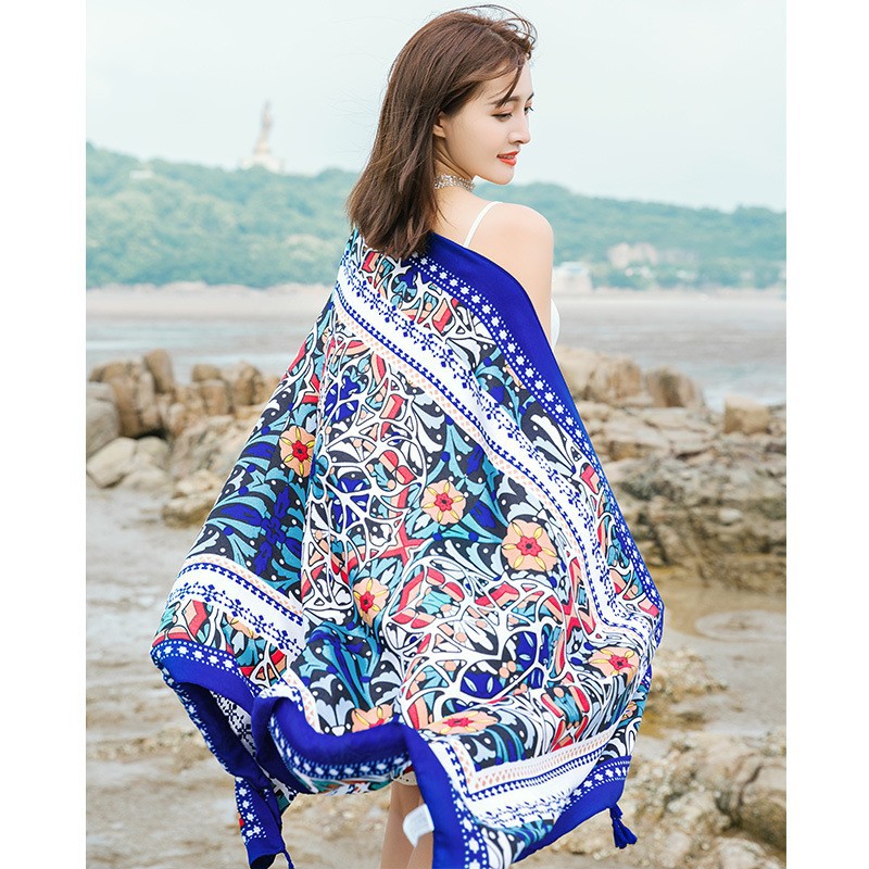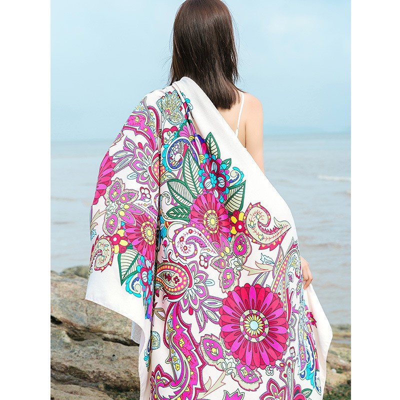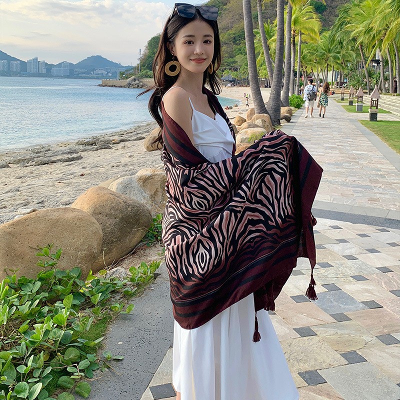 국경 간 컬러 목도리 햇빛 스카프 여성의 2024 봄 여행 발리 원사 롱 비치 타월스토어 가기