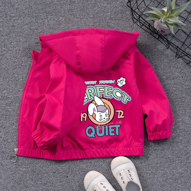 儿童外套女宝宝卡通糖果色开衫女童连帽拉链衫男童冲锋衣休闲外穿