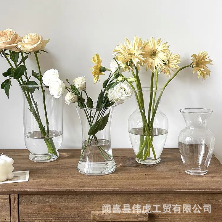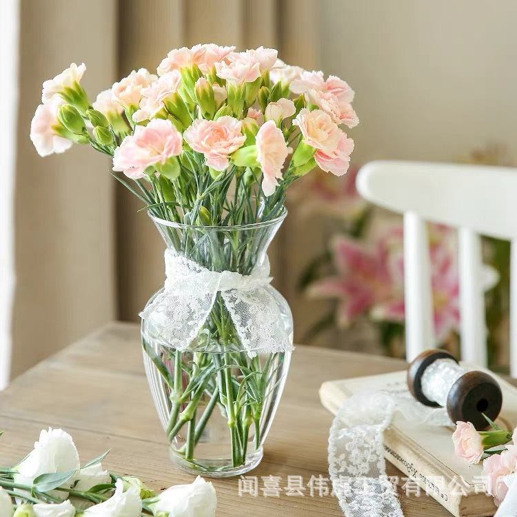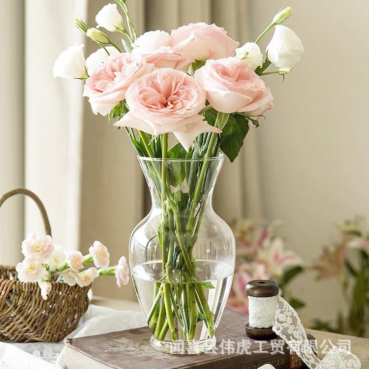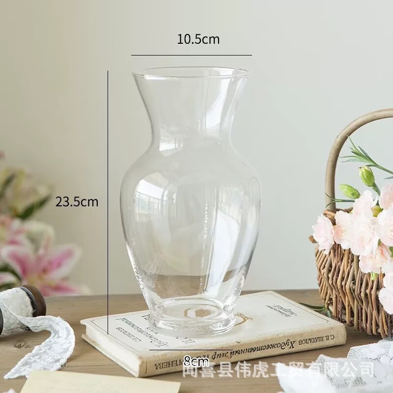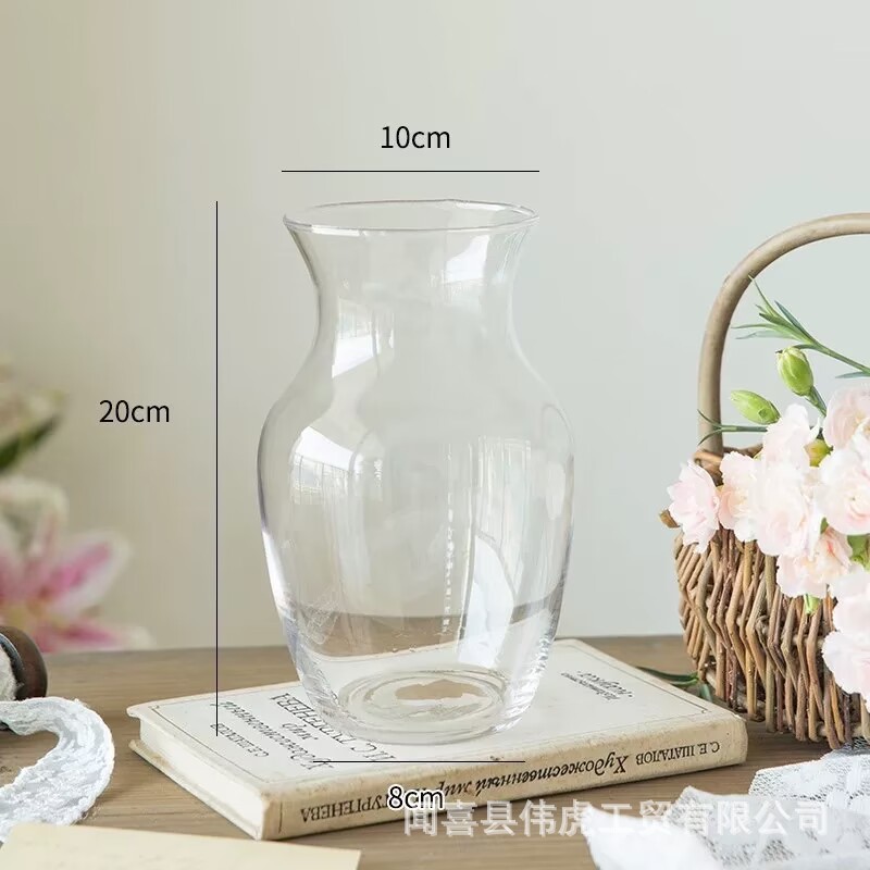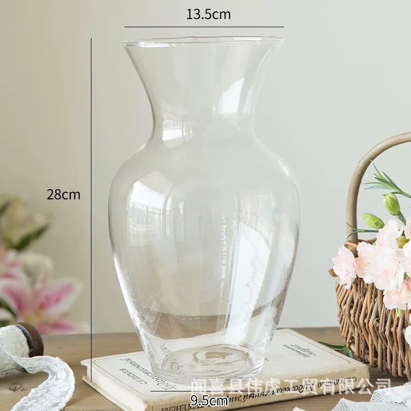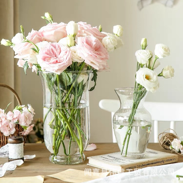 간단한 투명 유리 꽃병 얇은 큰 구경 둥근 배 수국 모란 수경 장식품 꽃 배열 물 유지 장식품