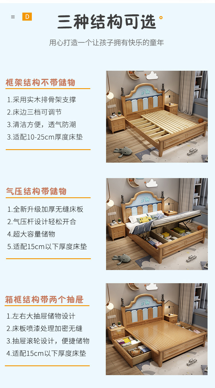 모든 단단한 나무 어린이 침대 통나무 1.5 m 간단한 소년 싱글 1.2 m 청소년 어린이 방 침실 수납 침대