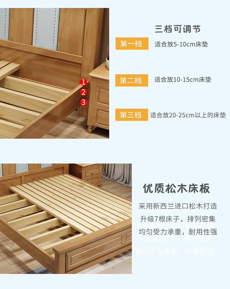 • 단단한 나무 침대 + 20cm 스프링 패드 + 침대 옆 탁자 1 개