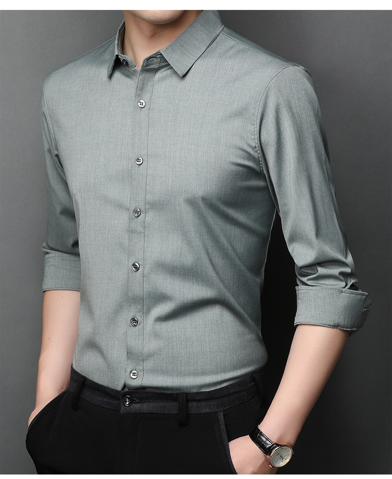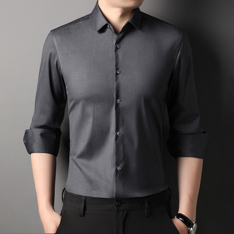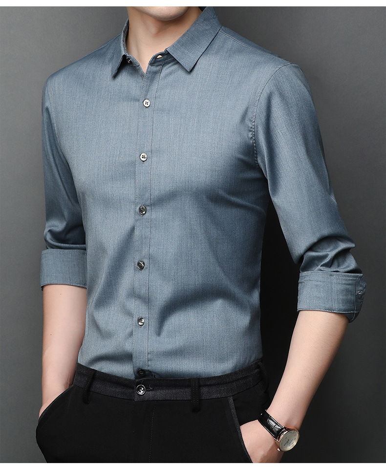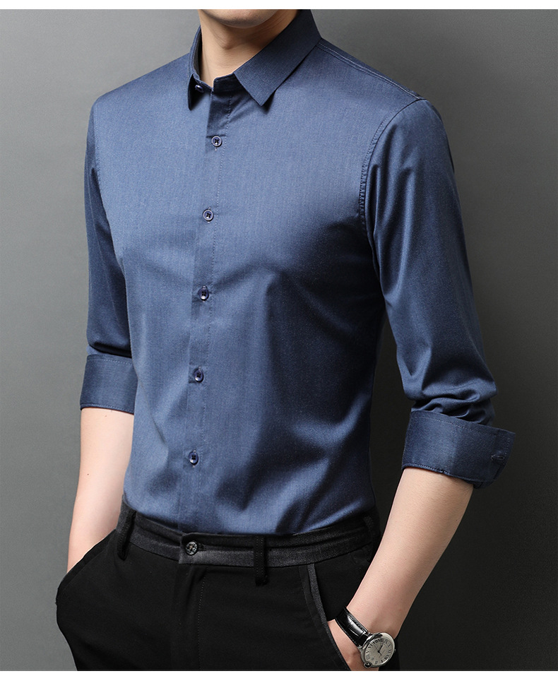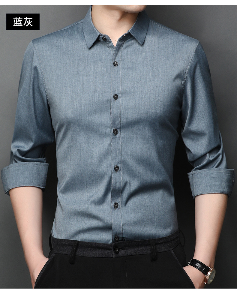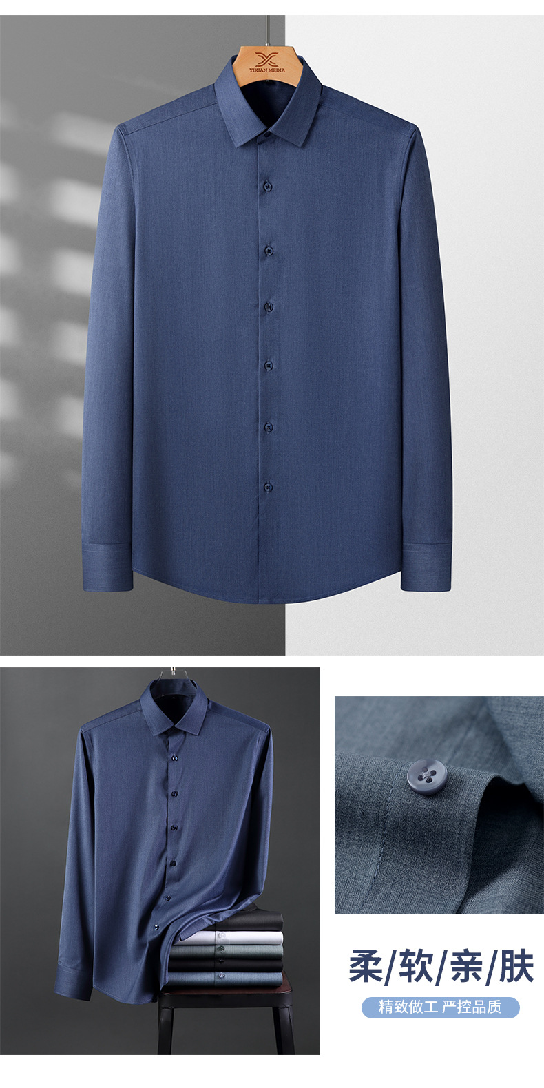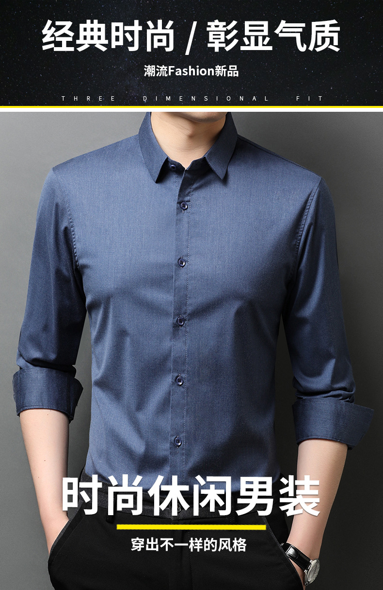 가을 2023 새로운 남성 셔츠 캐주얼 아이언 프리 마이크로 불릿 남성용 긴 소매 공장 직접 T8521 세대스토어 가기