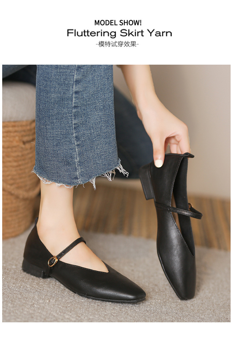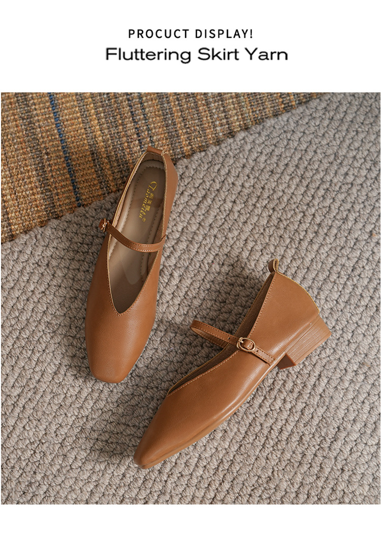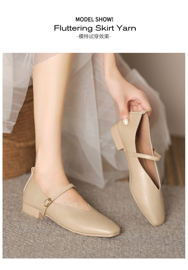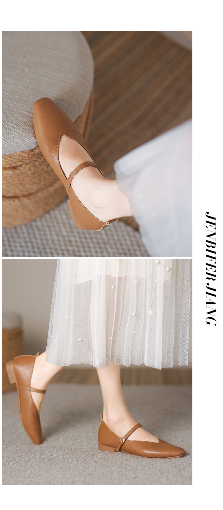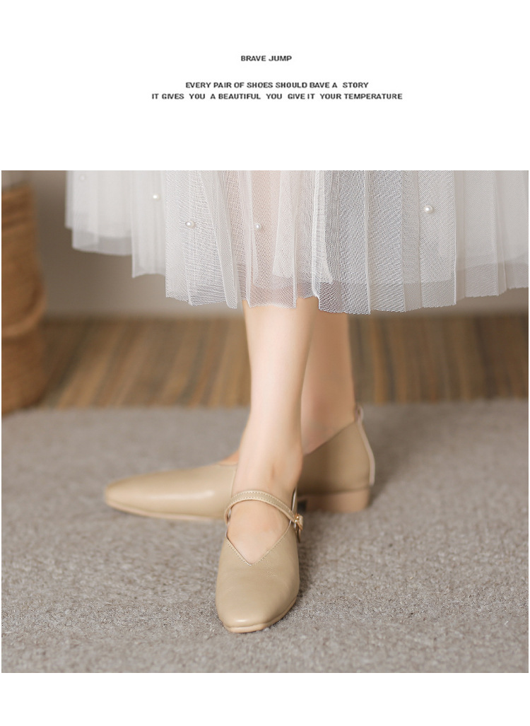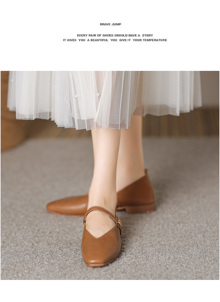얕은 입 신발 여성용 봄과 여름 2023 새로운 레트로 버클 로우 힐 예술적 스퀘어 토 부드러운 가죽 메리 제인 신발스토어 가기