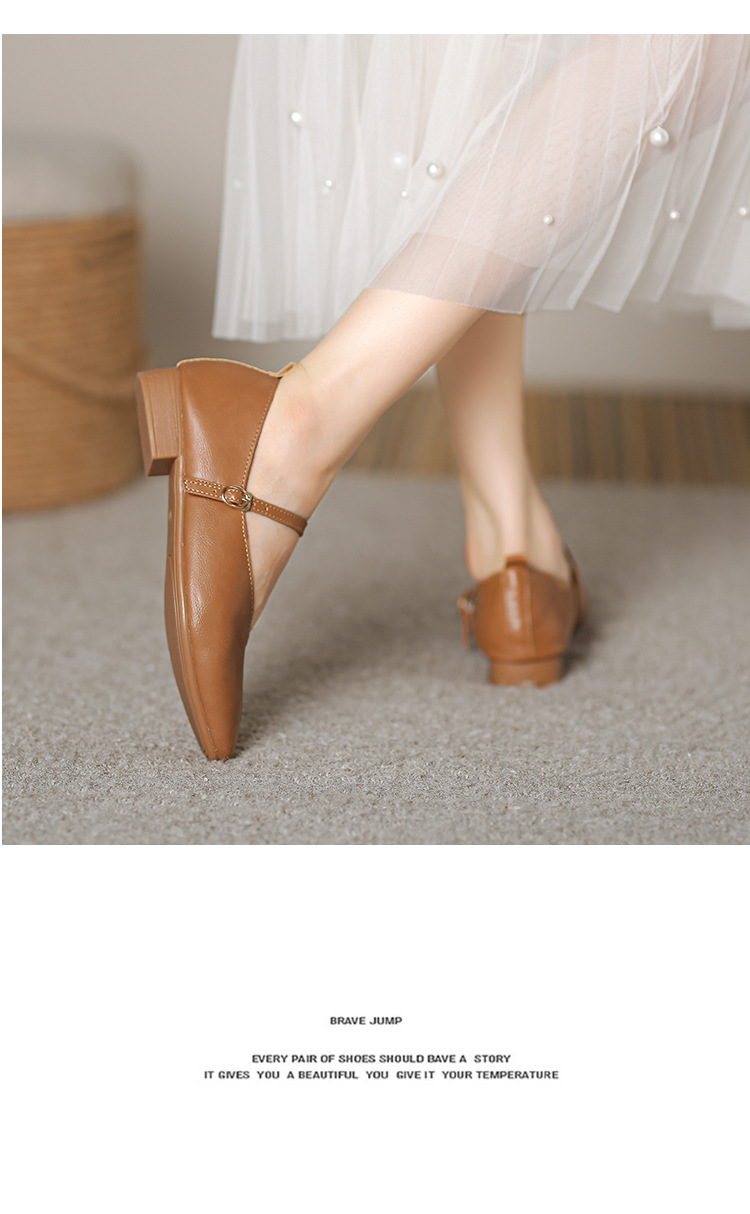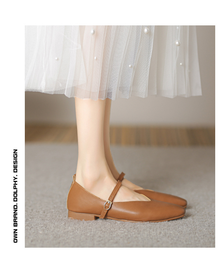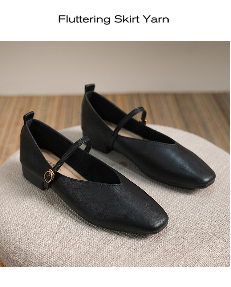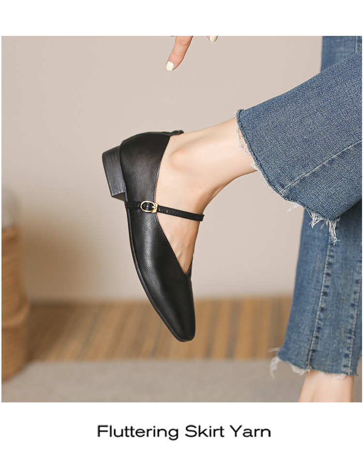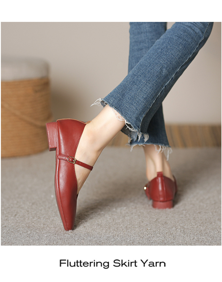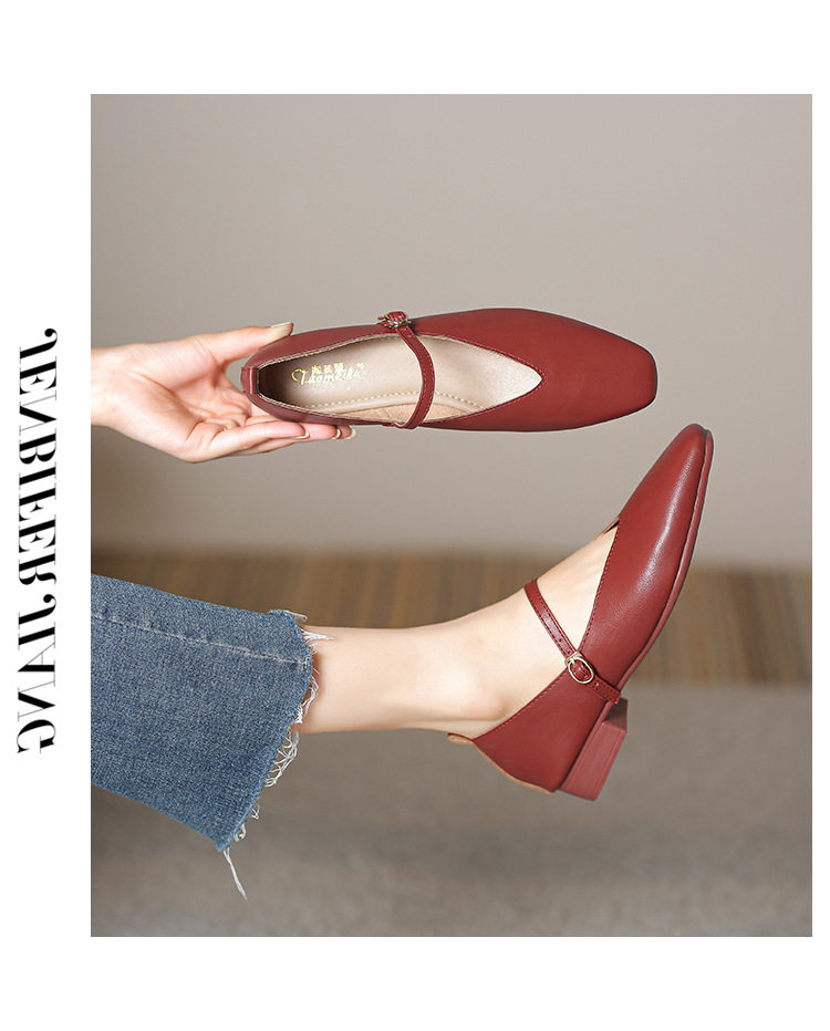 얕은 입 신발 여성용 봄과 여름 2023 새로운 레트로 버클 로우 힐 예술적 스퀘어 토 부드러운 가죽 메리 제인 신발