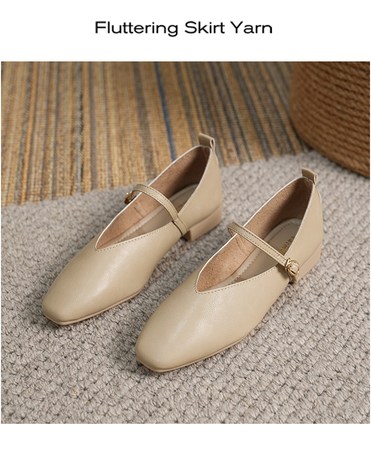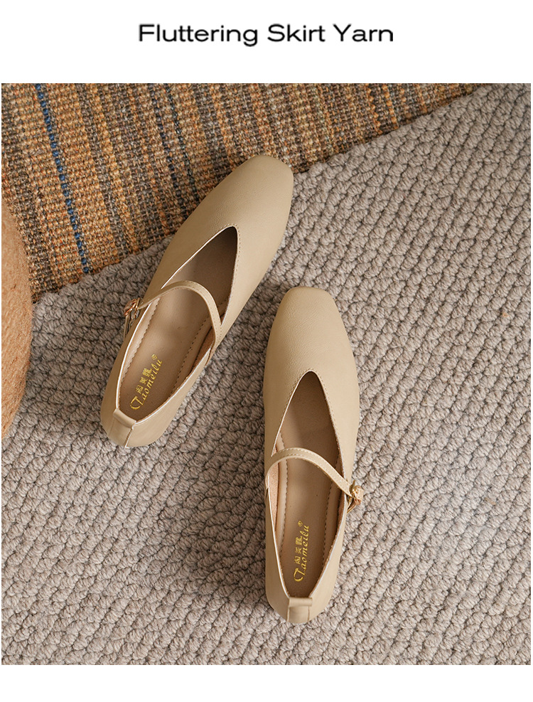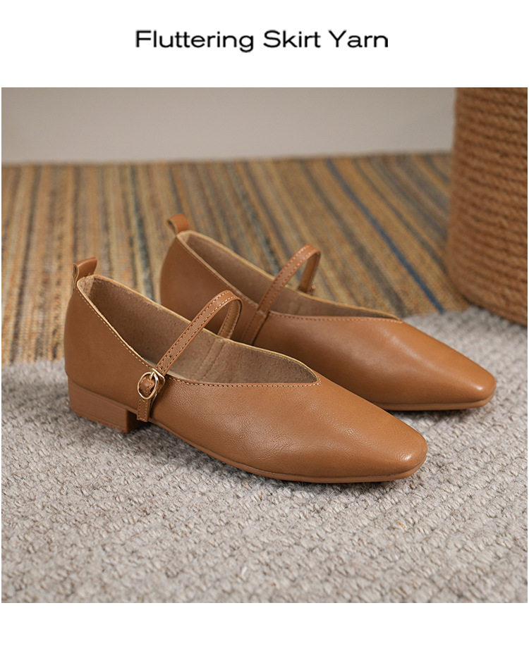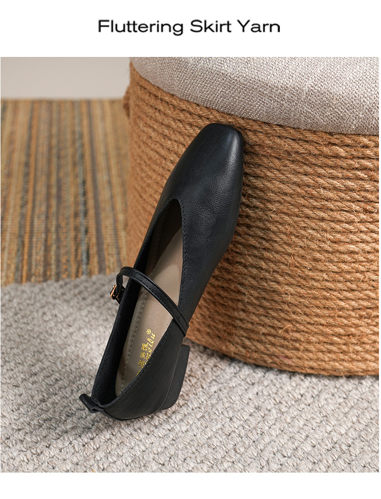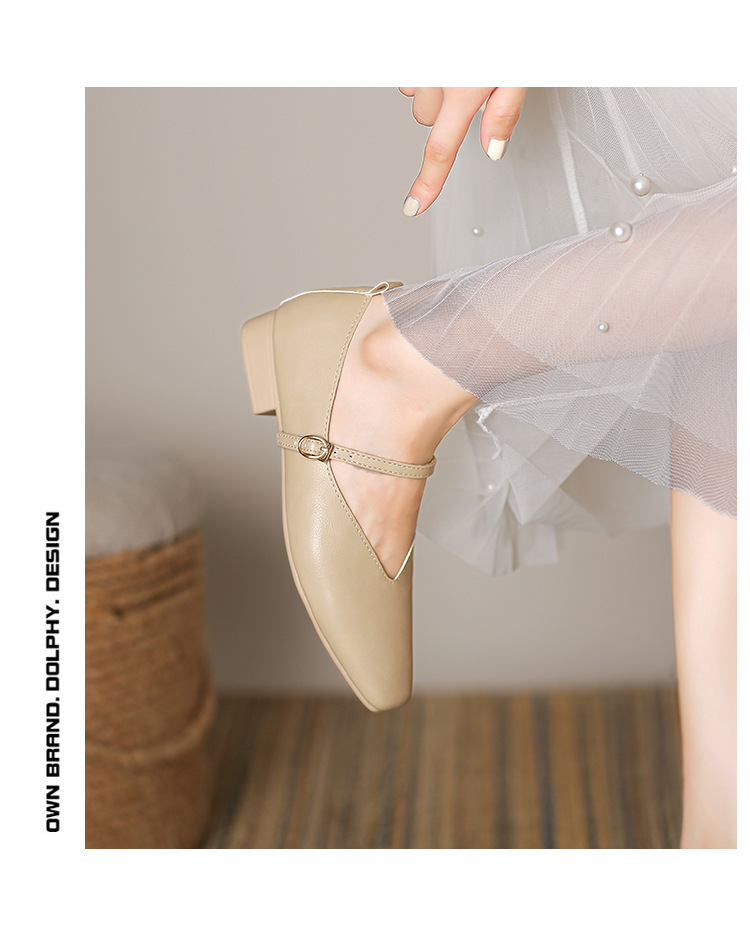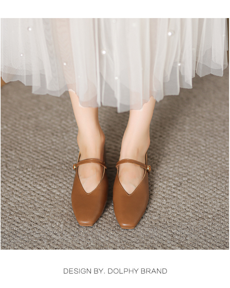 얕은 입 신발 여성용 봄과 여름 2023 새로운 레트로 버클 로우 힐 예술적 스퀘어 토 부드러운 가죽 메리 제인 신발