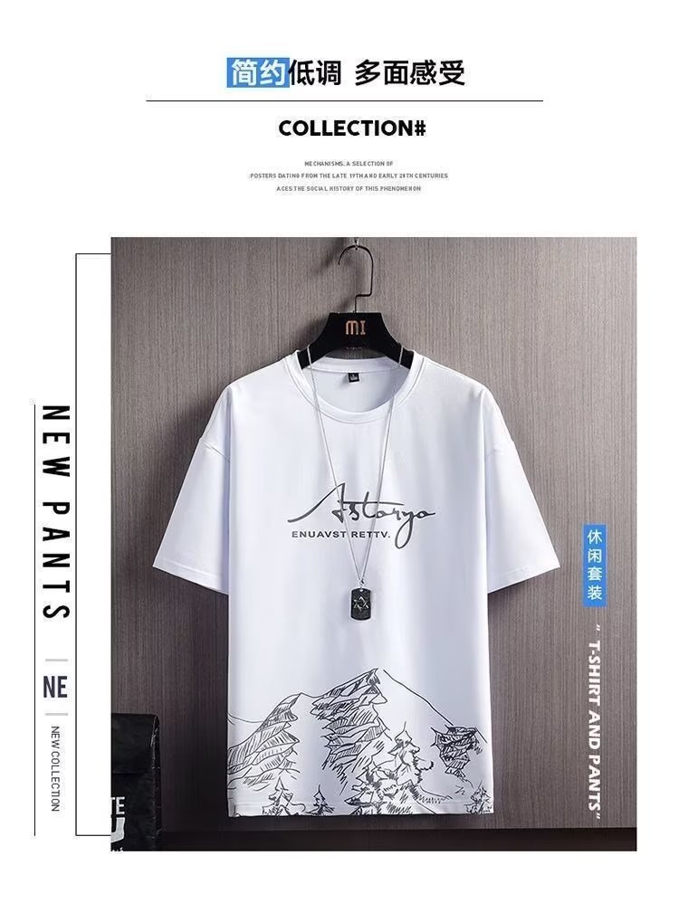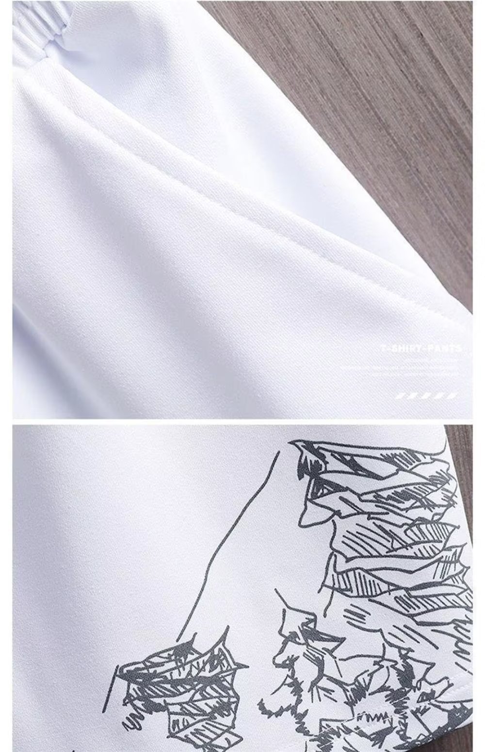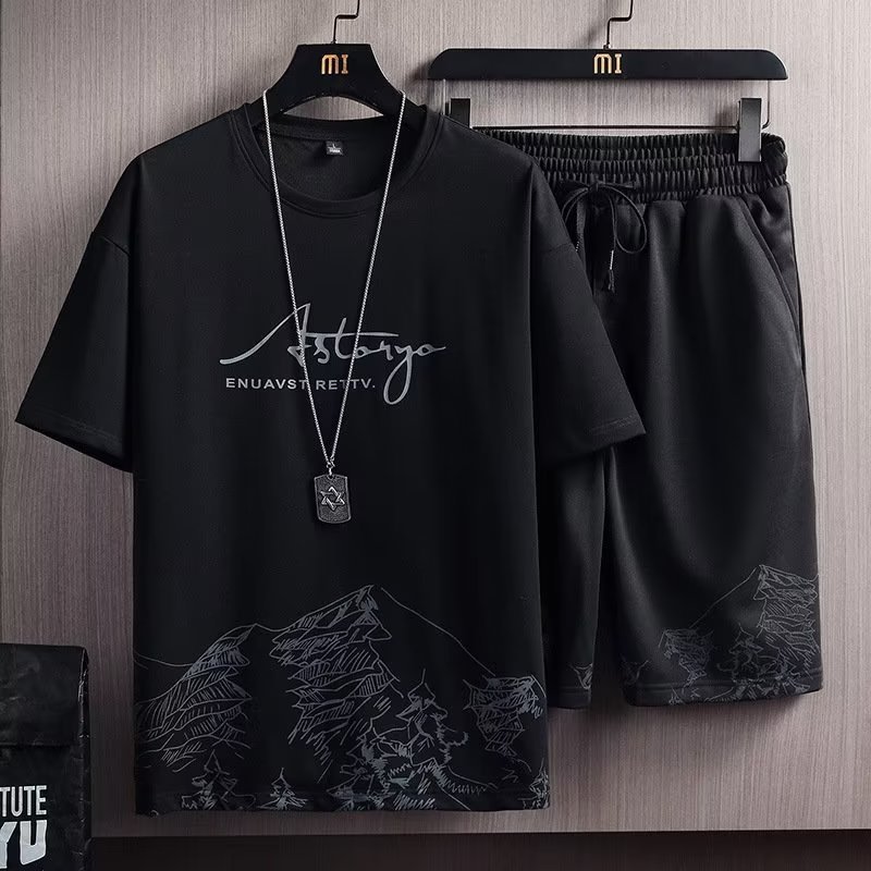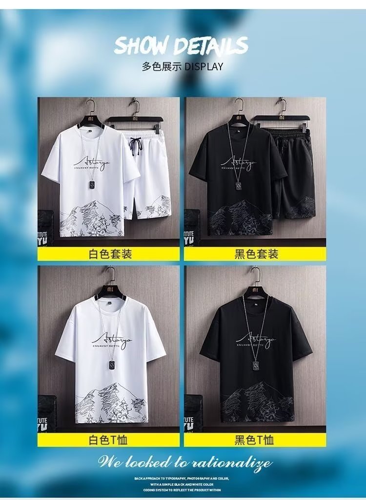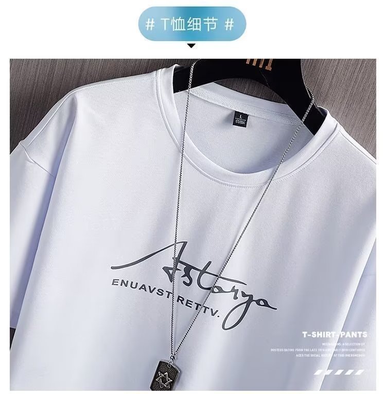 2023 홍콩 스타일 여름 한국 스타일 스포츠 세트 소년 느슨한 티셔츠 학생 반팔 간단한 반 길이 바지 대외 무역스토어 가기