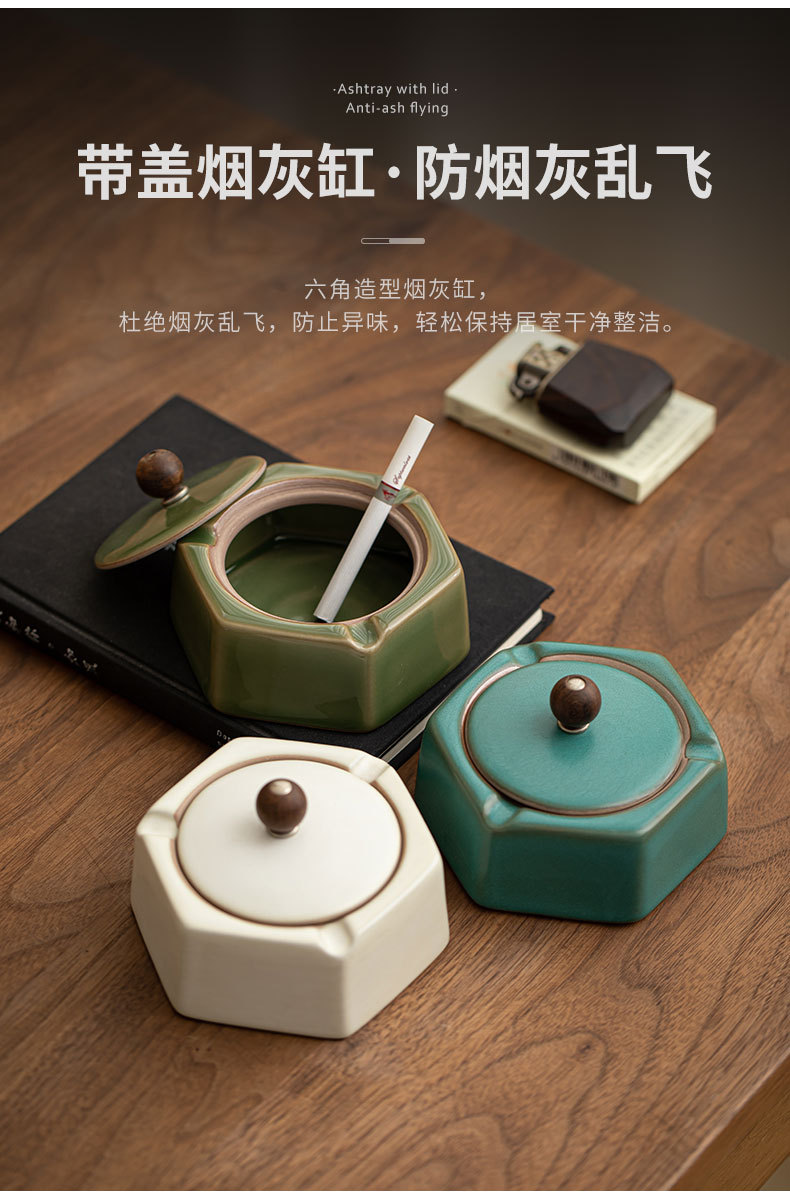 레트로 비행 방지 재 떨이 중국 창조적 인 가정 거실 뚜껑 빛 럭셔리 대형 담배 컵 사무실 고급 감각