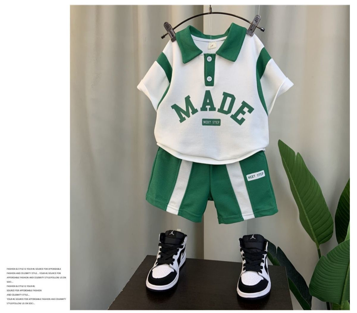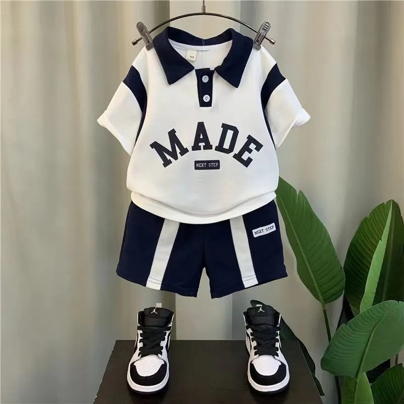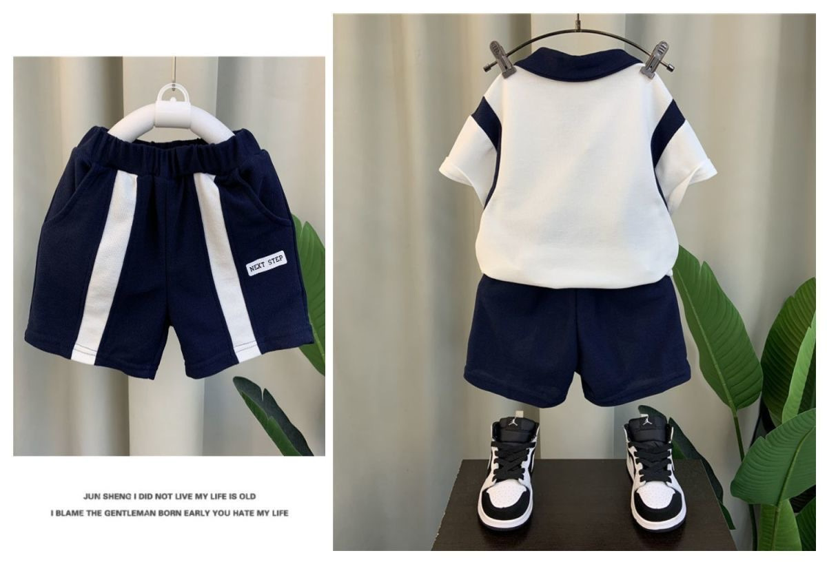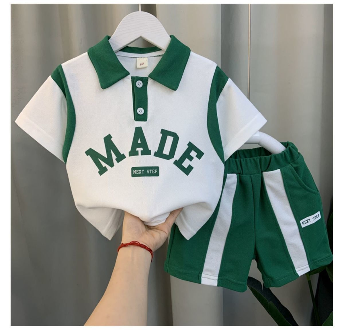 아동복 소년 여름 2023 새로운 중학교 어린이 캐주얼 스타일리스트 폴로 셔츠 스포츠 세트 프라이드 스트리트 투피스 패션 세트스토어 가기
