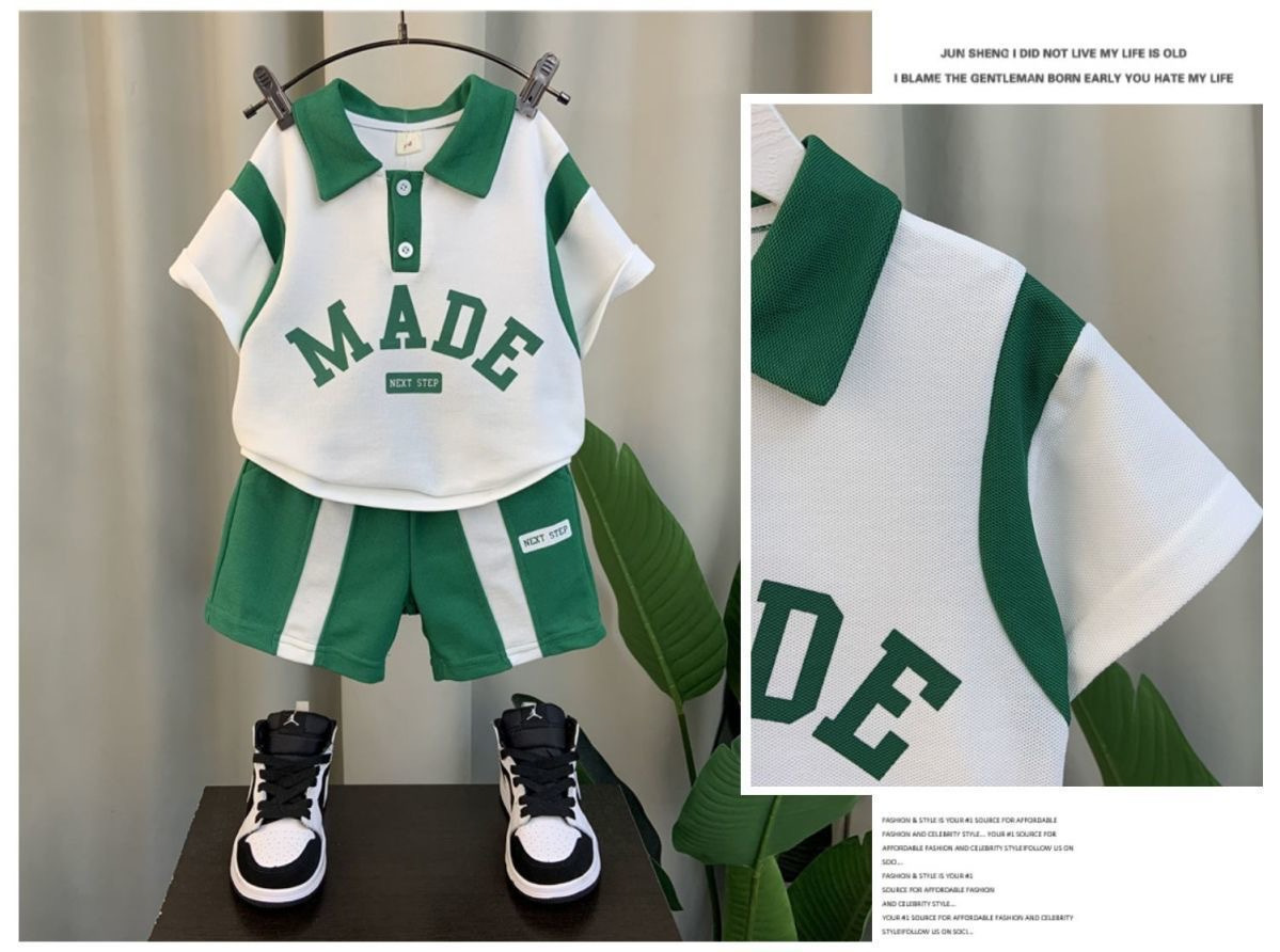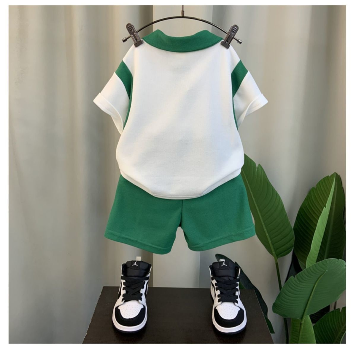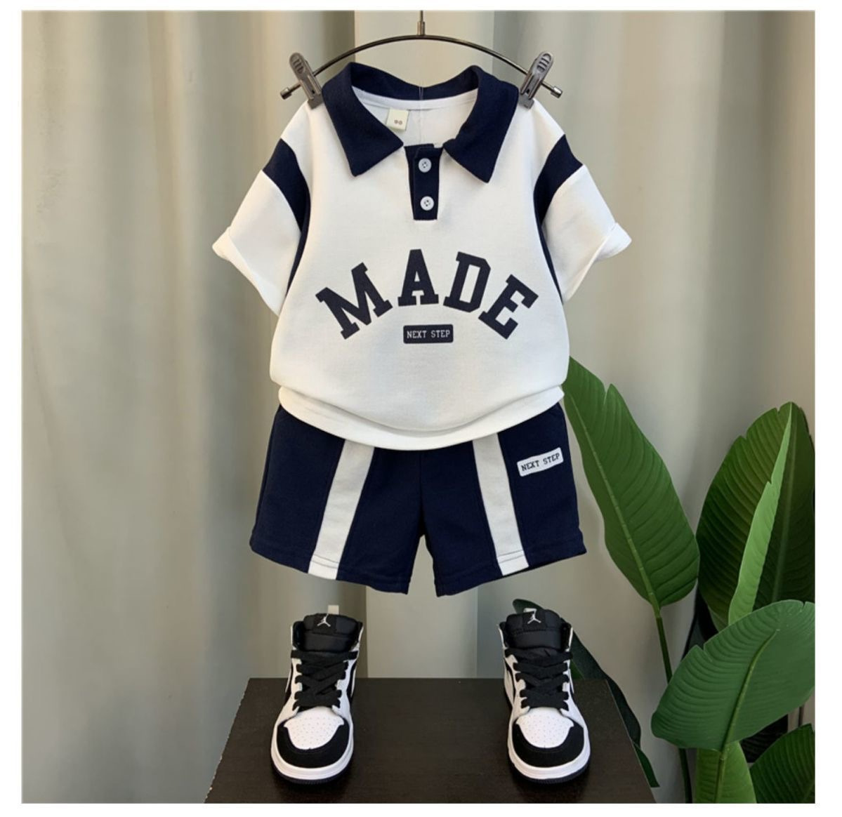 아동복 소년 여름 2023 새로운 중학교 어린이 캐주얼 스타일리스트 폴로 셔츠 스포츠 세트 프라이드 스트리트 투피스 패션 세트스토어 가기