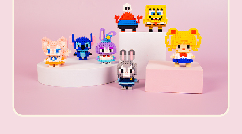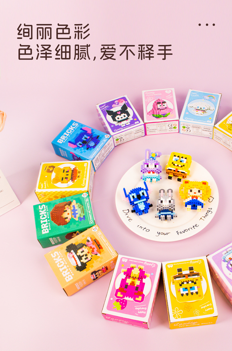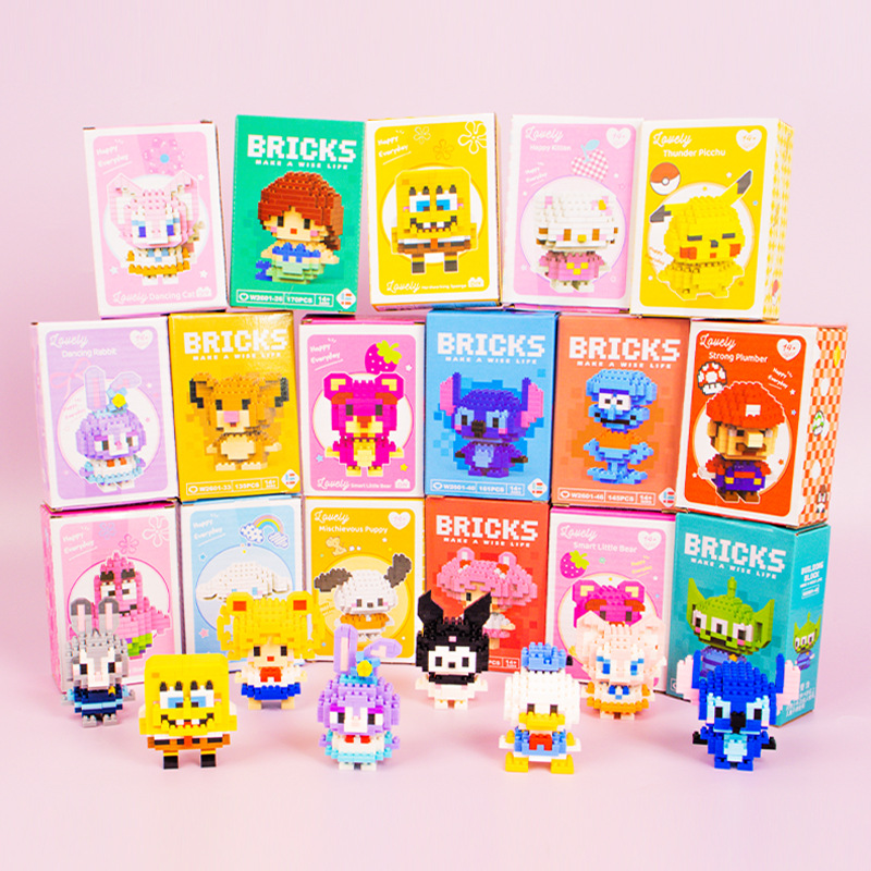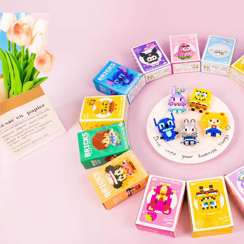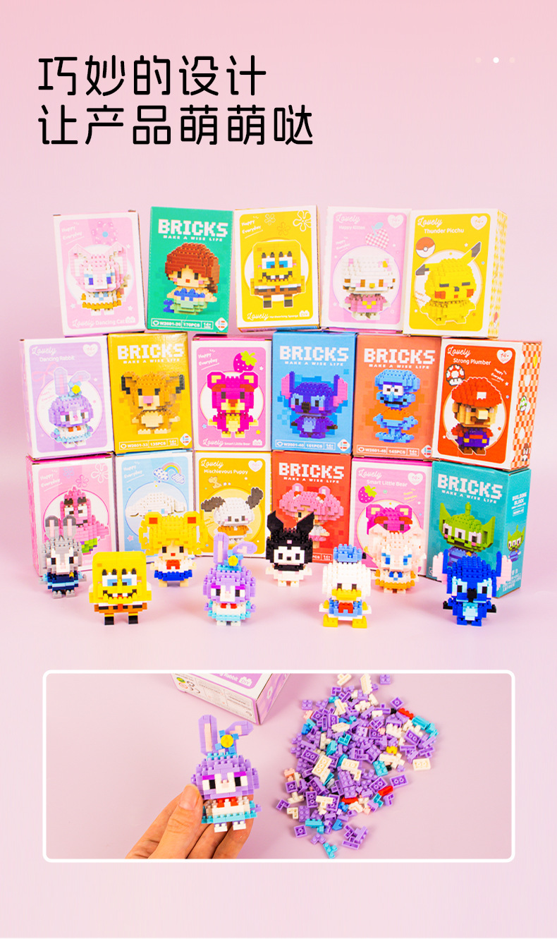 어린이 퍼즐 호환 레고 마이크로 입자 블록 귀여운 만화 인형 시리즈 실속 블라인드 박스 장난감 도매스토어 가기