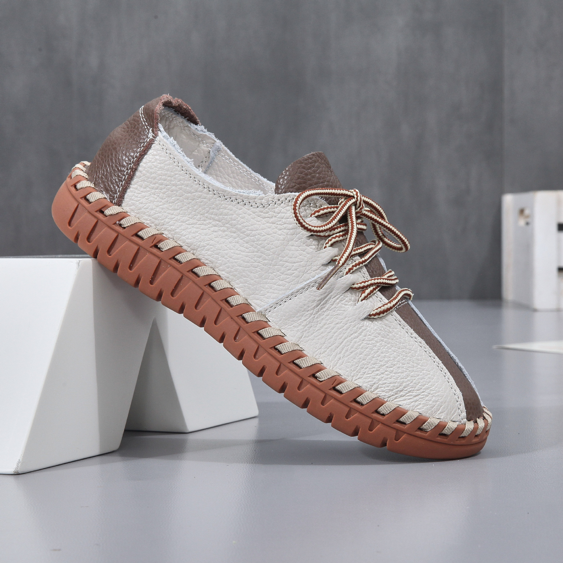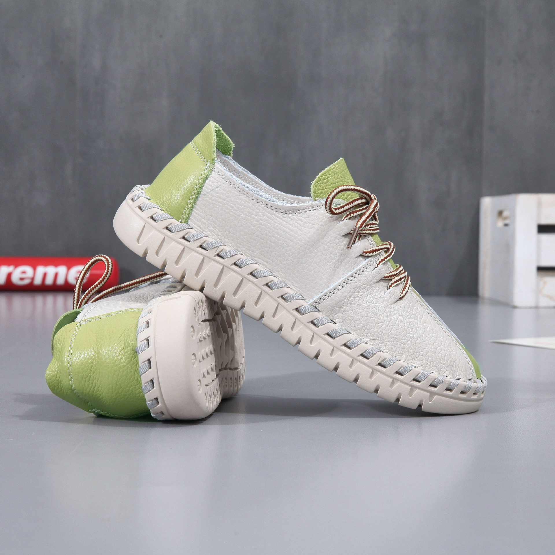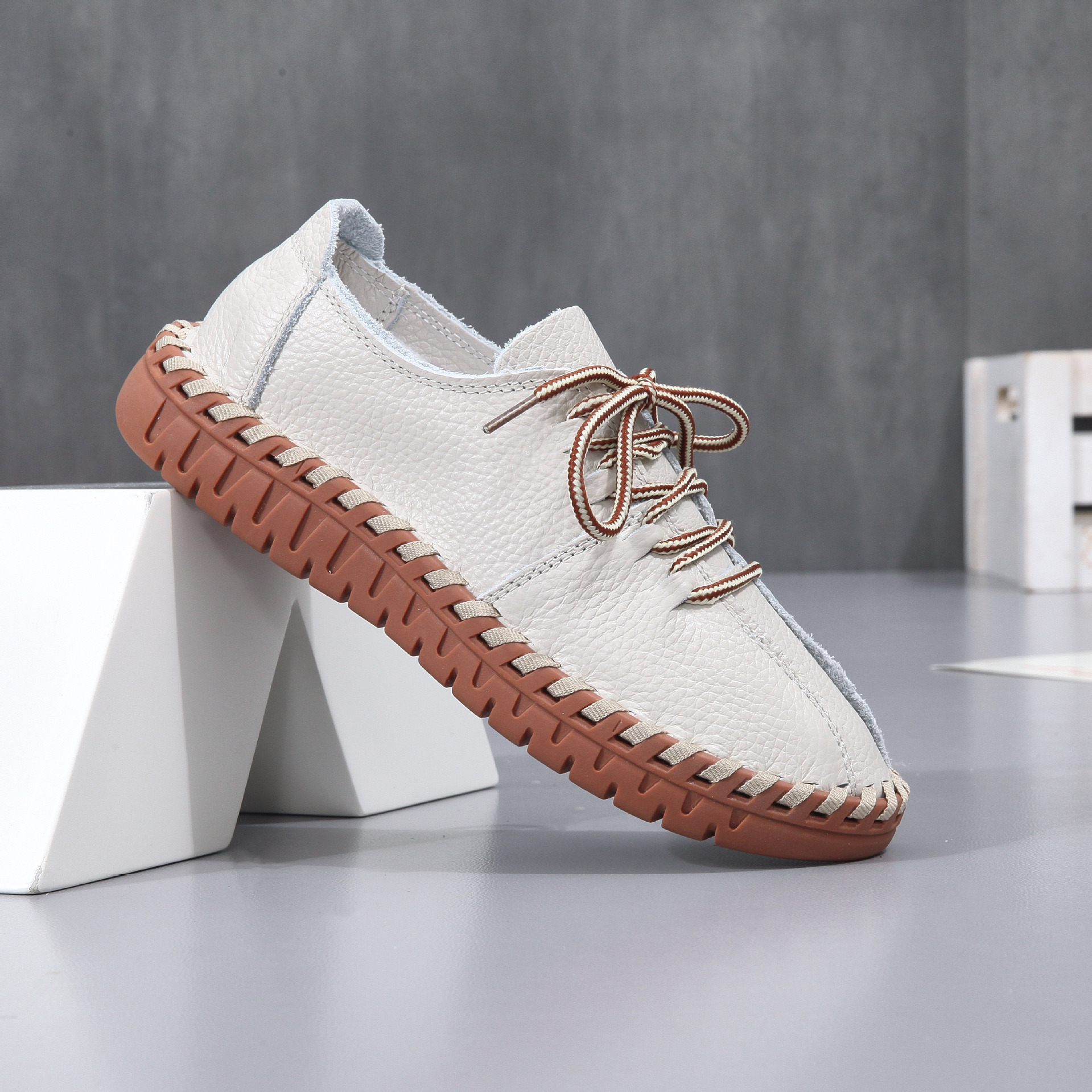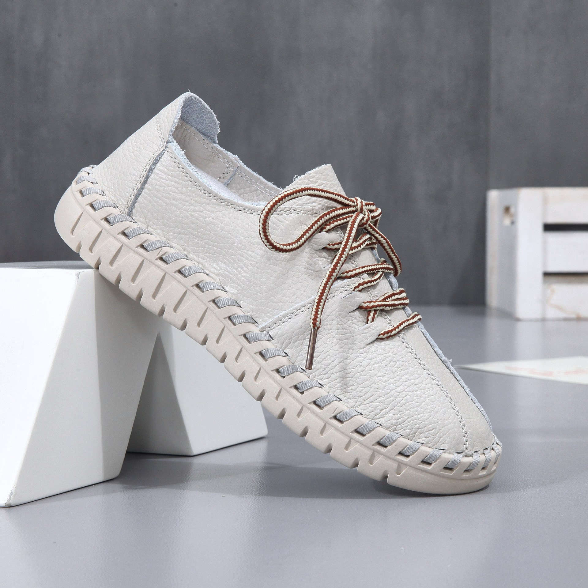 여성 신발 여름 새로운 탑 레이어 소가죽 흰색 신발 부드러운 바닥 소프트 페이스 로퍼 정품 가죽 플랫 슈즈 여성 싱글 신발스토어 가기